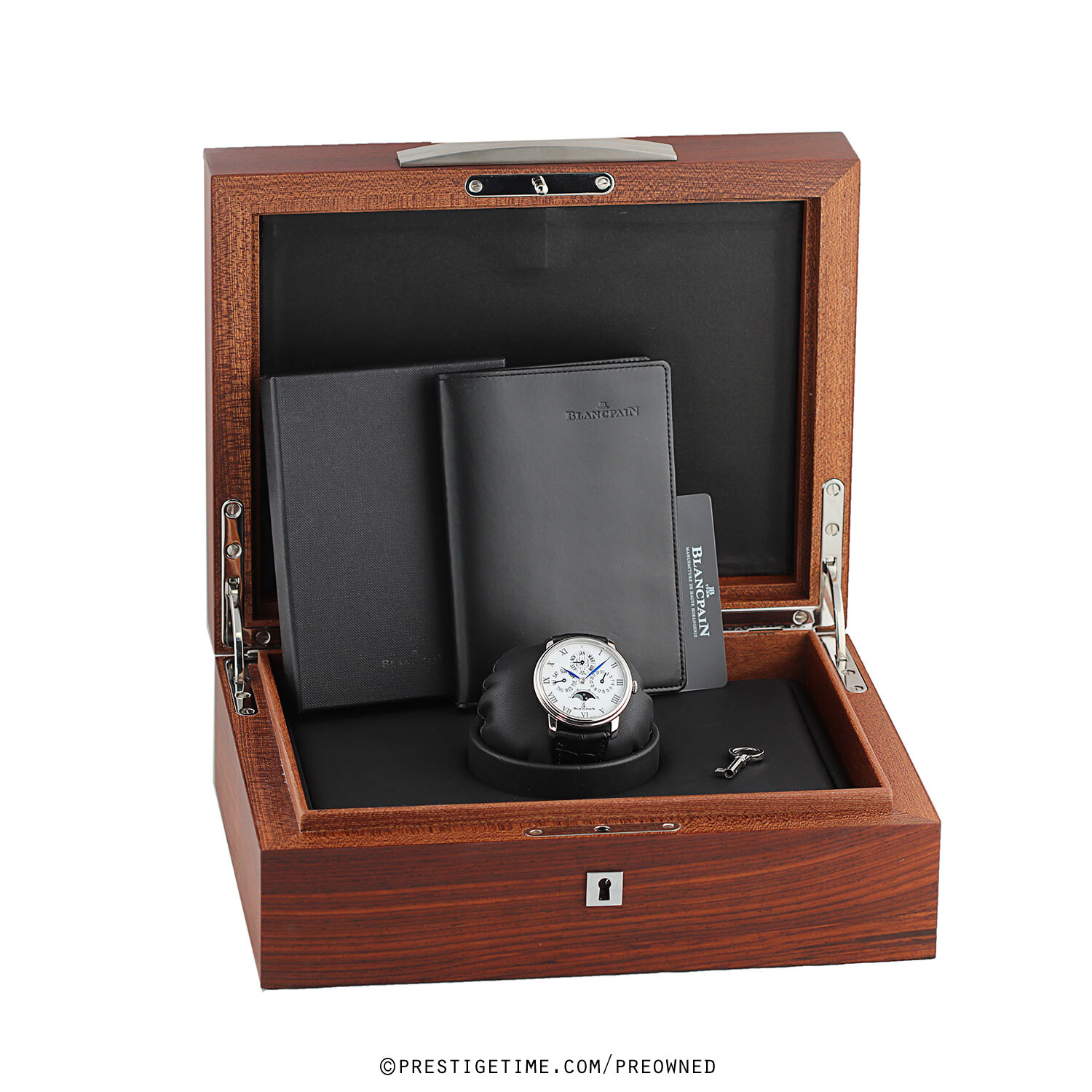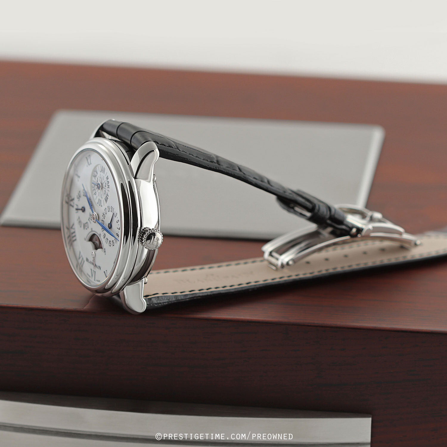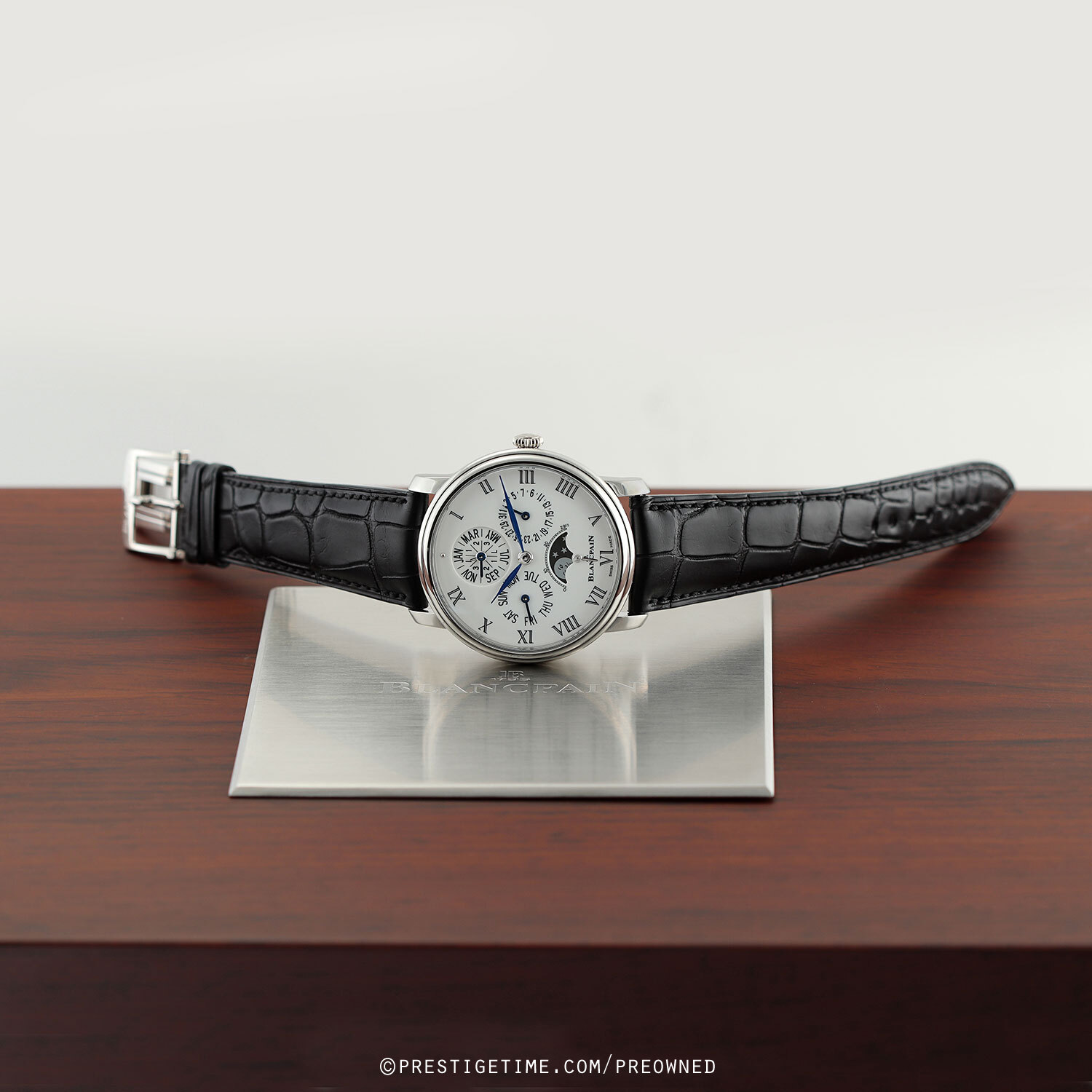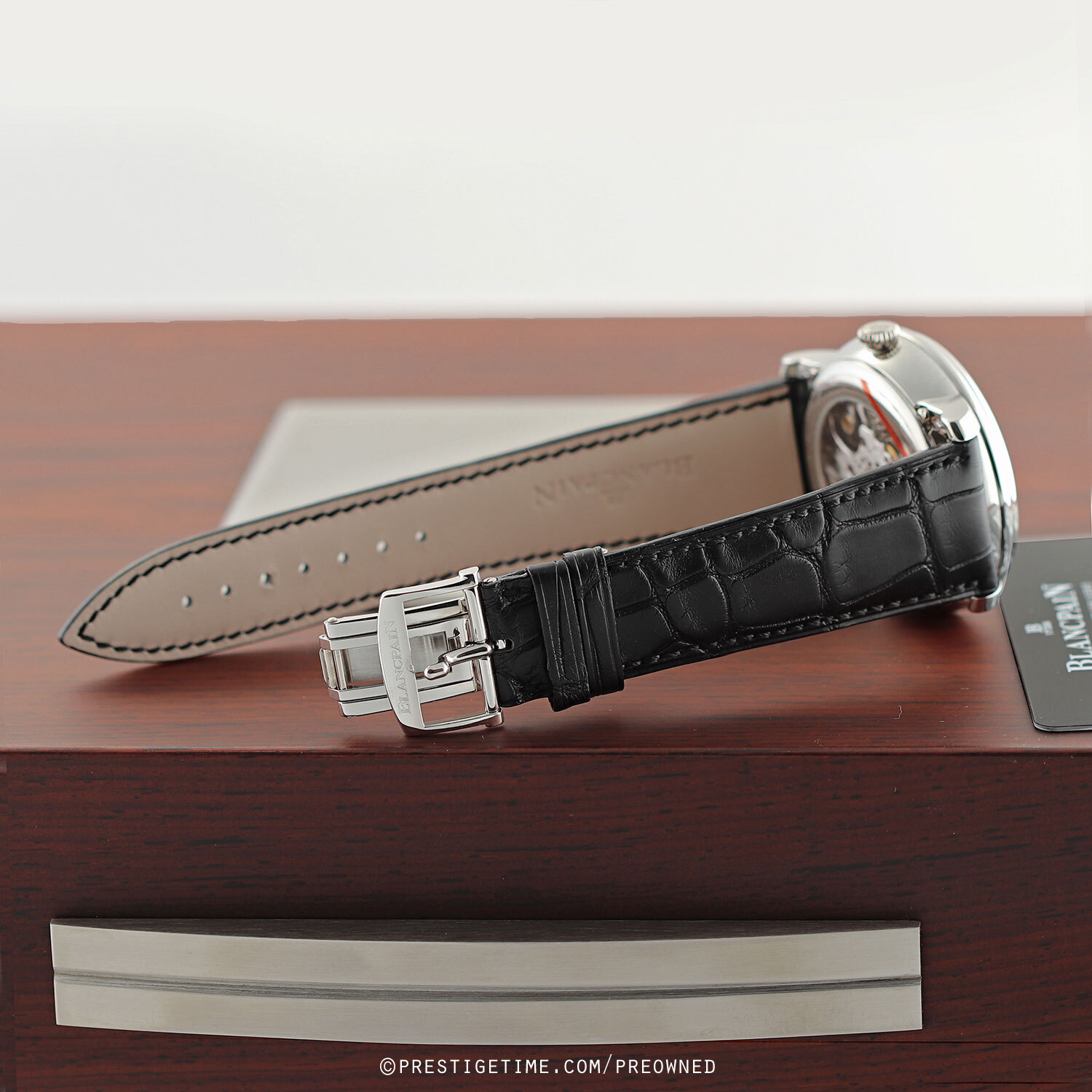 Strap: Fitted on a brand new & unworn OEM Blancpain original black alligator leather strap with a solid platinum deployant buckle.