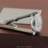 Case: Polished solid platinum case. White 'grand feu' enamel dial. Blued steel hands. Painted Roman numeral hour markers. Small second sub-dial at 6 o'clock.