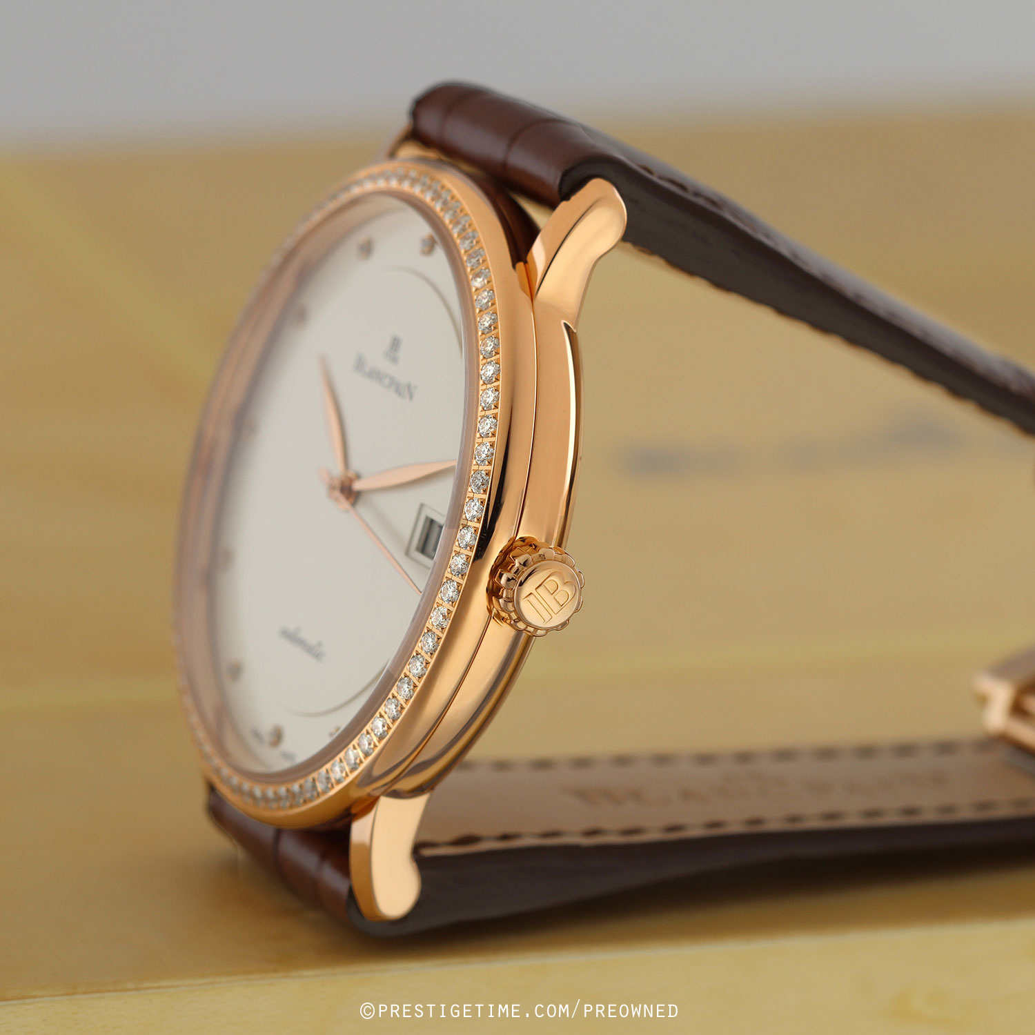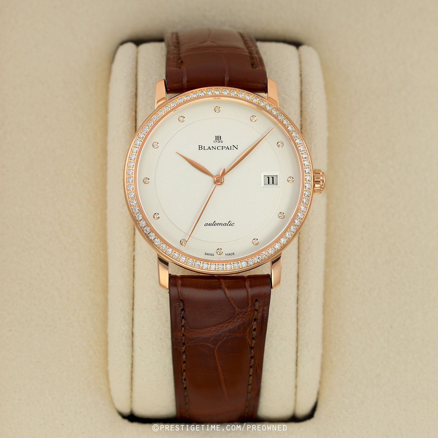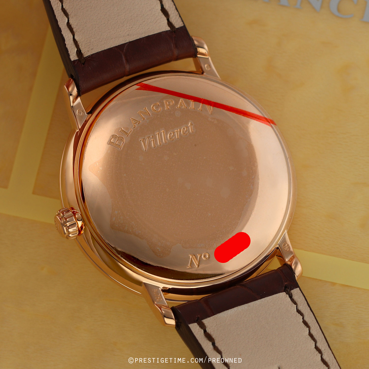 - Fitted on a Blancpain original brown alligator leather strap with a solid 18kt rose gold deployant buckle. The strap is in unworn condition with its full wear lifespan remaining.
