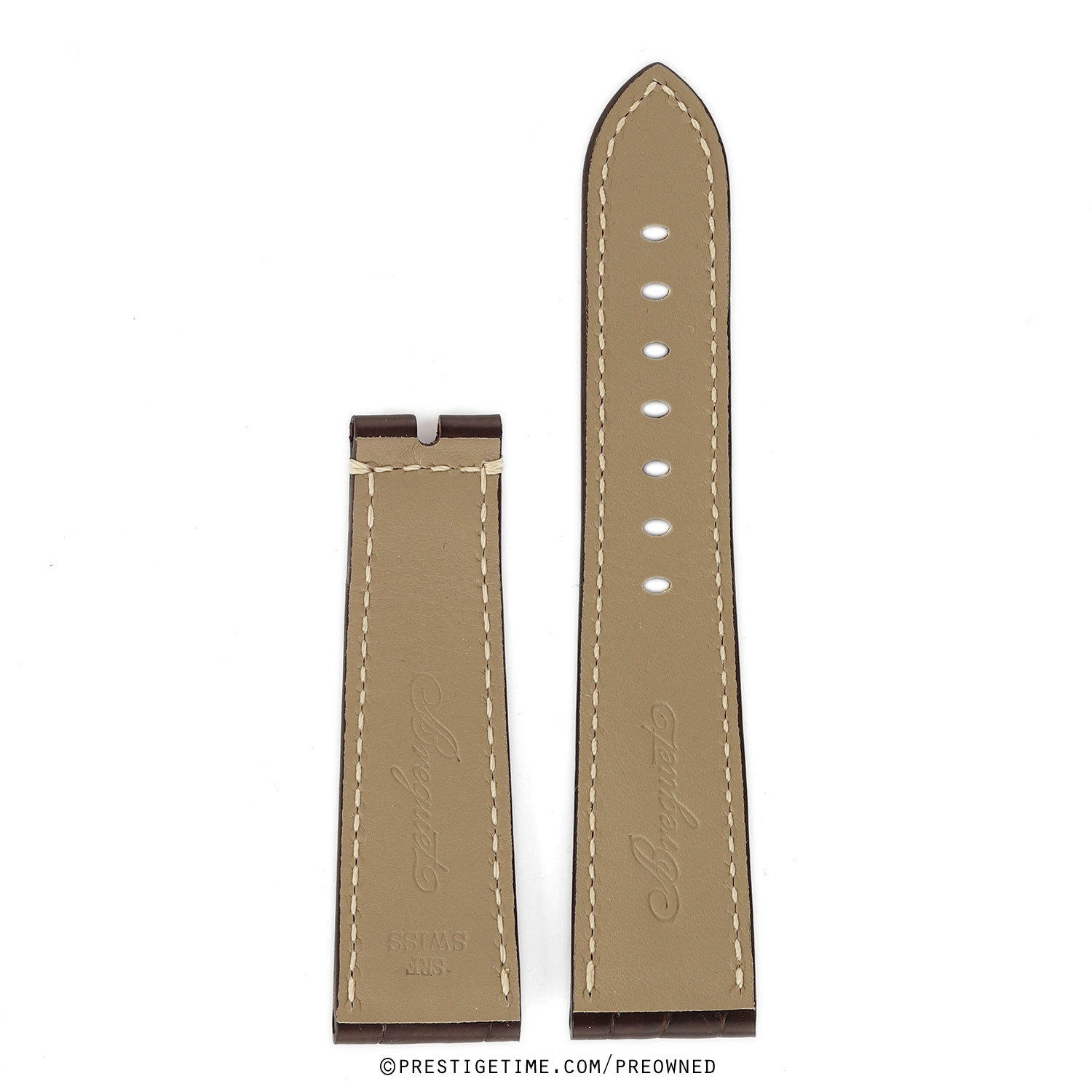 Genuine Breguet brown alligator leather strap with cream colored stitching.