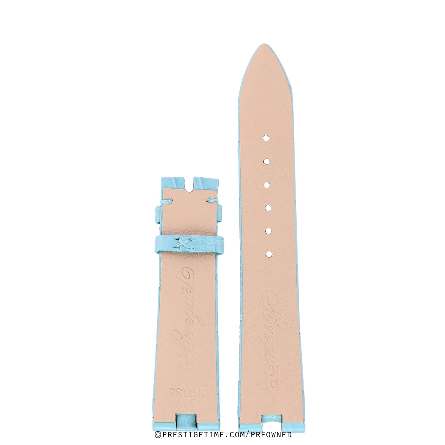 Genuine Breguet teal alligator leather strap with center notch for Reine de Naples watches.