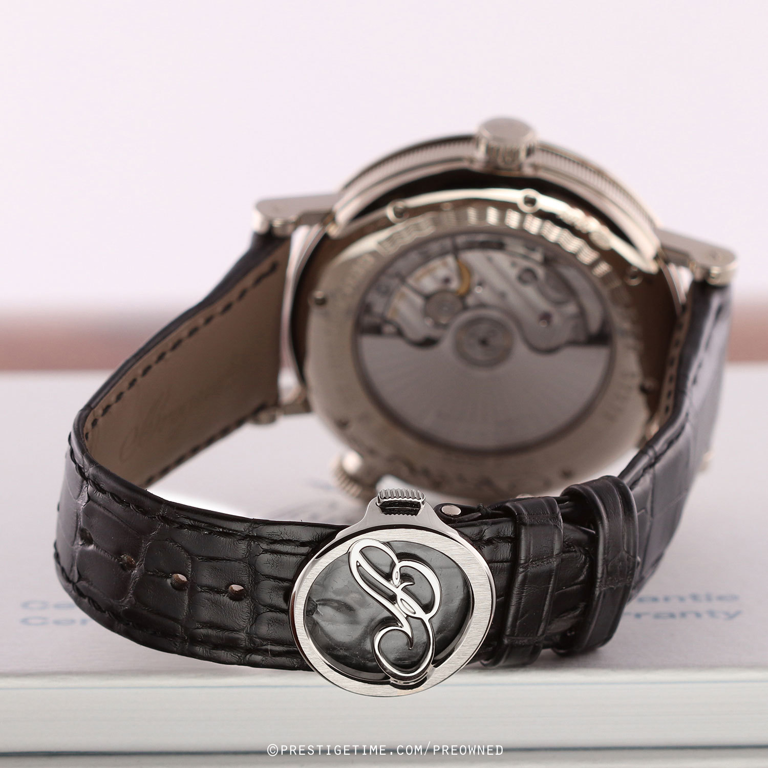 Strap: Fitted on its original Breguet matte black alligator leather strap with a solid 18kt white gold push-button deployant buckle. This strap is in new & unworn condition with its full wear lifespan remaining.