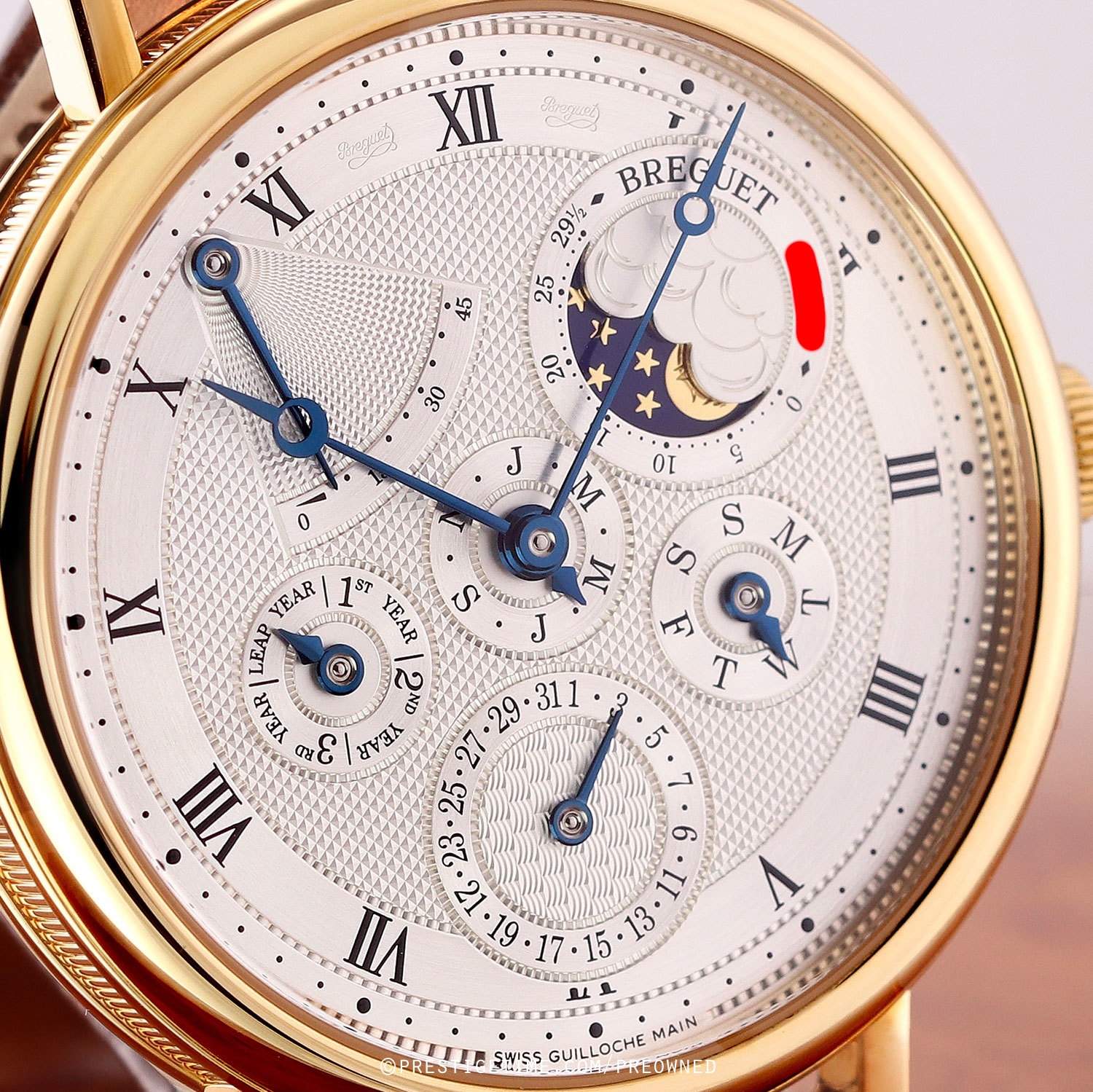 - Leap year sub-dial between 8 & 9 o'clock.