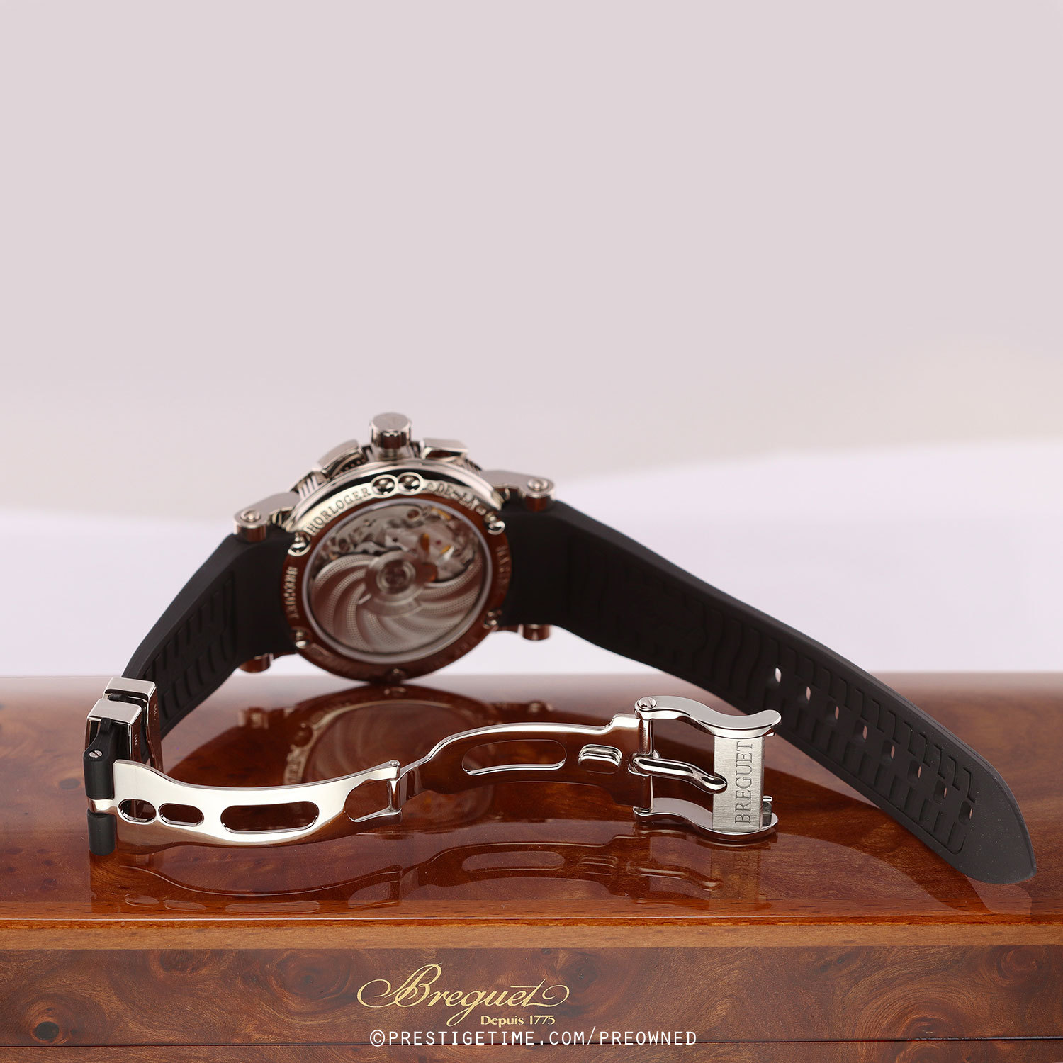 Strap: Fitted on a brand new & unworn Breguet original black rubber strap with a solid 18kt white gold deployant buckle & strap keeps.