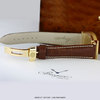 Strap: Fitted on a brand new OEM brown alligator leather strap with contrasting white stitching & a solid 18kt yellow gold deployant buckle.