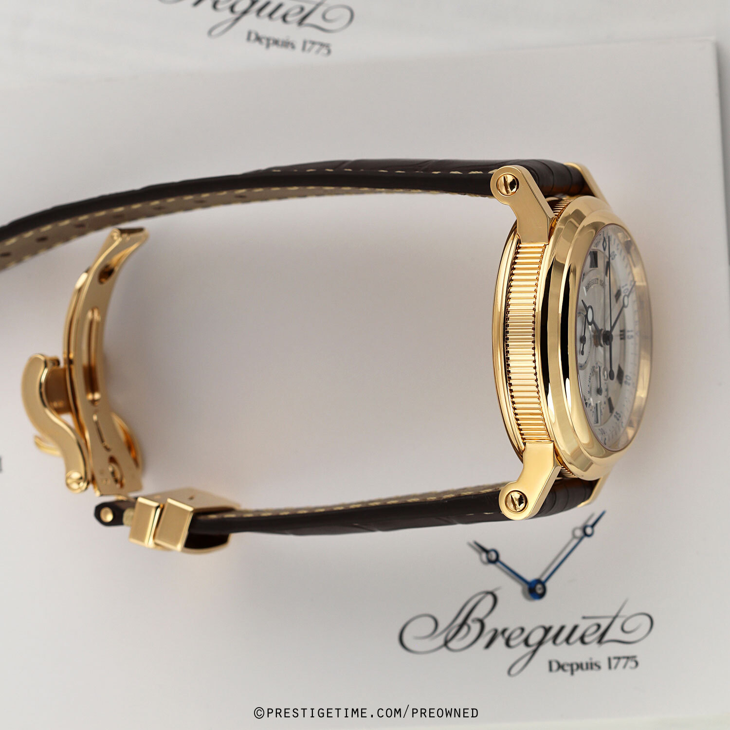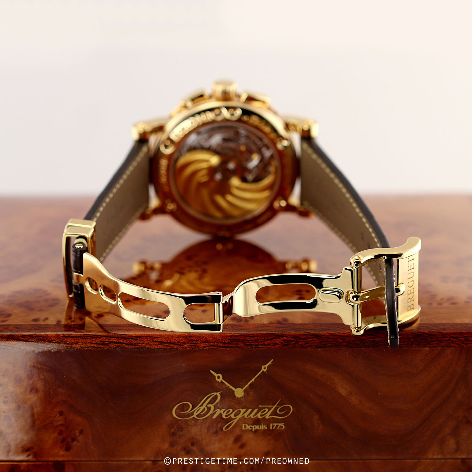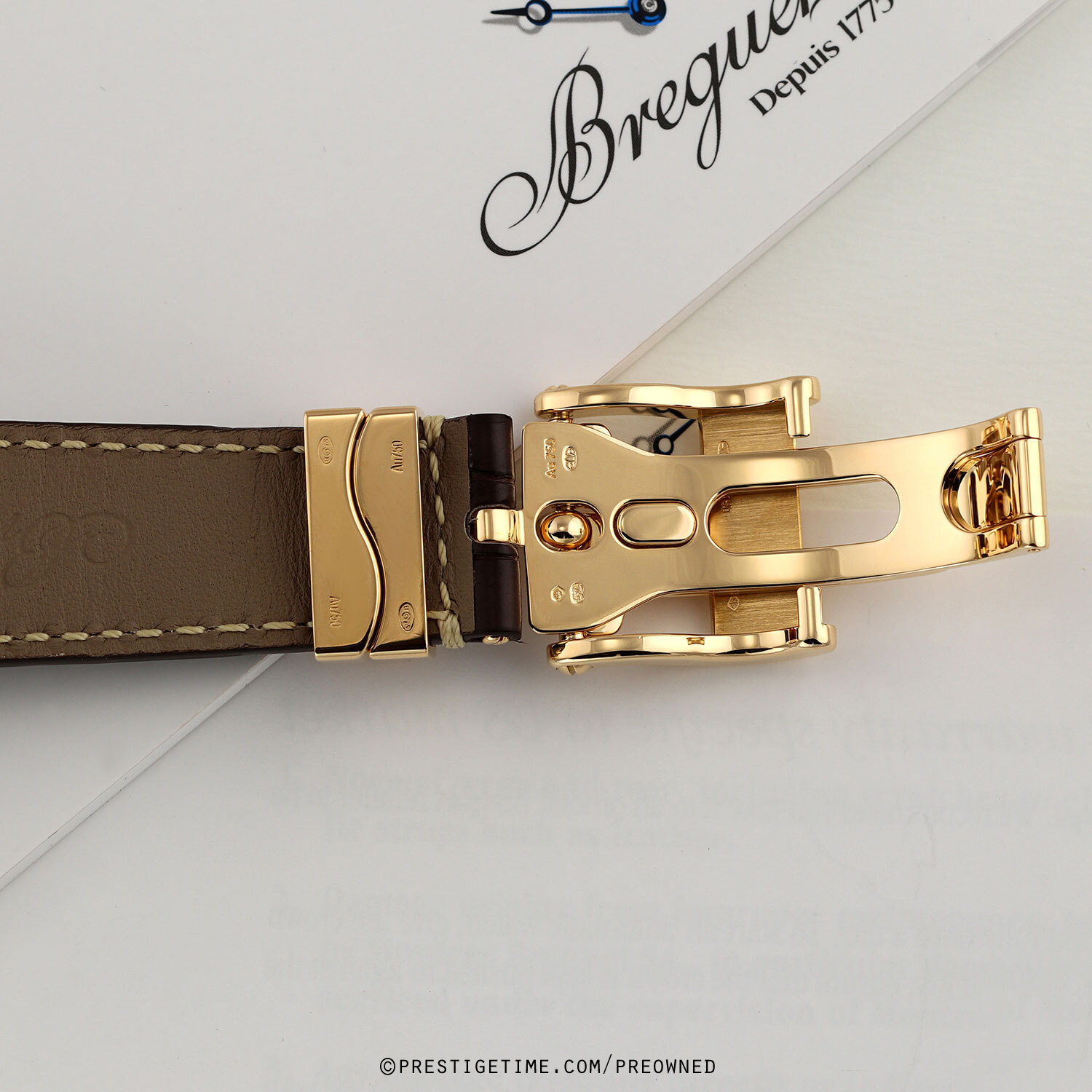 - Fitted on a brand new & unworn Breguet original brown alligator leather strap with a solid 18kt yellow gold deployant buckle & strap keeps.