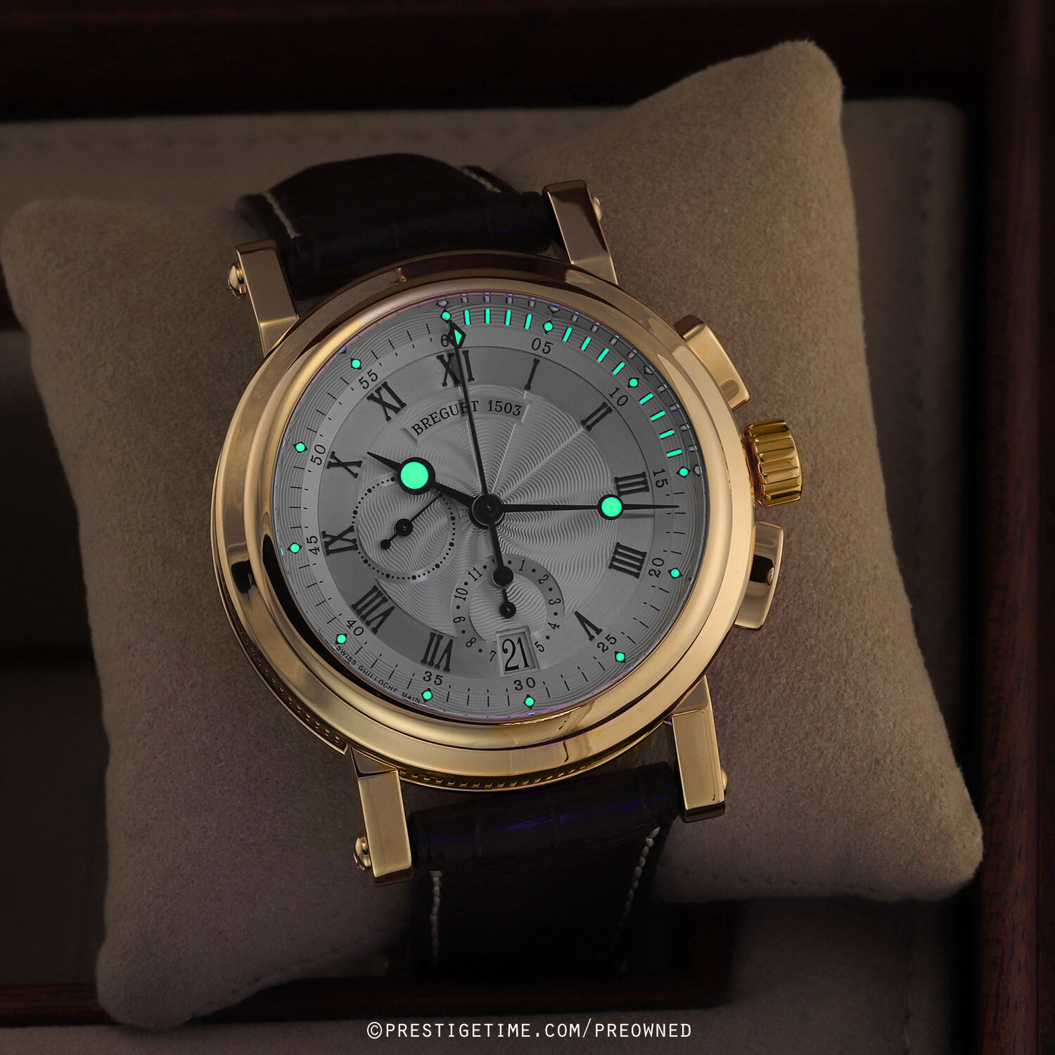 Condition: This watch is excellent, near-new condition. The watch came back from a complete factory service in Feb. 2021 & has not be worn since then. As part of the service the watch was polished/refinished by Breguet & has been fitted with a brand new strap. Delivered in its original box with all papers. A factory service card & a factory branded service zipper pouch is included.