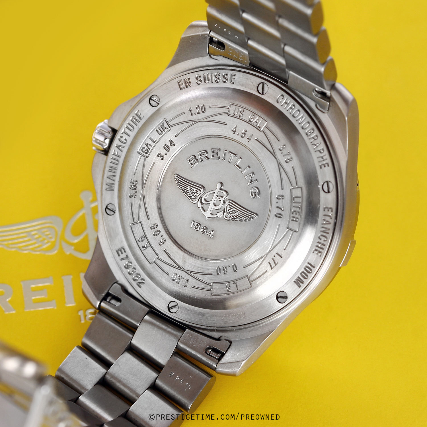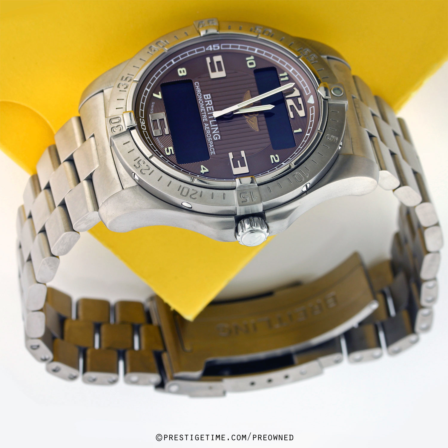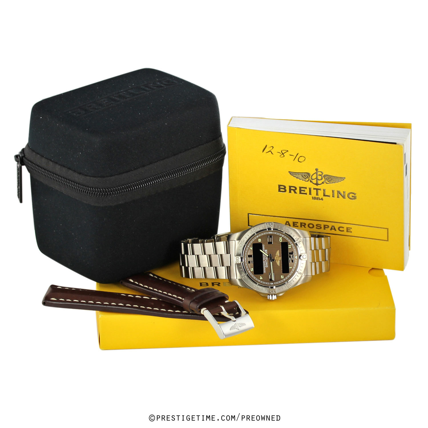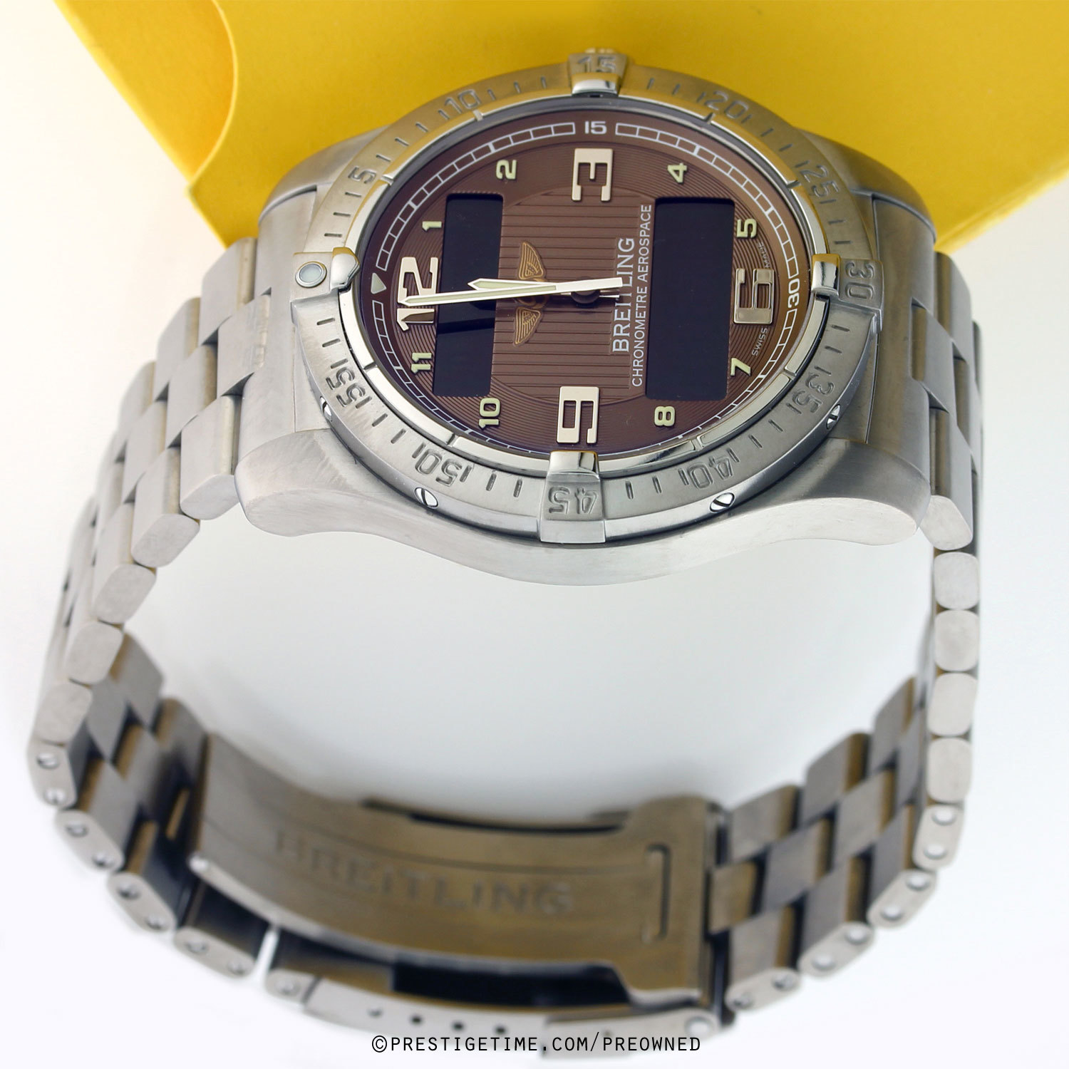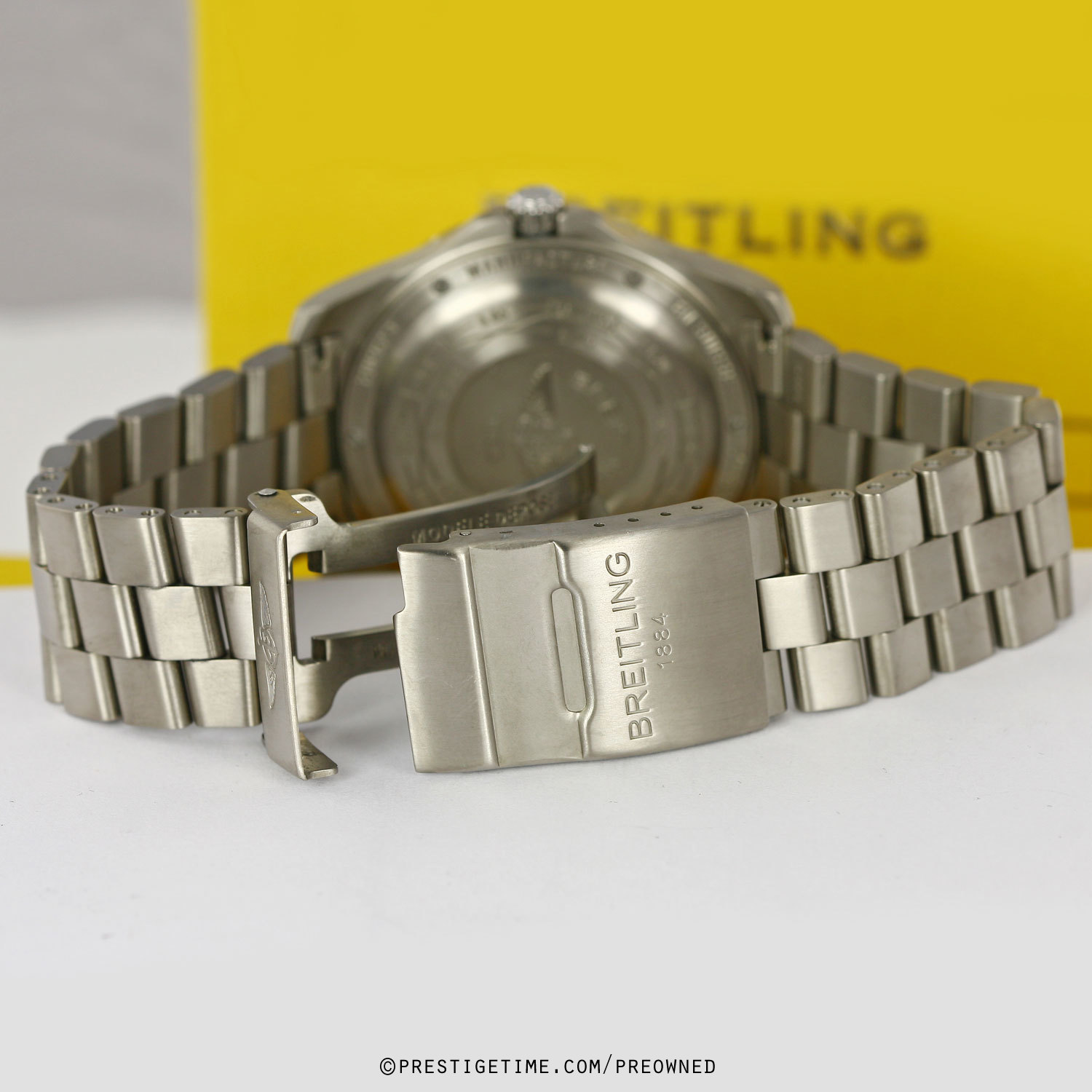The watch is fitted on its original PROFESSIONAL III titanium bracelet with a safety folding clasp. the bracelet has all links. Included is an additional unworn OEM Breitling brown calfskin strap with a tang buckle. The strap has some light scuffs/dents from poor storage, but is in almost perfect condition.