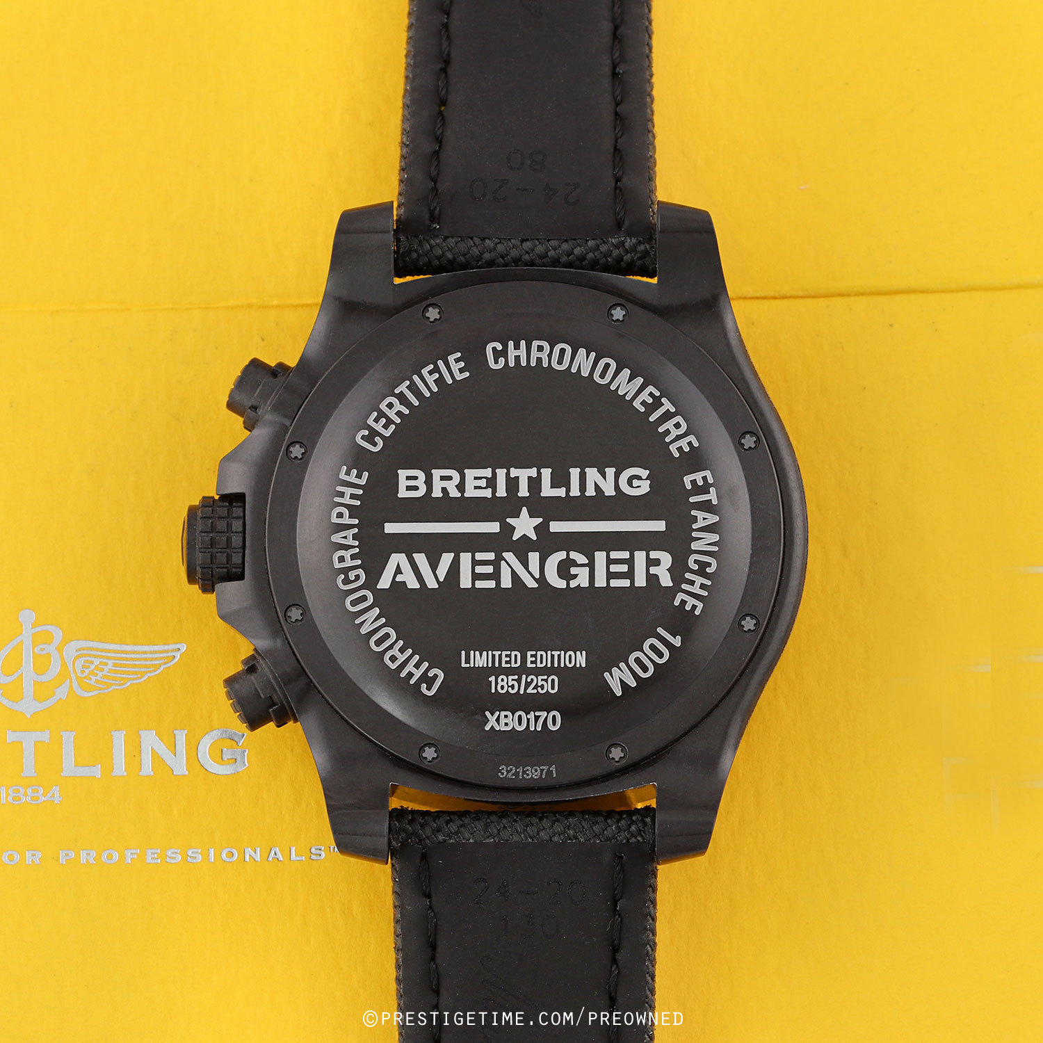 Case: Matte black case made from a Breitling proprietary lightweight, yet highly durable material named Breitlight: The Breitlight material utilizes a lightweight high-tech polymer that’s been charged with composite fibers for strength and rigidity, it is over three times lighter than titanium and nearly six times lighter than steel.