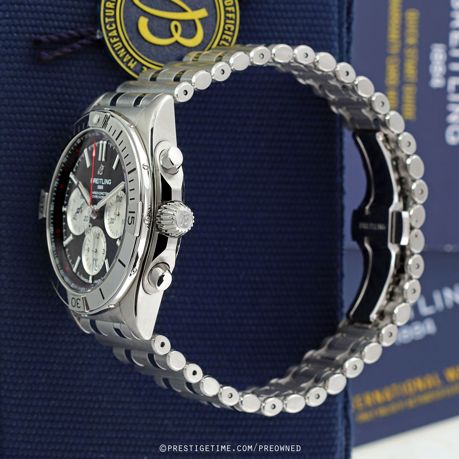 Movement: Powered by a Breitling in-house caliber 01, which beats at 28,000 vph (4Hz), contains 47 jewels, and has a power reserve of +/- 70 hours.