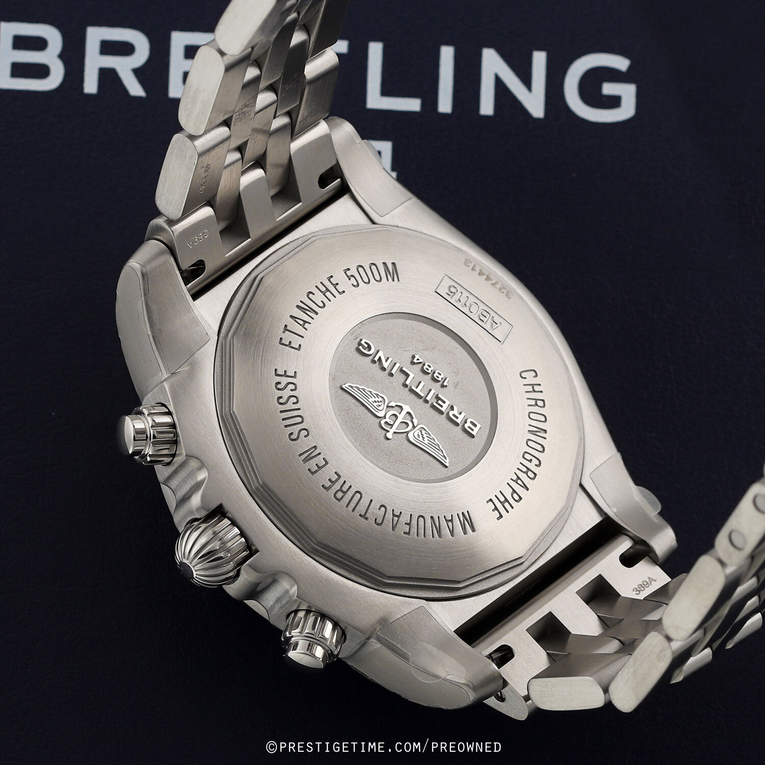 Movement: Powered by a Breitling in-house caliber 01, which beats at 28,000 vph (4Hz), contains 47 jewels, and has a power reserve of +/- 70 hours.