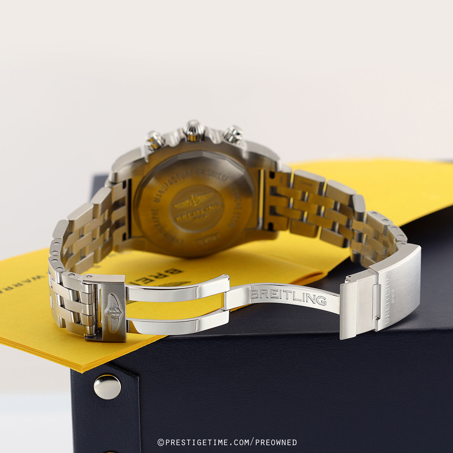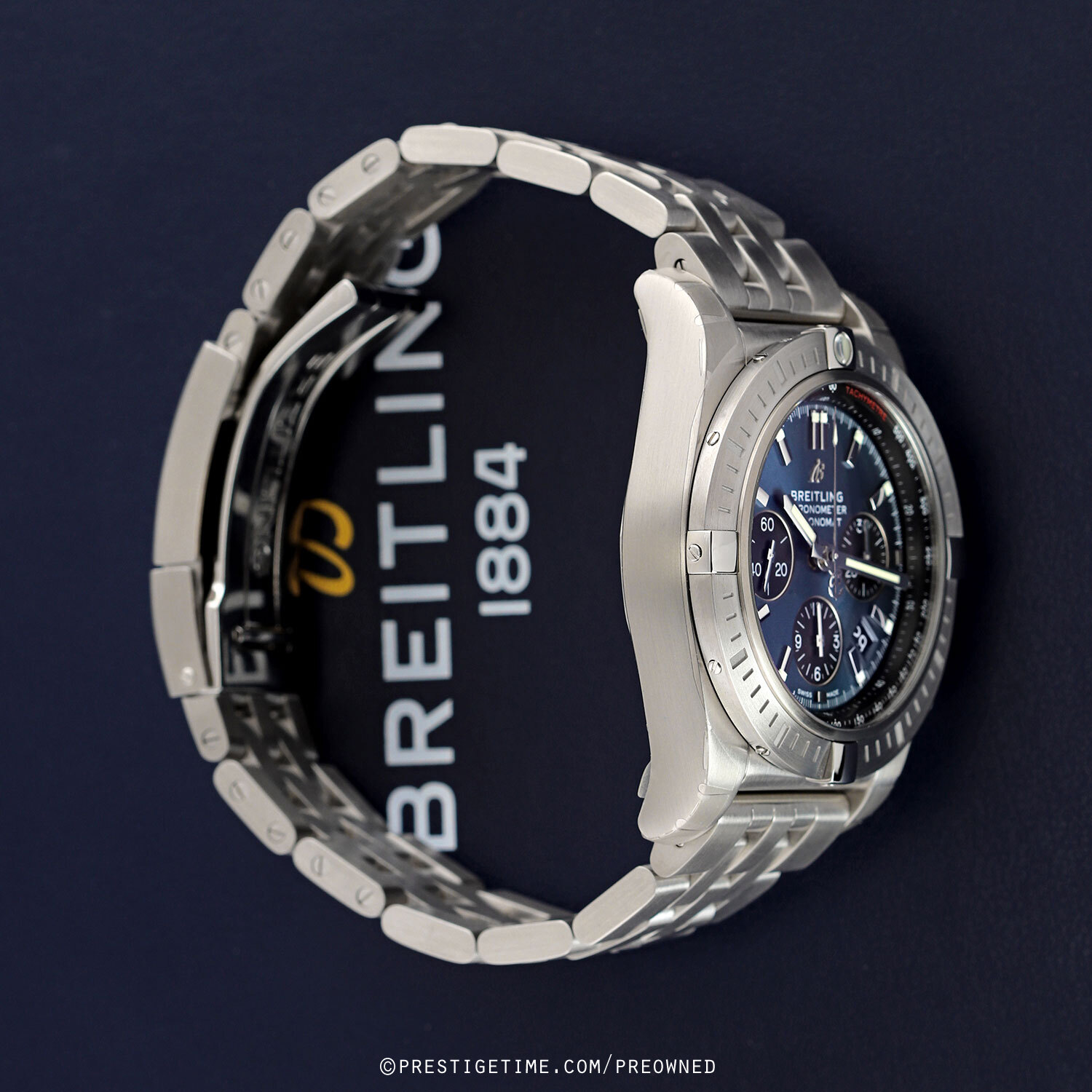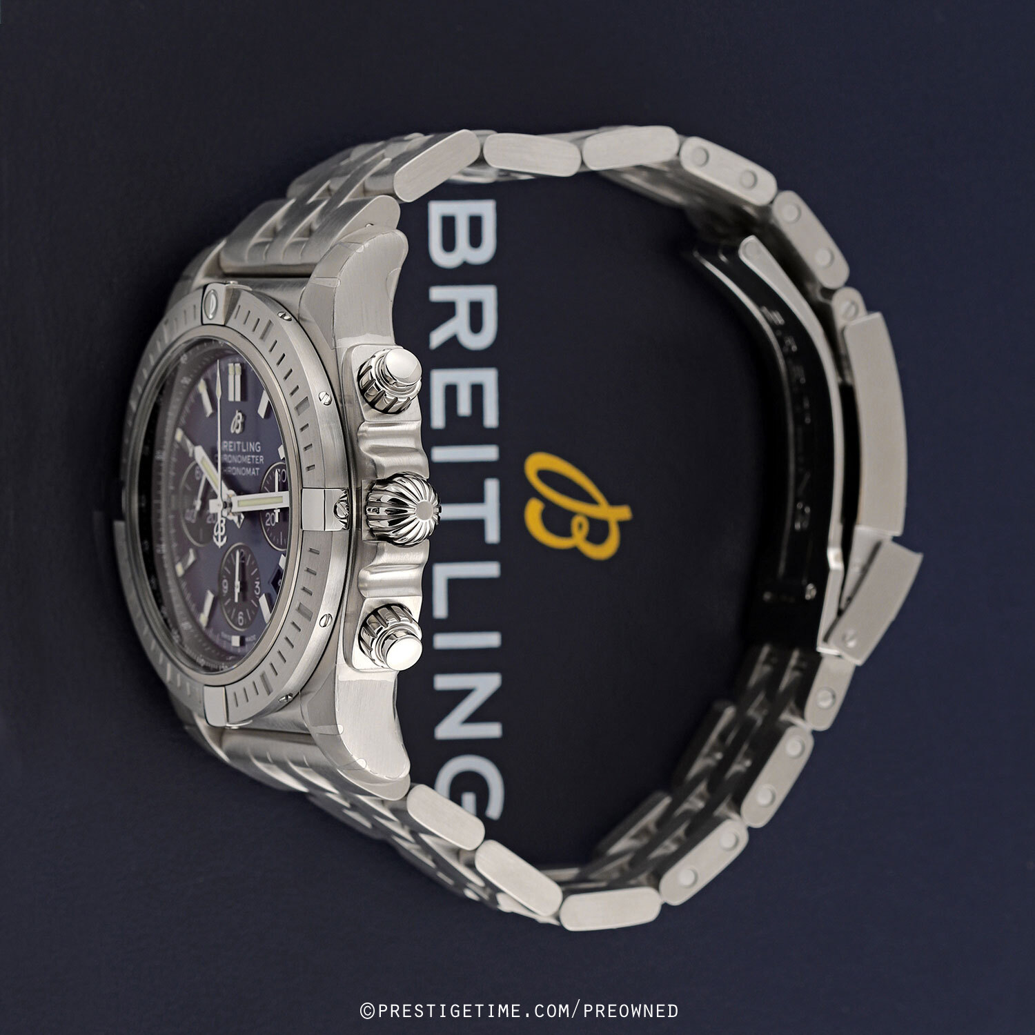 Strap: Fitted on its original Breitling brushed stainless steel bracelet and a deployant clasp with a safety latch. The bracelet is fully linked & will fit up to a 8.25" wrist