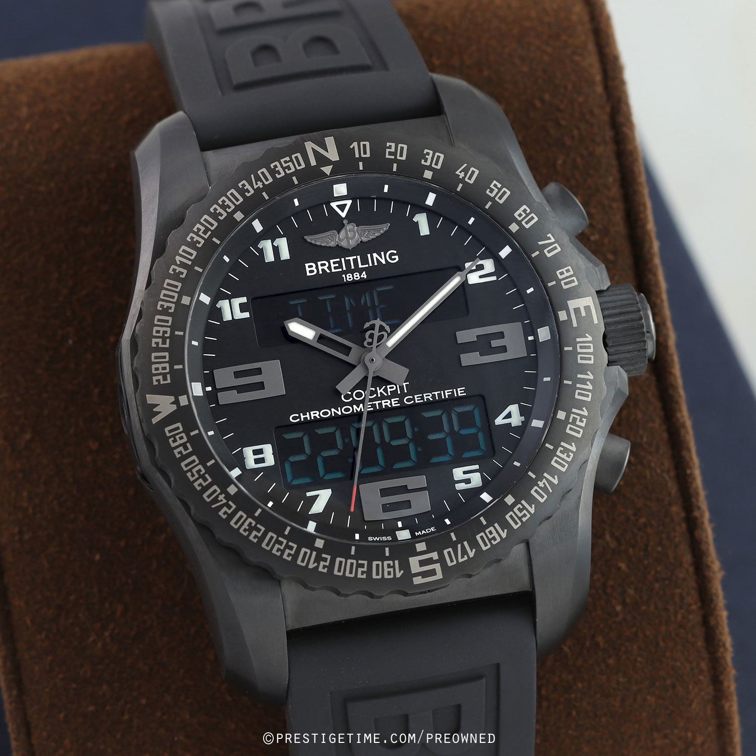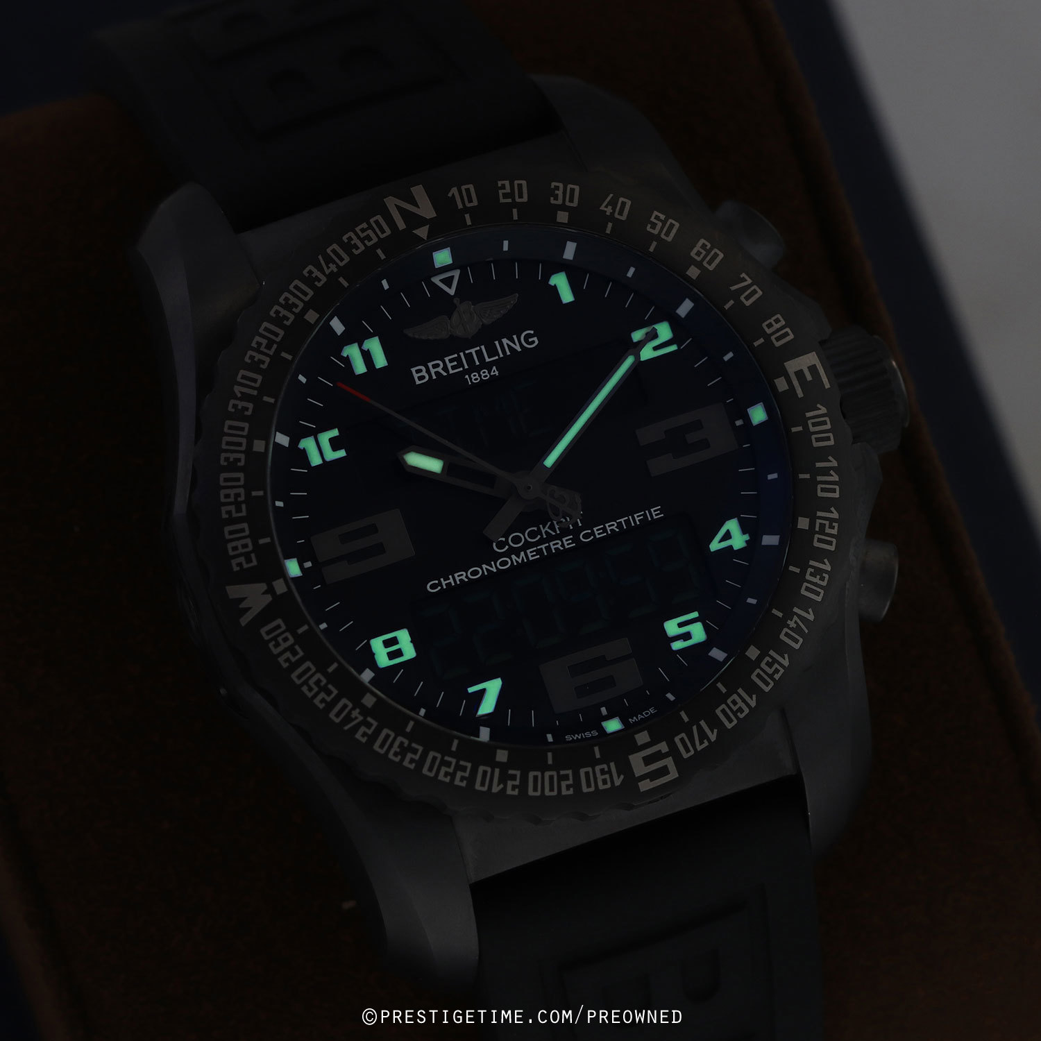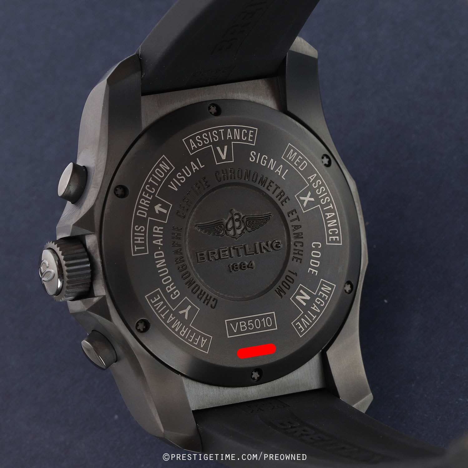 Condition: In excellent near new condition. The black DLC coating has no visible wear-through or nicks. With close inspection the watch shows very light signs of wear, but at a glance it looks almost brand new. Fitted on a brand new full length rubber strap (will need to be cut down to size). We would be comfortable rating this watch in 97% overall condition. Delivered in its original box & instruction manual. Original warranty card not included, However Breitling online registration shows this watch as having been sold in 11/2019.