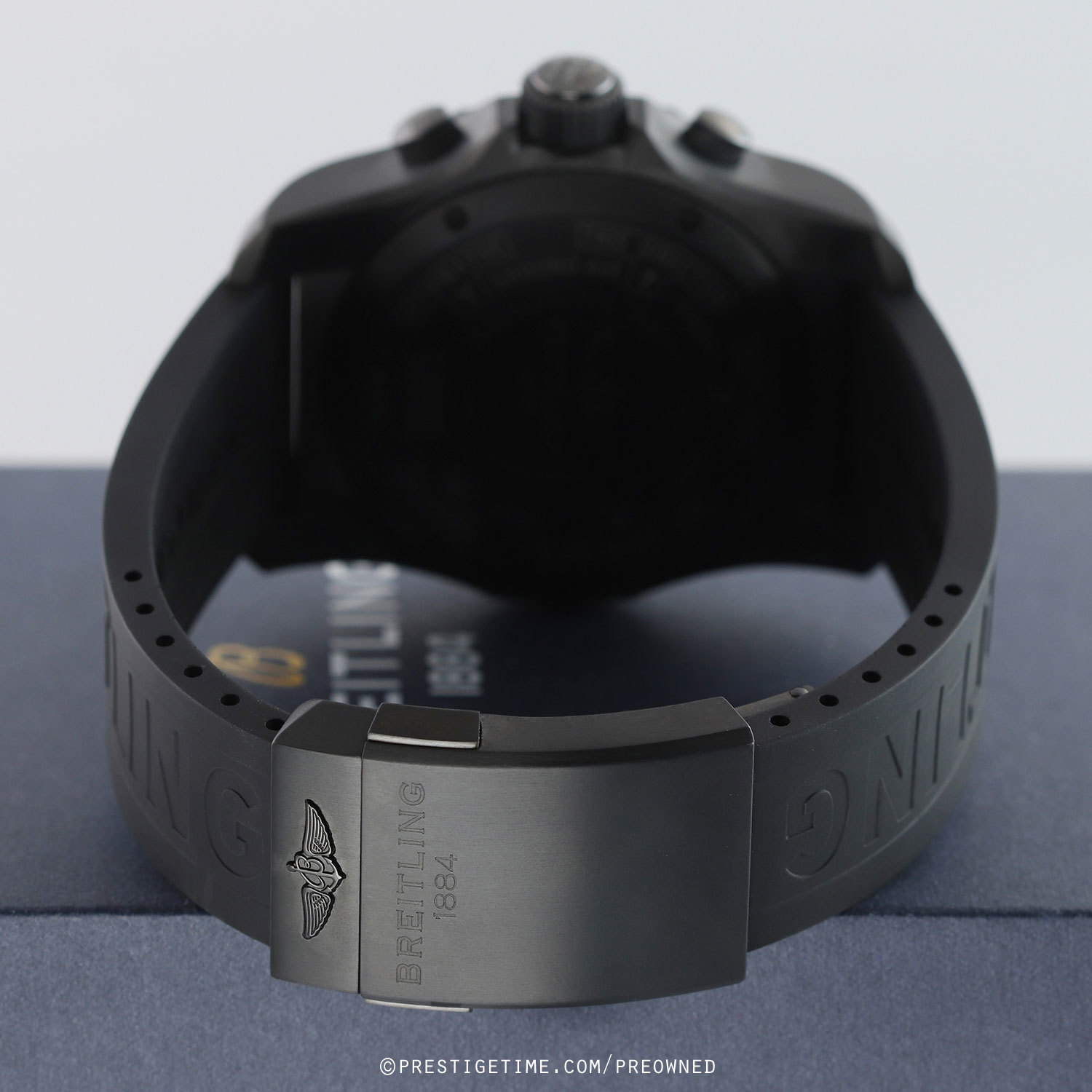 Strap: Fitted on its original Breitling branded black rubber strap with a black DLC coated titanium push-button deployant buckle featuring a micro-adjustment sliding mechanism. The strap is brand new & in unworn condition with its full wear lifespan. The strap is uncut, at its full length it will fit up to a 8.75" wrist.