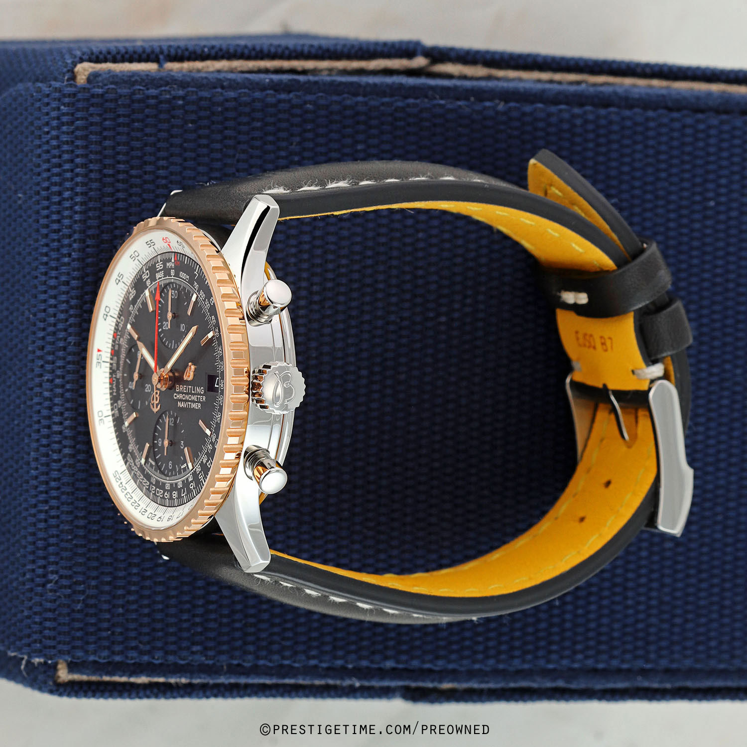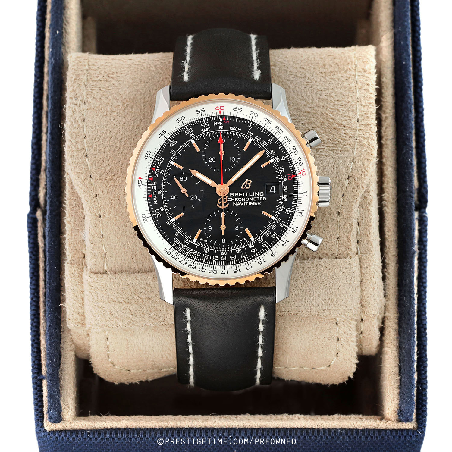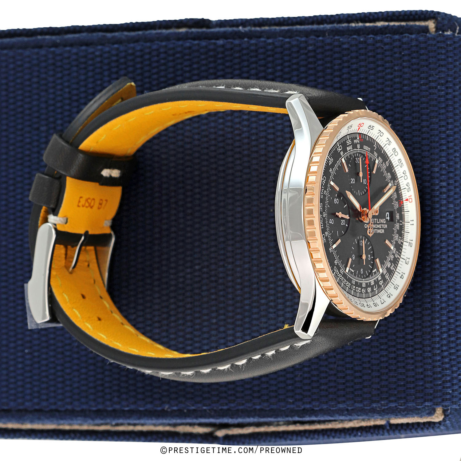 Movement: Powered by a COSC Chronometer Certified Breitling caliber 13 (base ETA/Valjoux 7750), beats at 28,000 cph (4Hz), contains 25 jewels, and has a power reserve of +/- 42 hours.