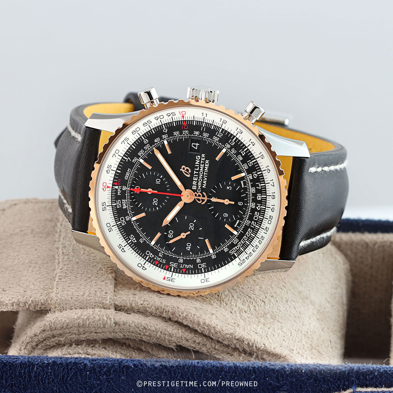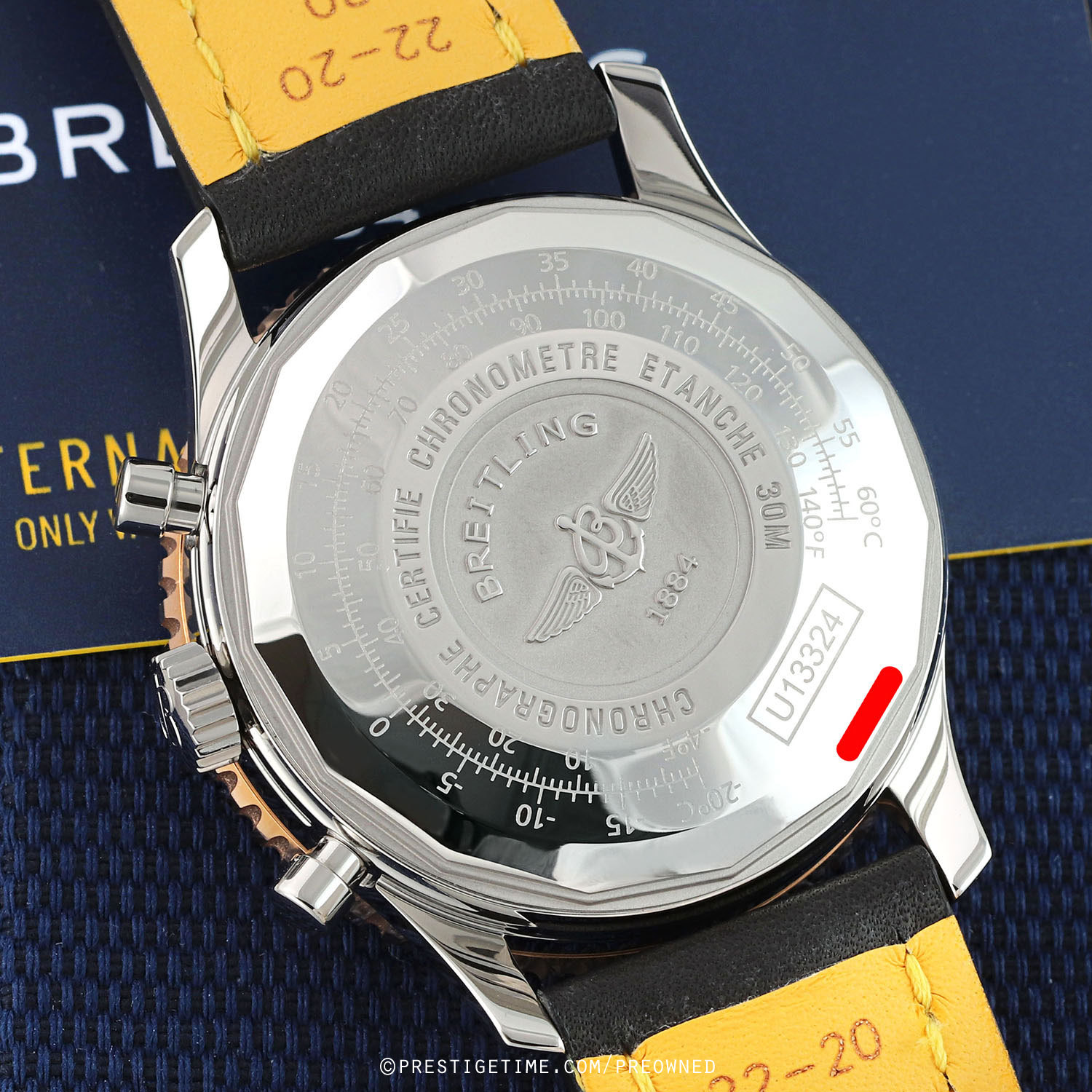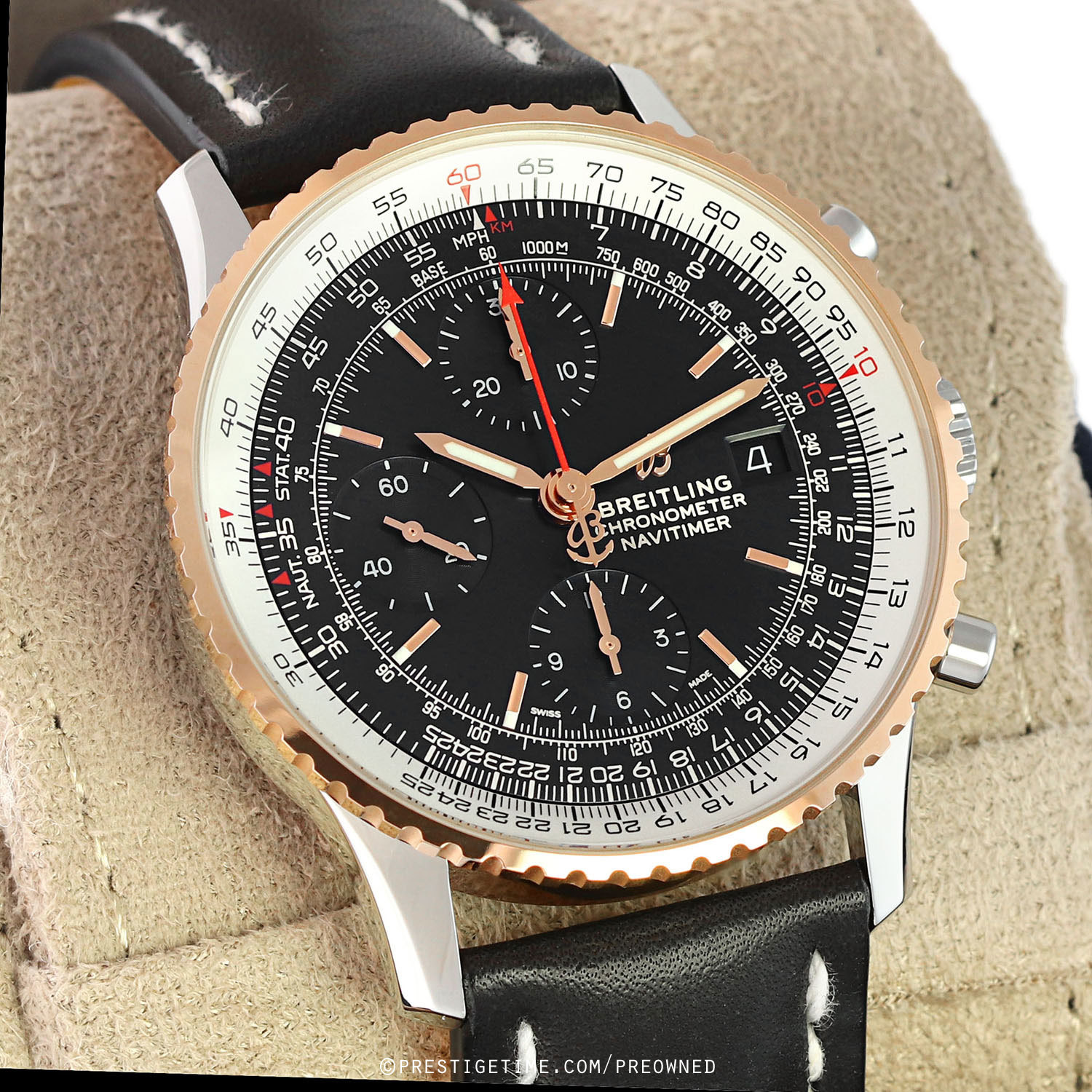 Movement: Powered by a COSC Chronometer Certified Breitling caliber 13 (base ETA/Valjoux 7750), beats at 28,000 cph (4Hz), contains 25 jewels, and has a power reserve of +/- 42 hours.
