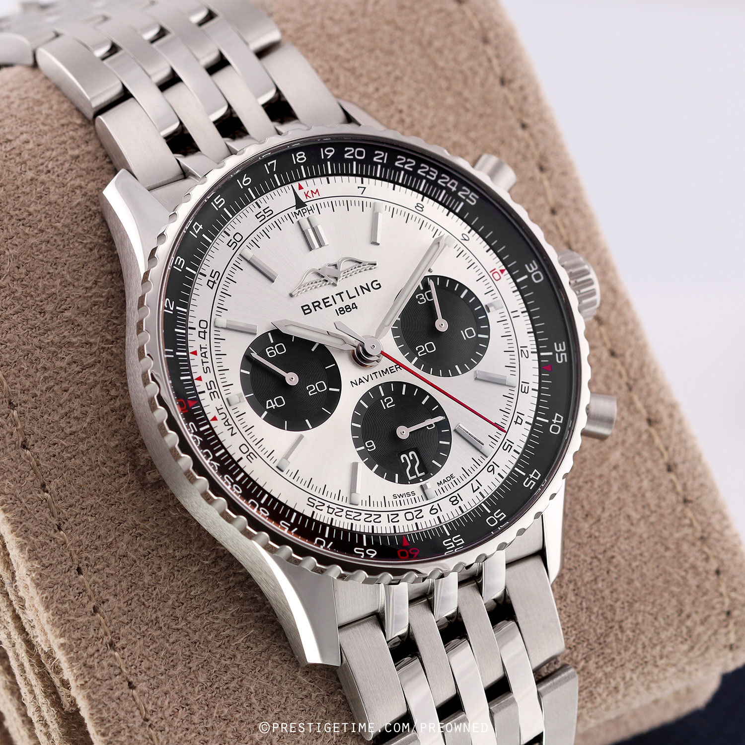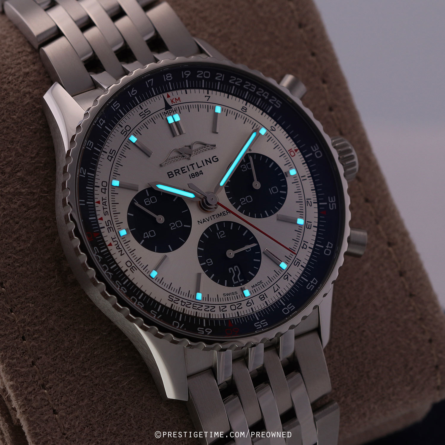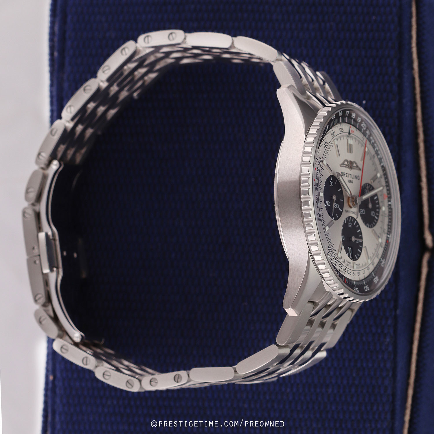 Bracelet: Fitted on its original Breitling brushed & polished stainless steel bracelet with a push-button folding clasp. The bracelet is fully linked & will fit up to a 8" wrist.