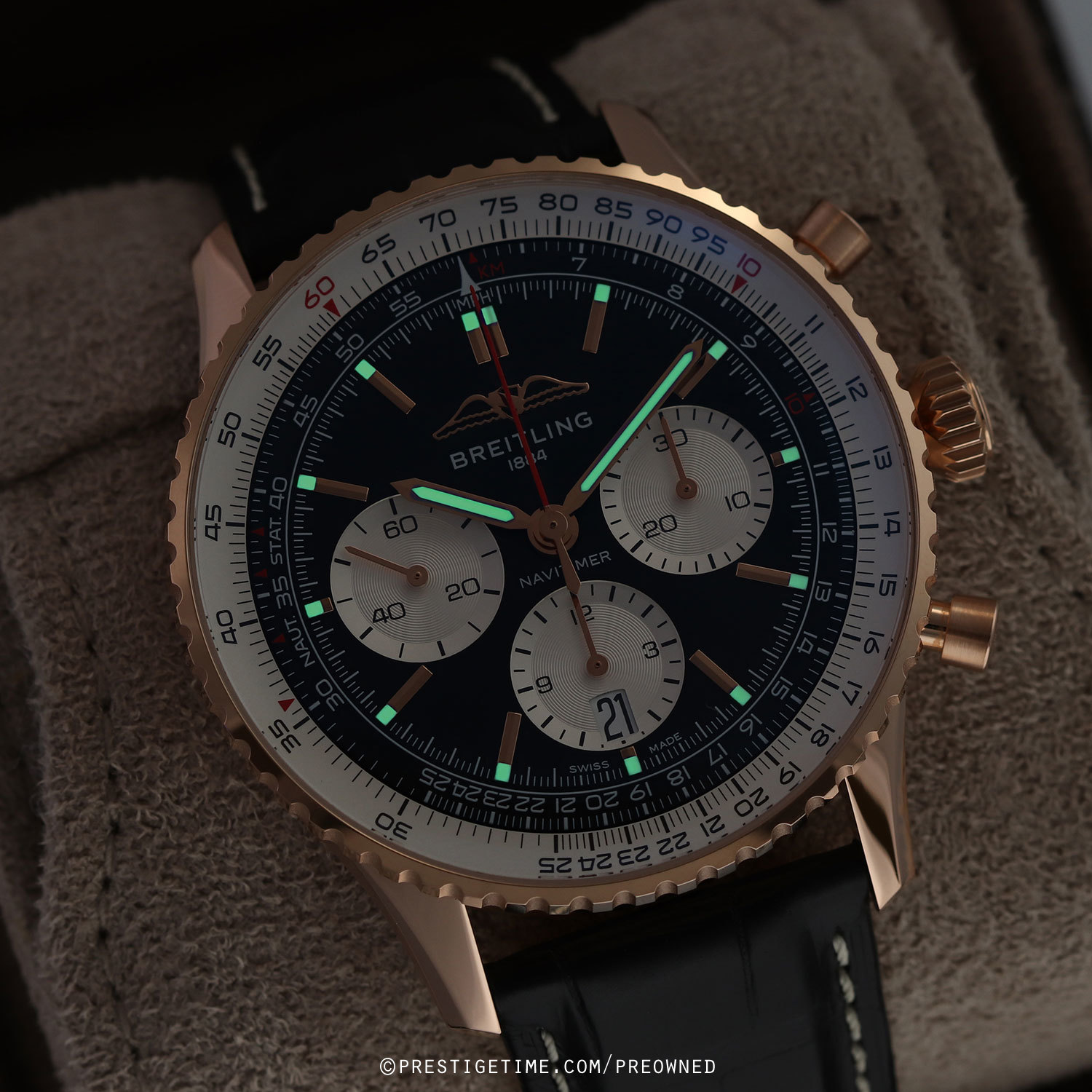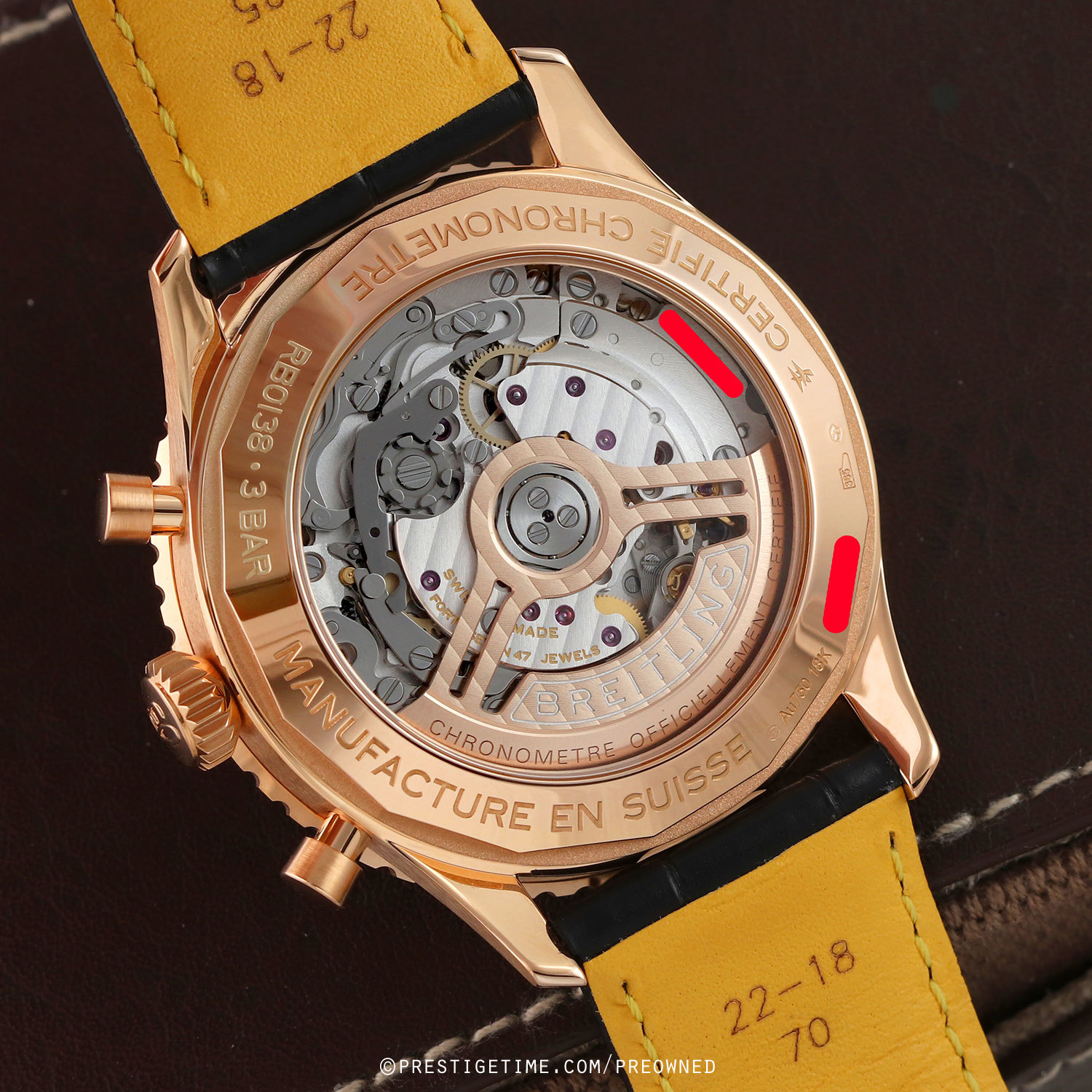 Movement: Powered by a Breitling in-house caliber 01, which beats at 28,000 vph (4Hz), contains 47 jewels, and has a power reserve of +/- 70 hours.