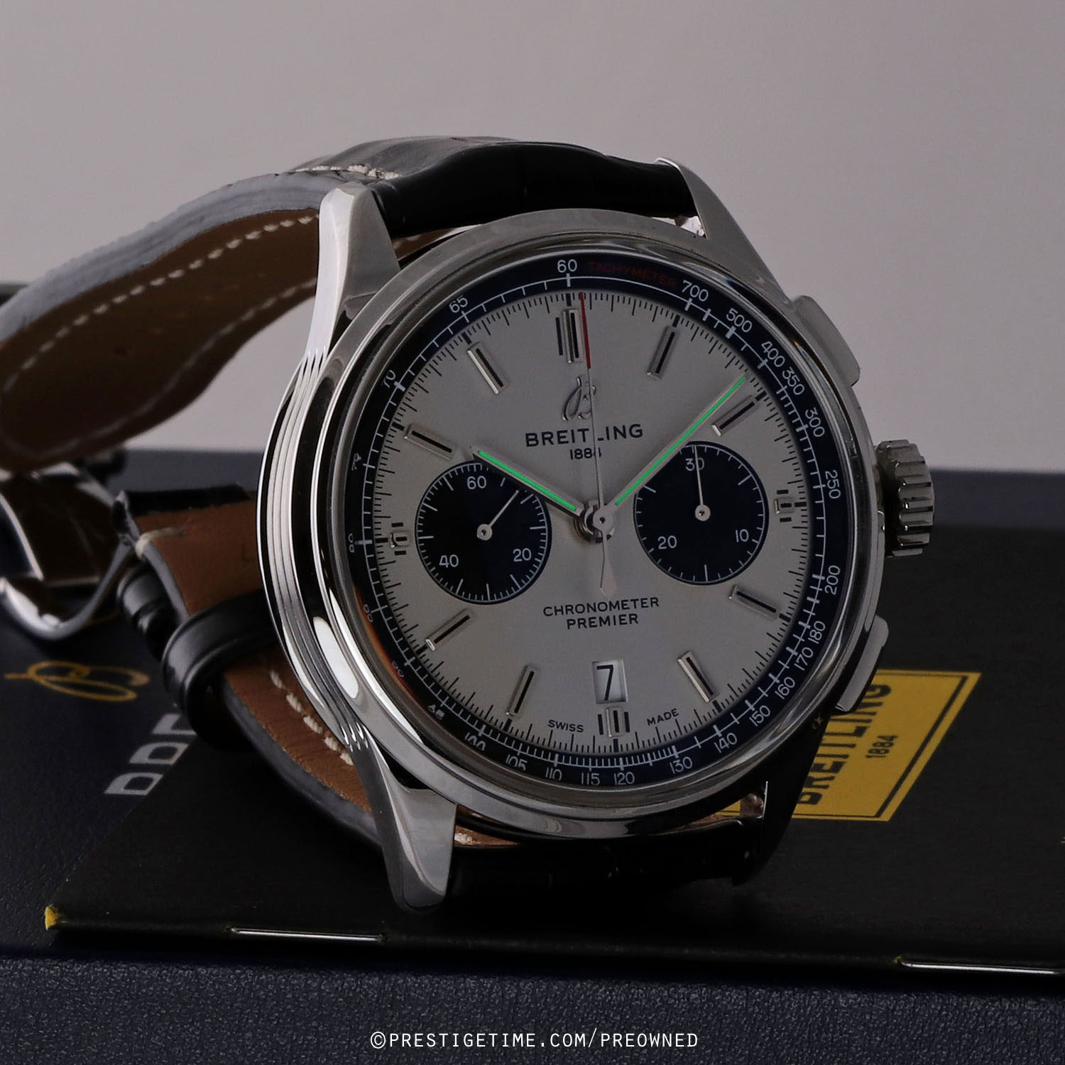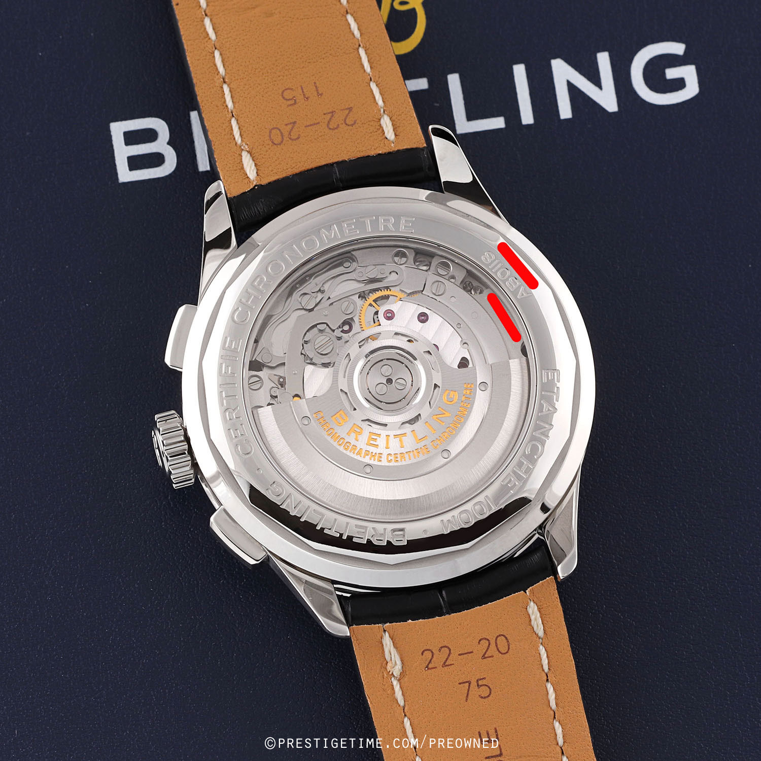Movement: Powered by a in-house caliber Breitling 01, which beats at 28,000 vph (4Hz), contains 41 jewels, and has a power reserve of +/- 70 hours.