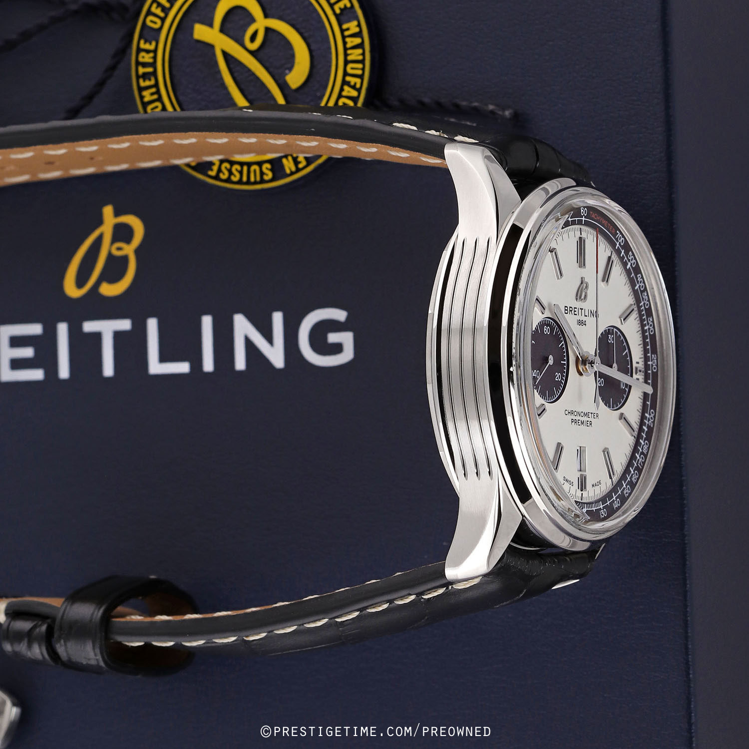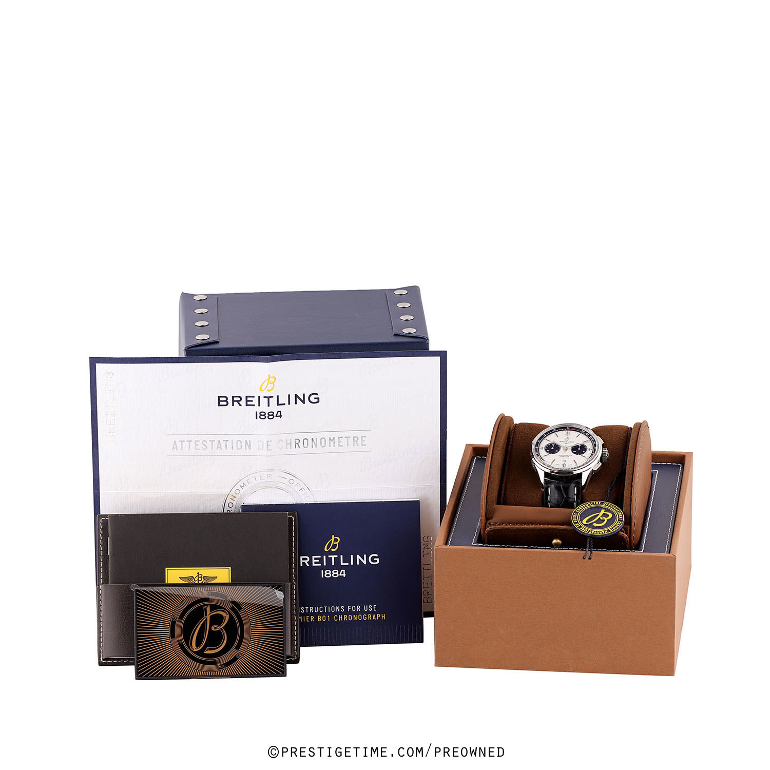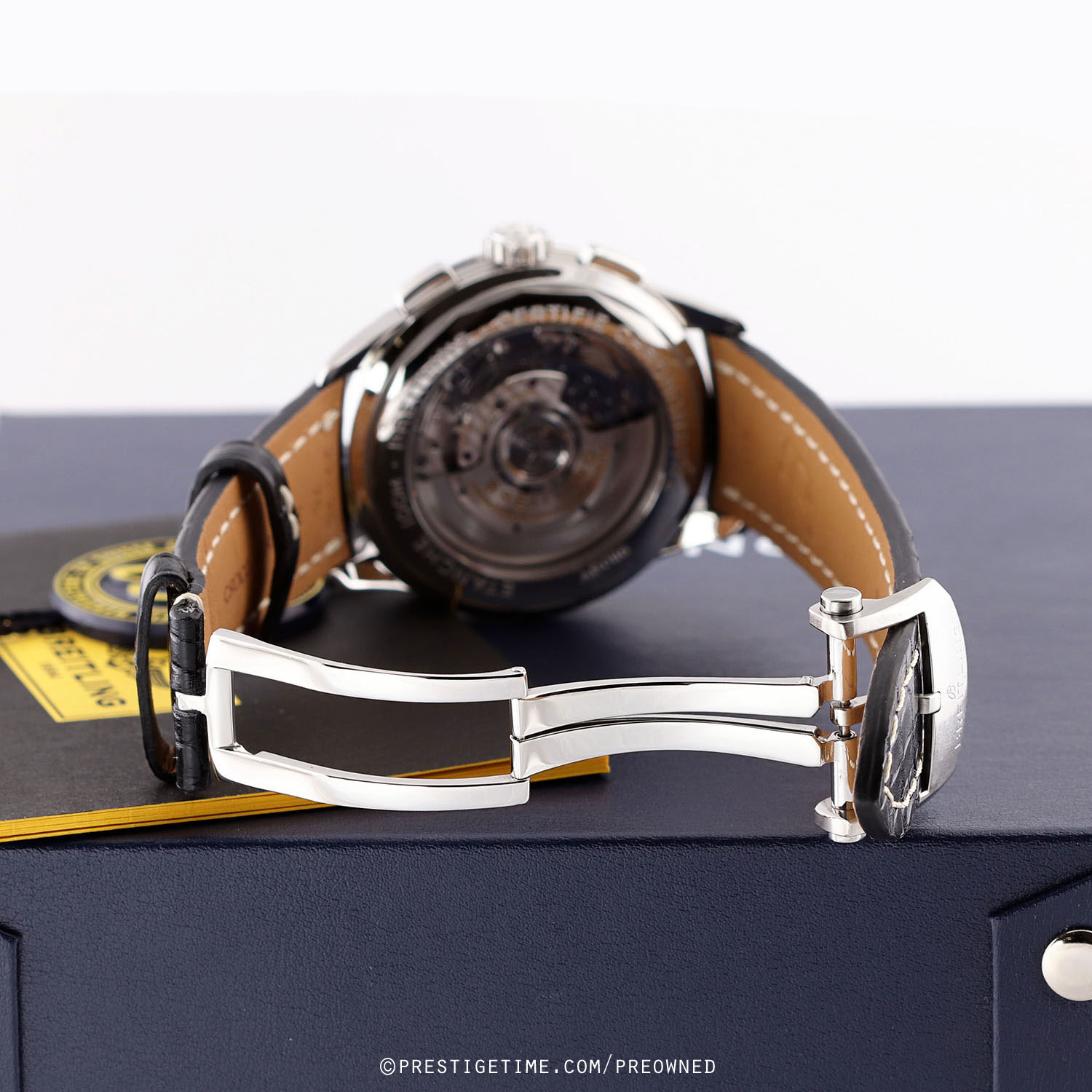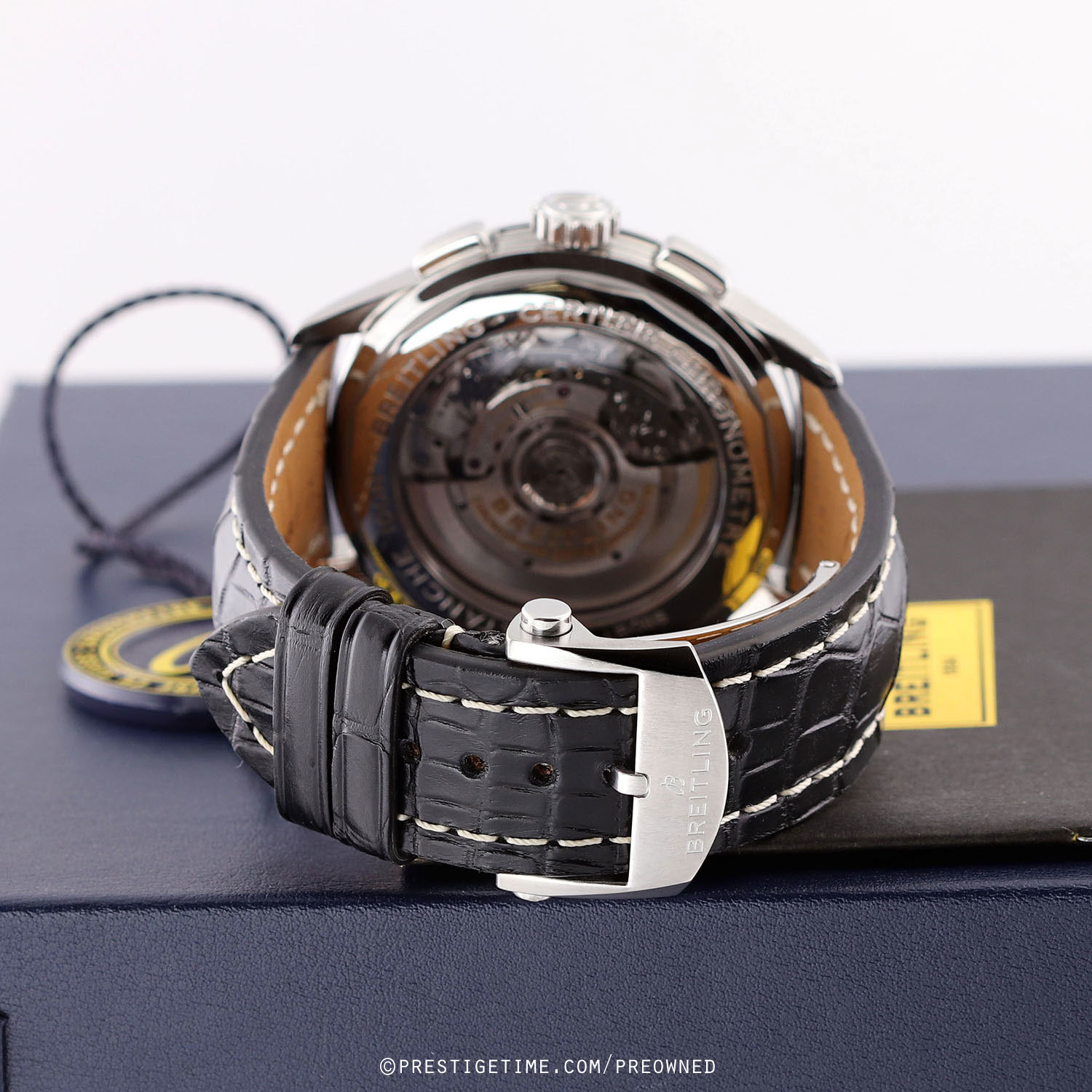 Strap: Fitted on a brand new Breitling original black alligator leather strap with a stainless steel deployant buckle. The strap is unworn with its full wear lifespan remaining.