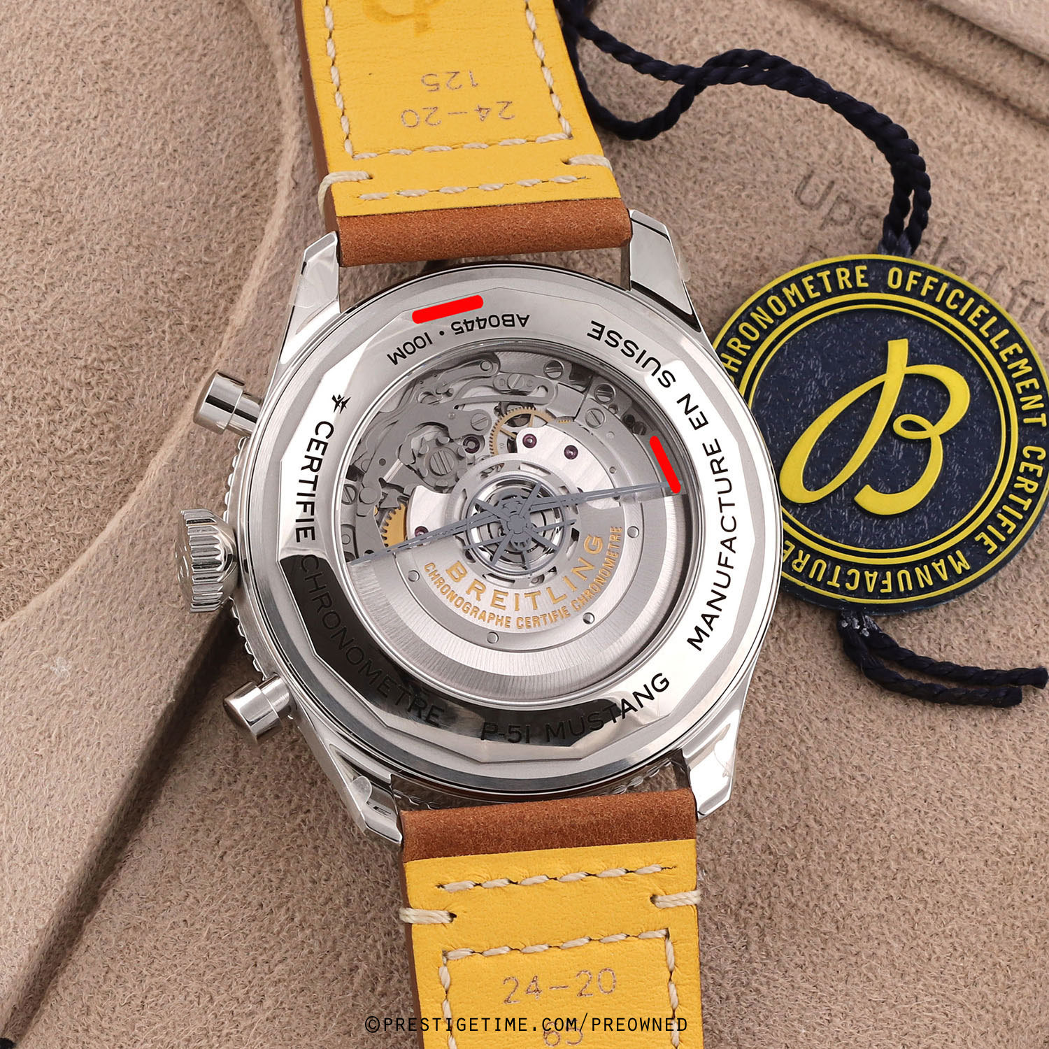 Breitling Super AVI P-51 MUSTANG B04 Chronograph GMT - the sapphire crystal case-back features a profile picture of the P-51 MUSTANG.