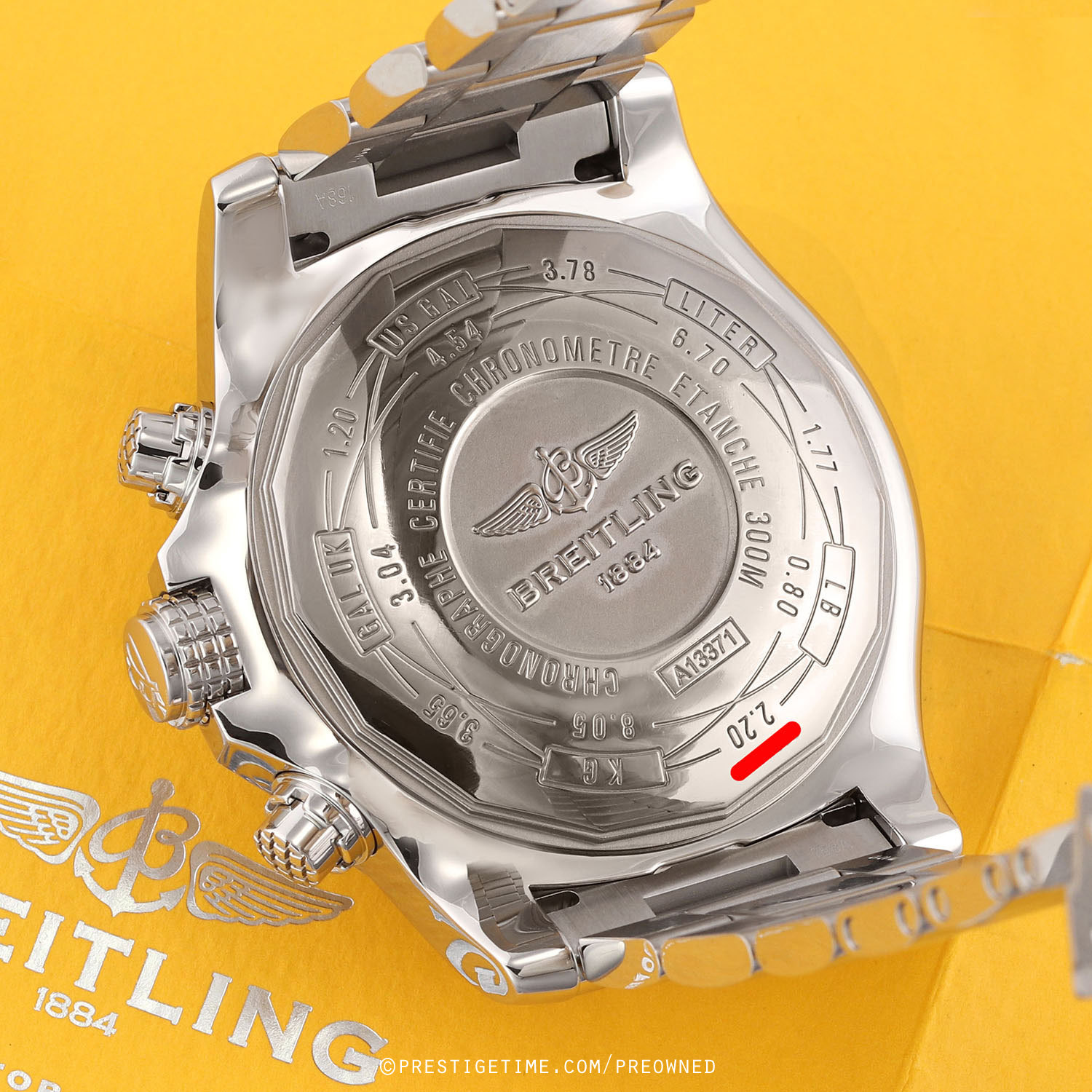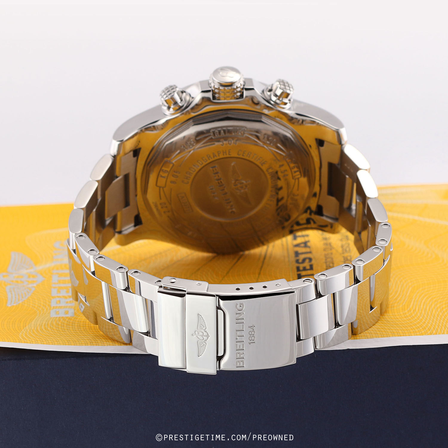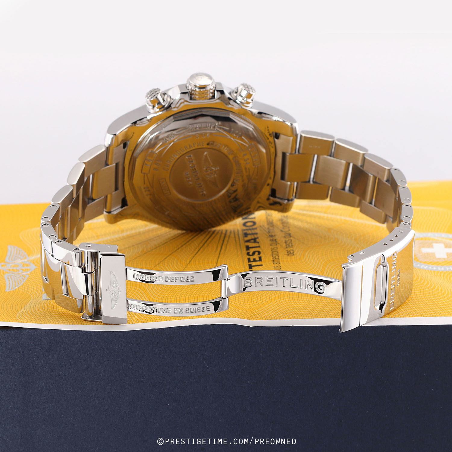 Movement: Powered by a Breitling COSC certified calibre 13 (base ETA/Valjoux 7750) which beats at 28,800 vph, contains 25 jewels, and has a power reserve of +/- 42 hours.