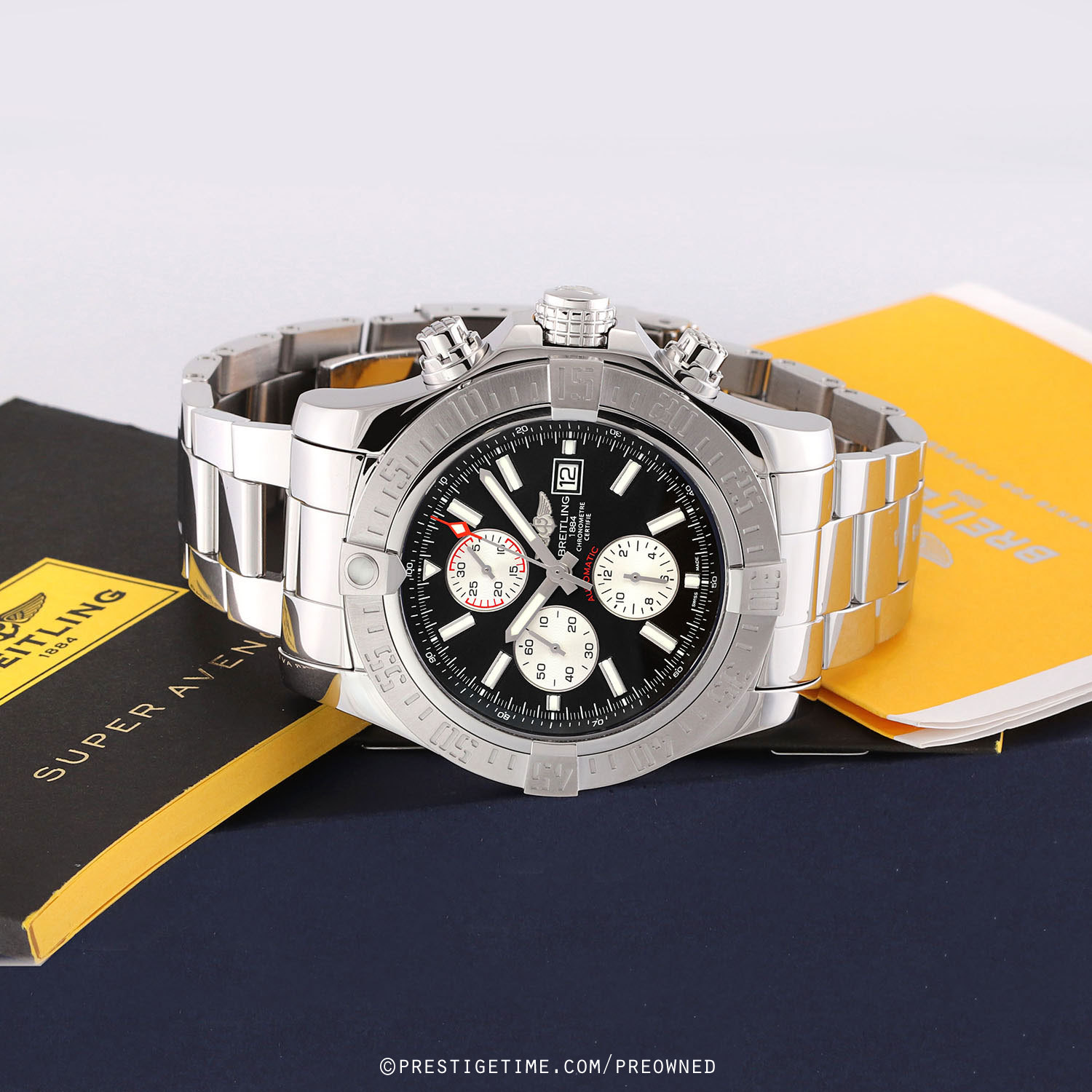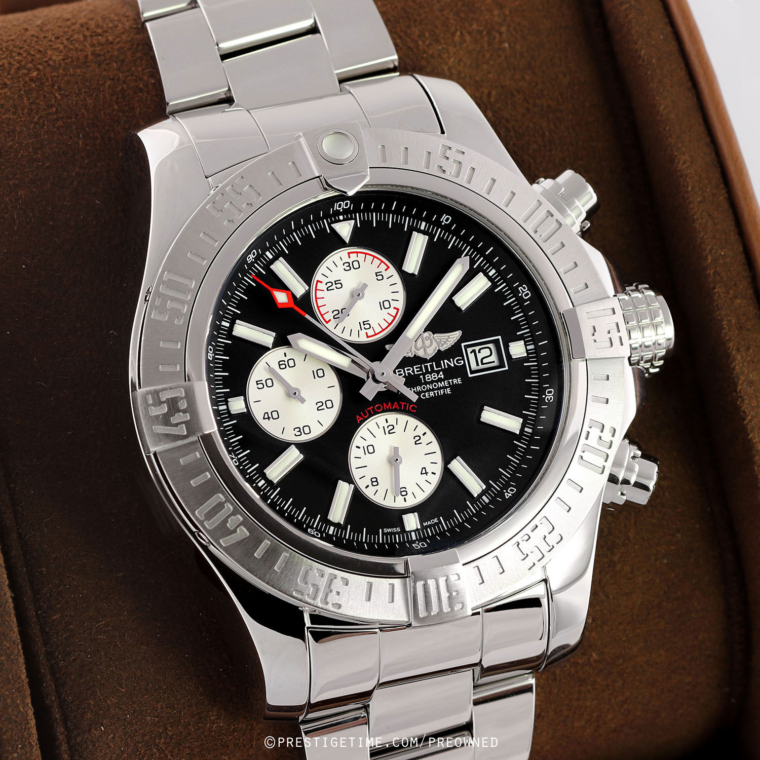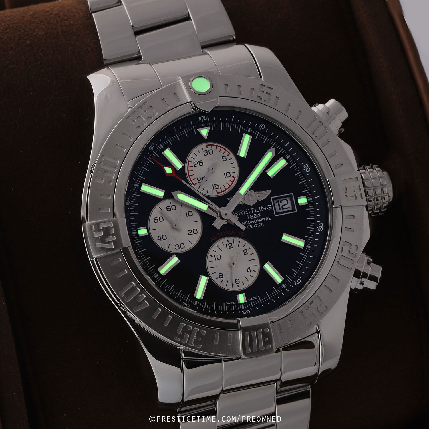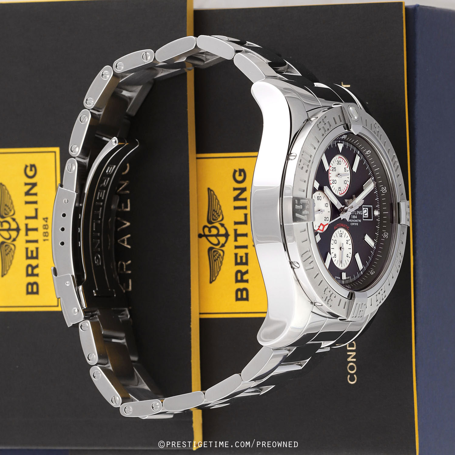 Movement: Powered by a Breitling COSC certified calibre 13 (base ETA/Valjoux 7750) which beats at 28,800 vph, contains 25 jewels, and has a power reserve of +/- 42 hours.