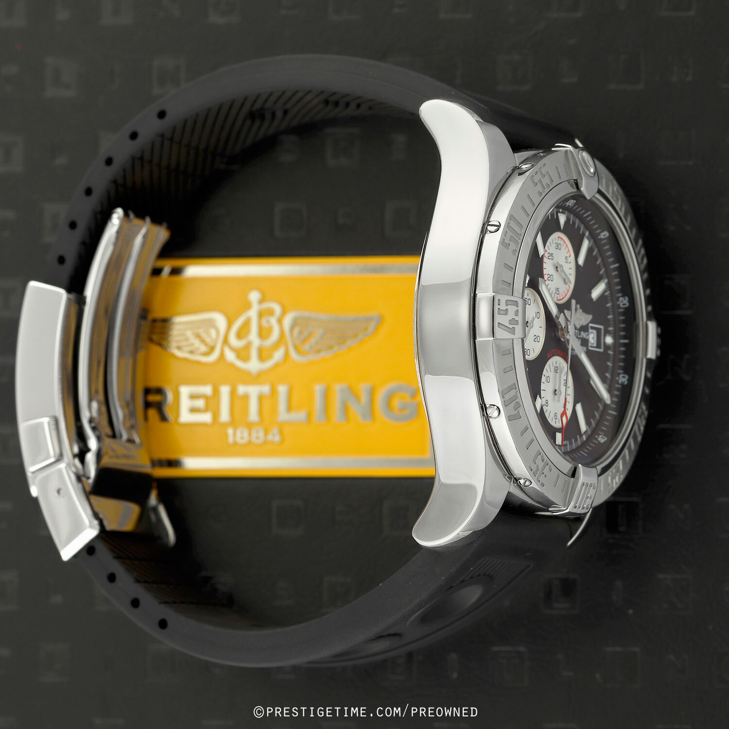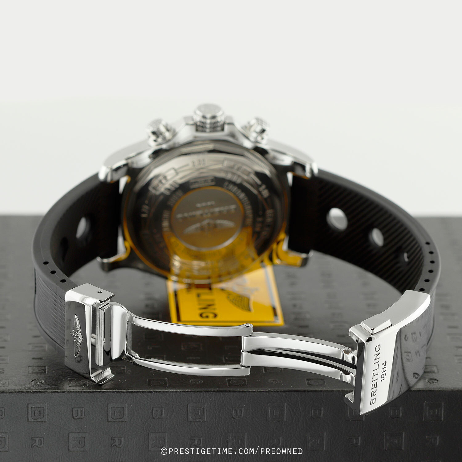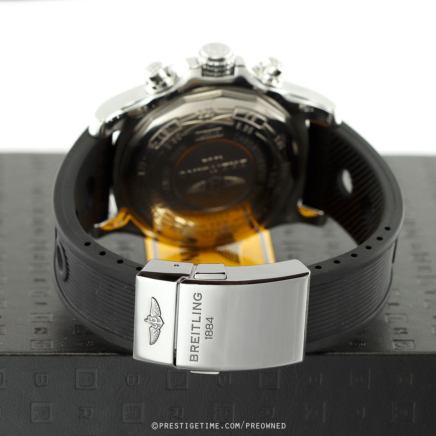 - Fitted on its original Breitling 'Ocean Racer' black rubber strap with a push-button deployant clasp. The deployant clasp has a quick micro adjustment system. The strap has been cut to size, will fit up to a 7.50" wrist. A replacement rubber strap can be ordered for $180.