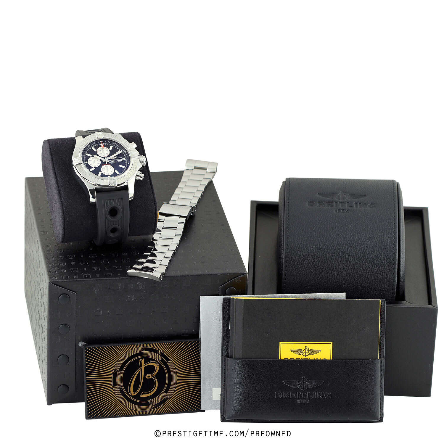 - Delivered with an additional OEM Breitling Professional III polished stainless steel bracelet featuring a folding clasp with a safety latch. The bracelet is fully linked & will fit up to a 8.25" wrist. We have had this bracelet polished to remove most signs of wear.