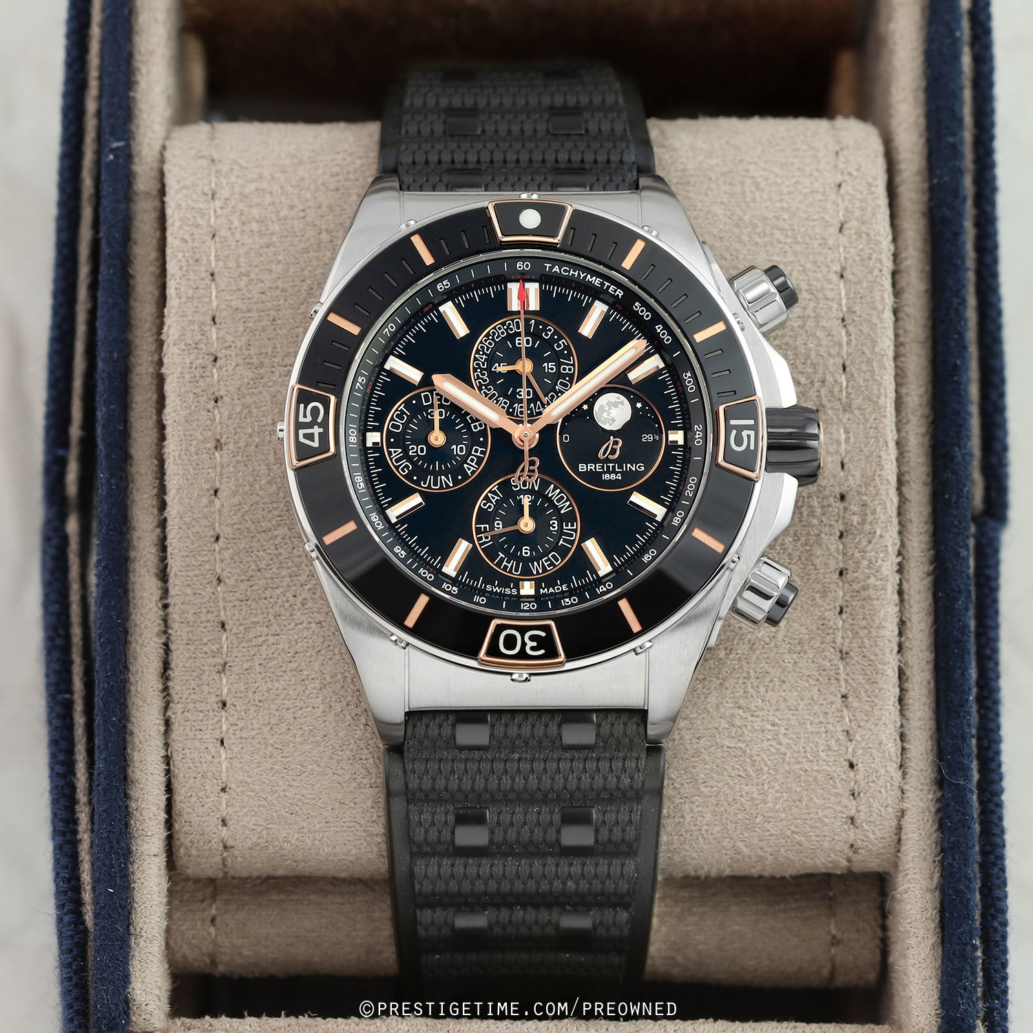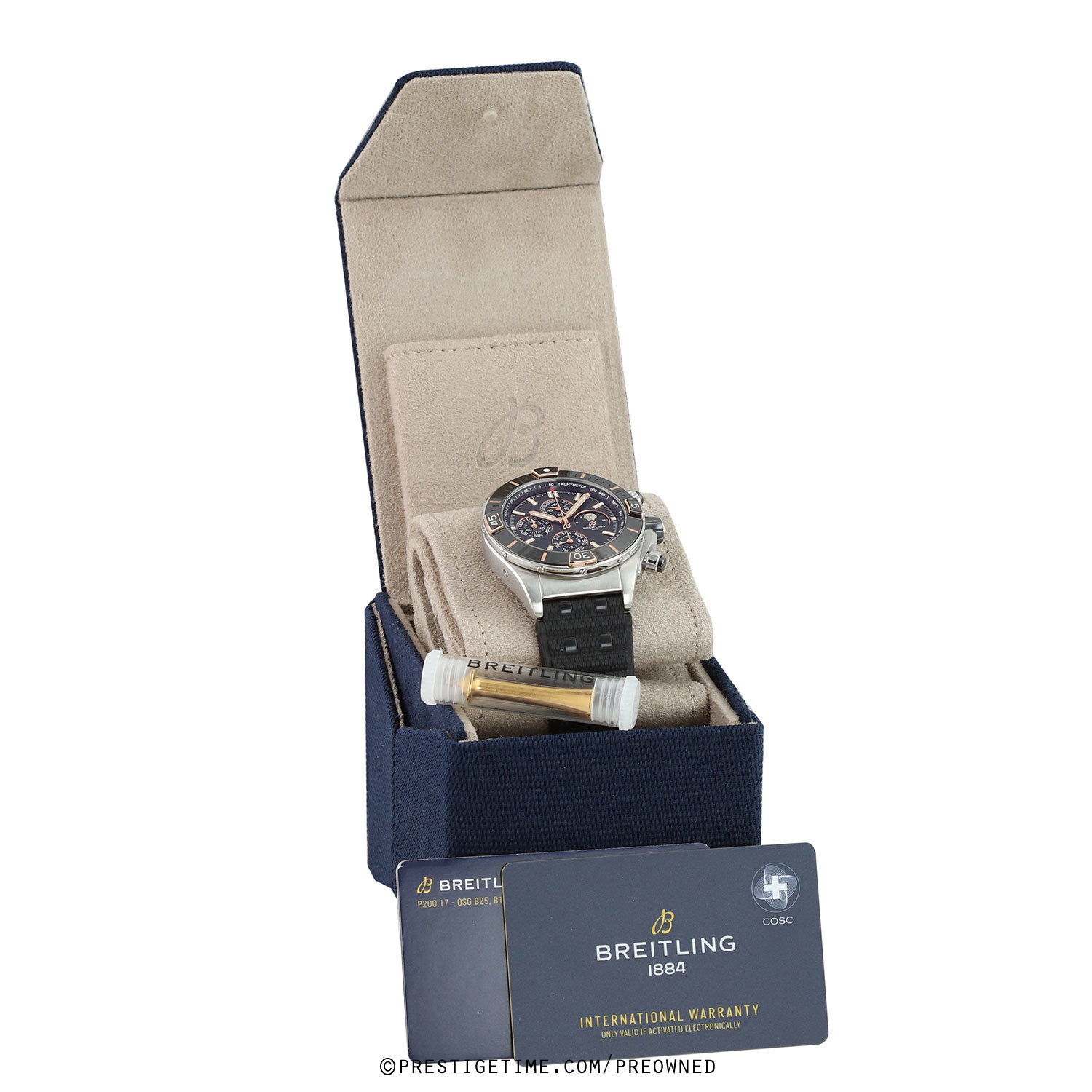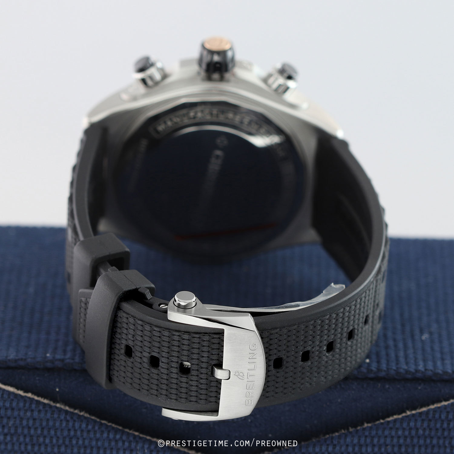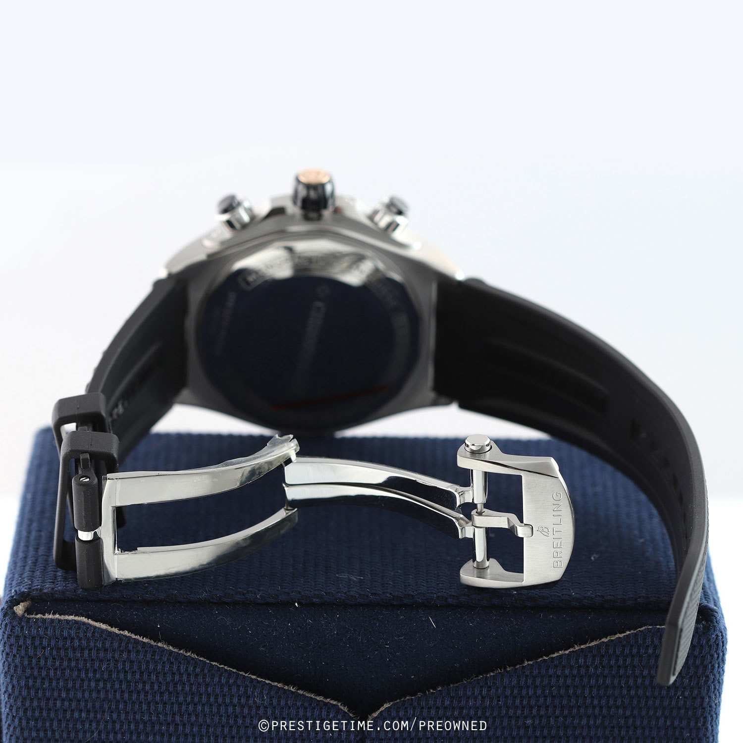Strap: Fitted on its original Breitling black rubber Rouleaux inspired strap with a push-button folding clasp.