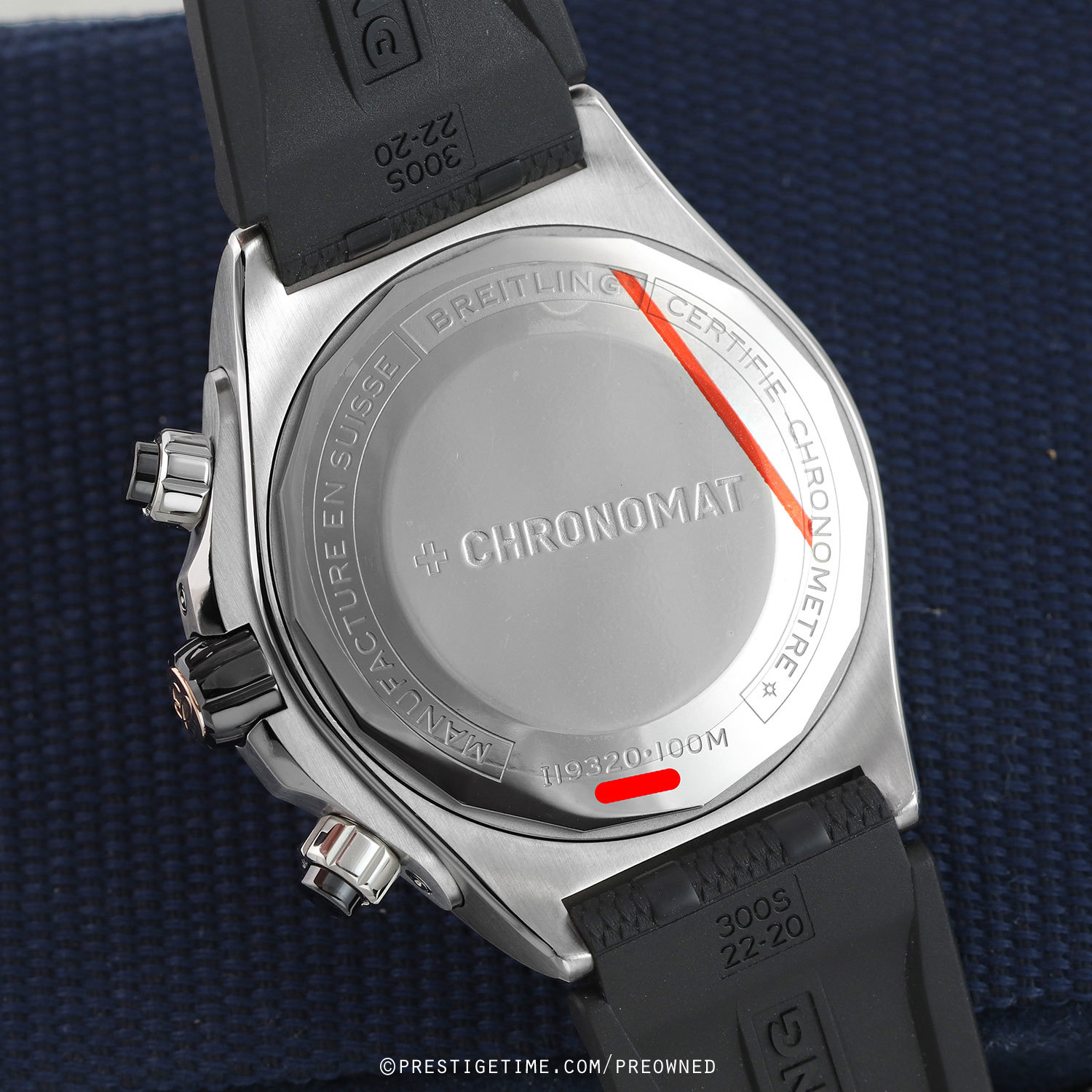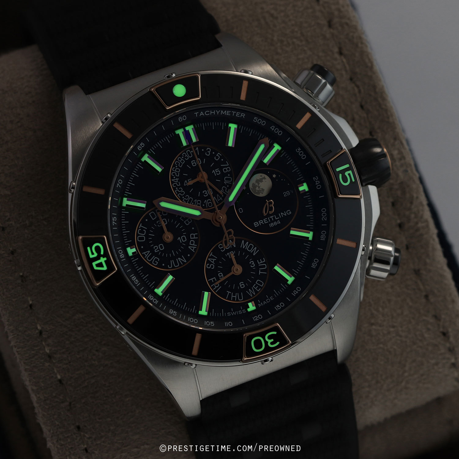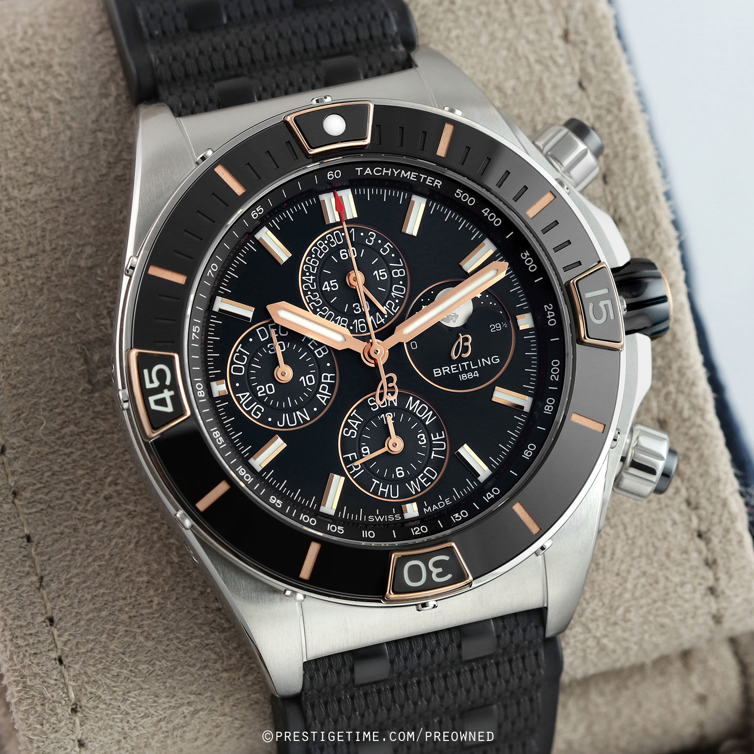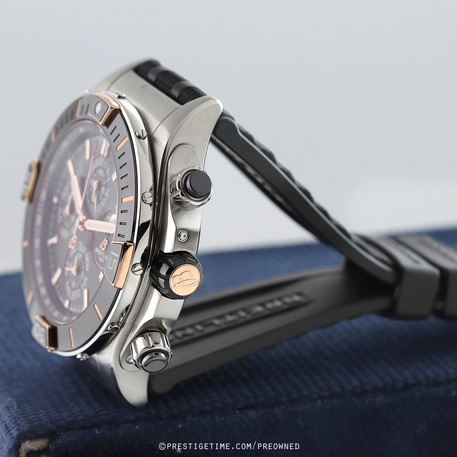 Strap: Fitted on its original Breitling black rubber Rouleaux inspired strap with a push-button folding clasp.