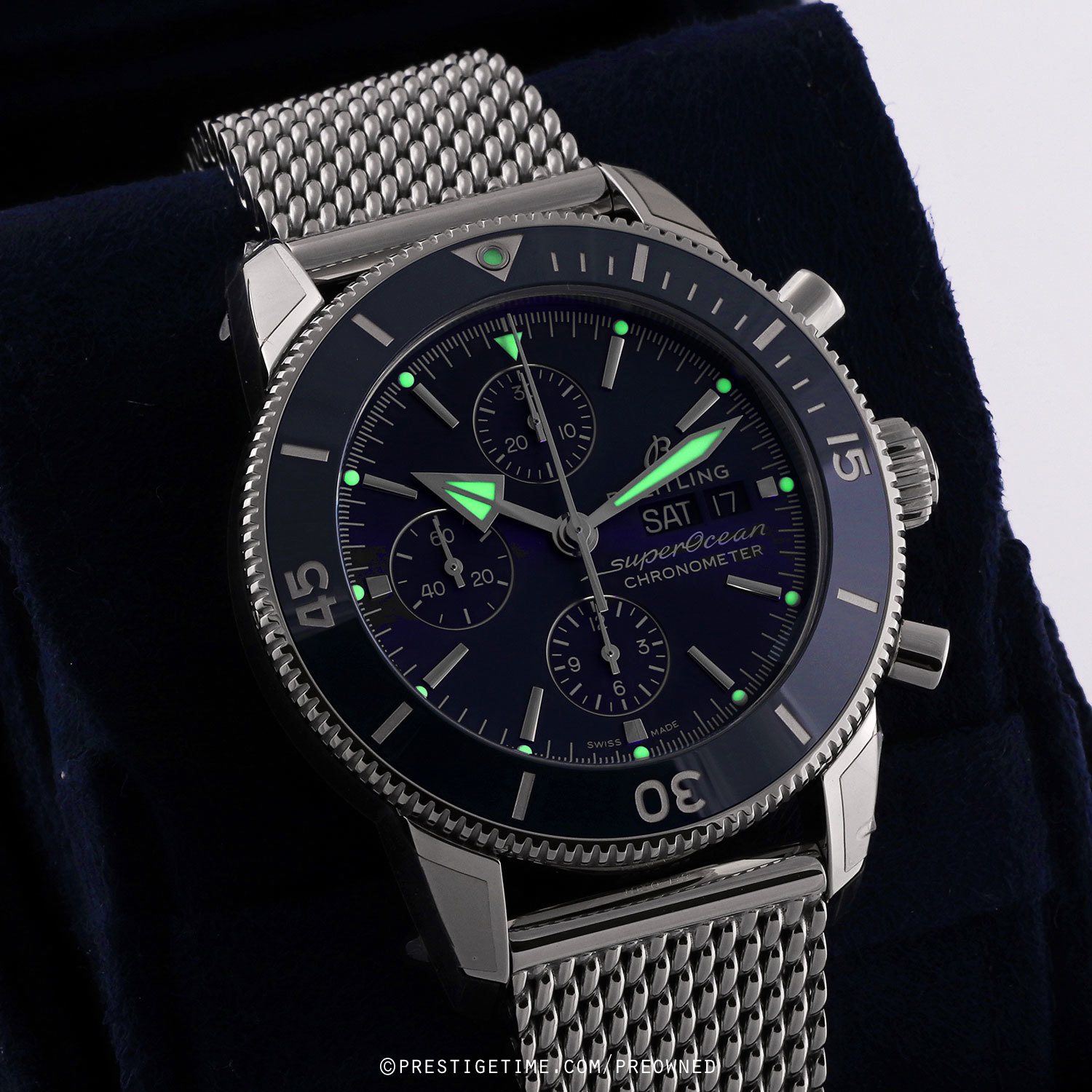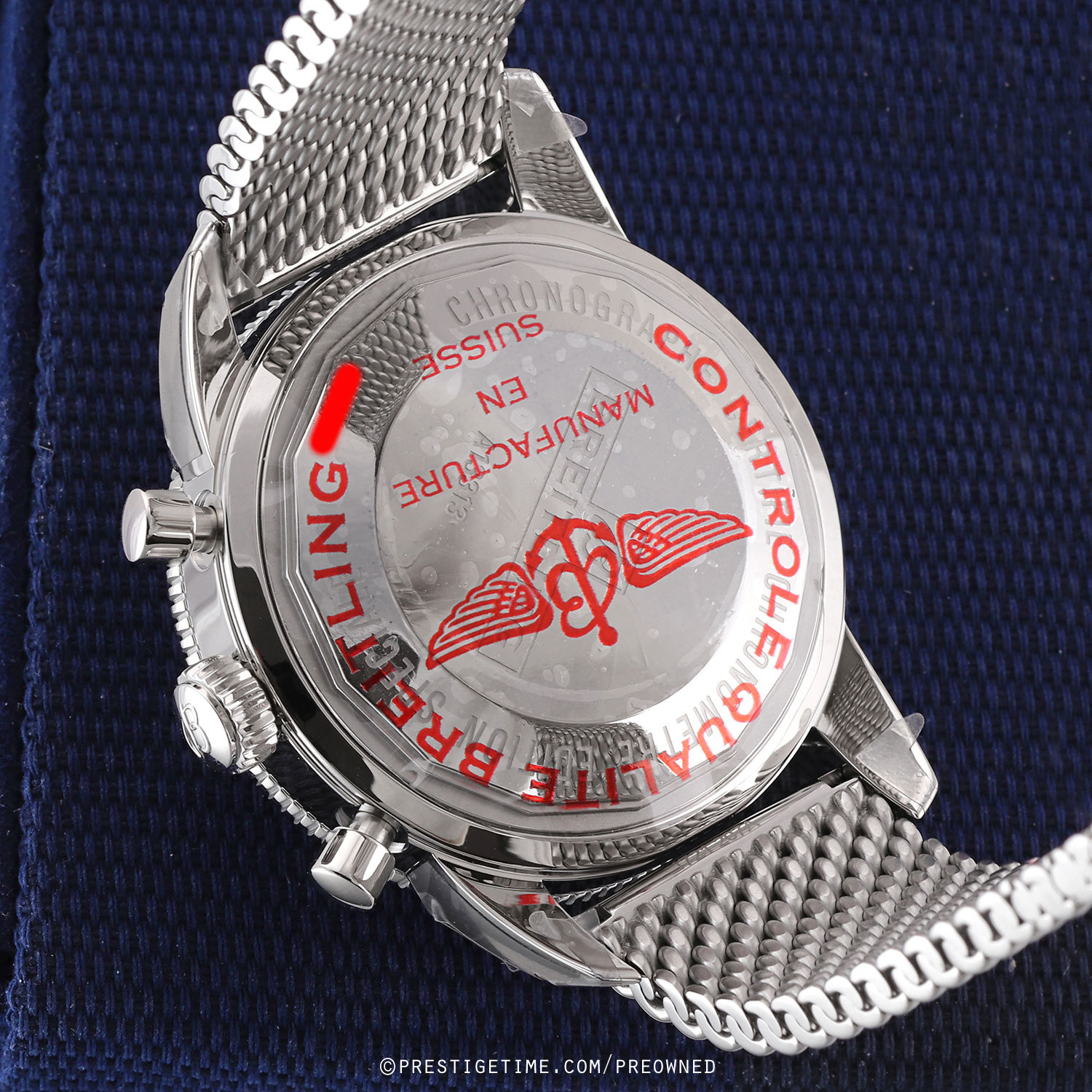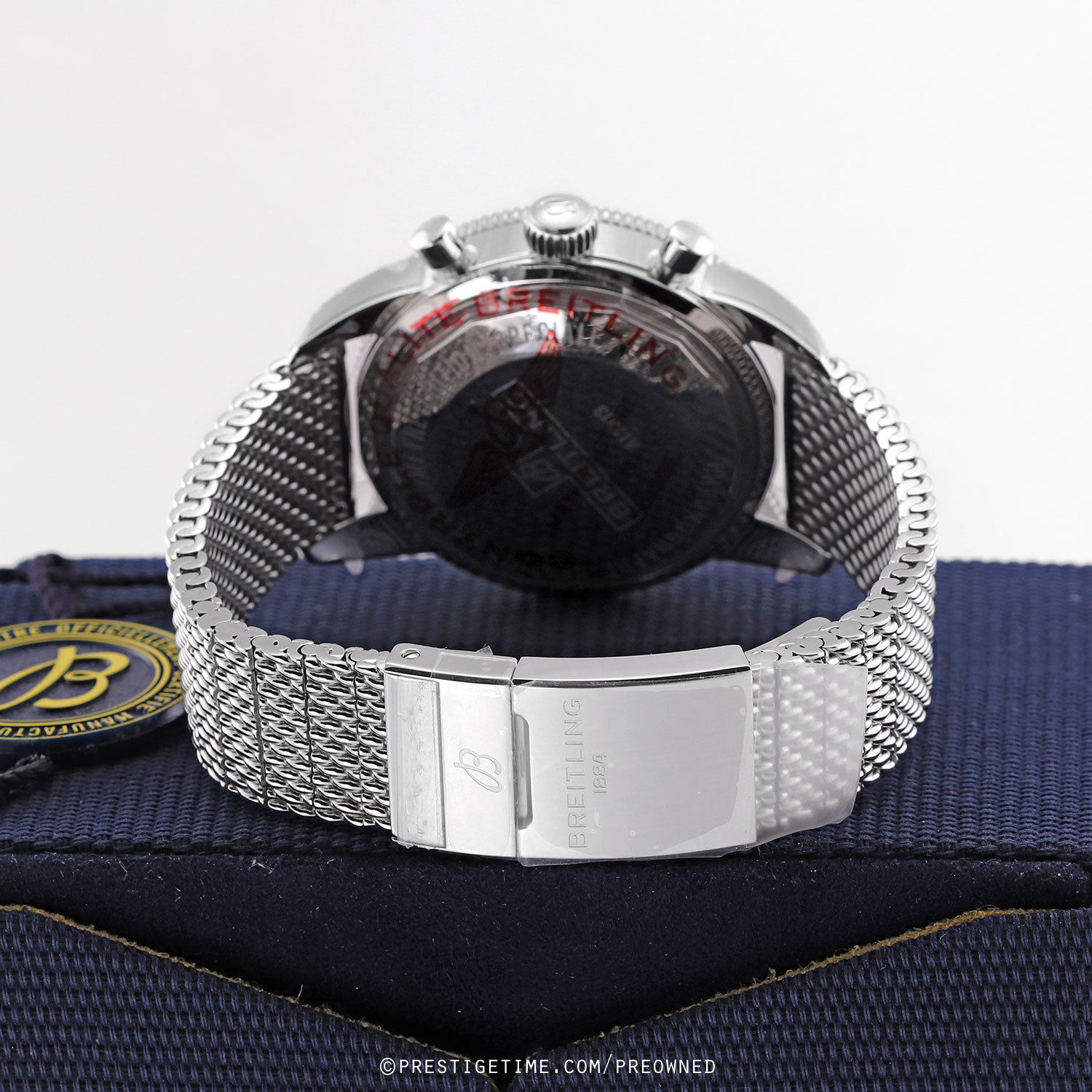 Movement: Powered by a Breitling caliber 13 (base ETA/Valjoux 7750) which beats at 28,800 vph, contains 25 jewels & has a power reserve of +/- 42 hours.