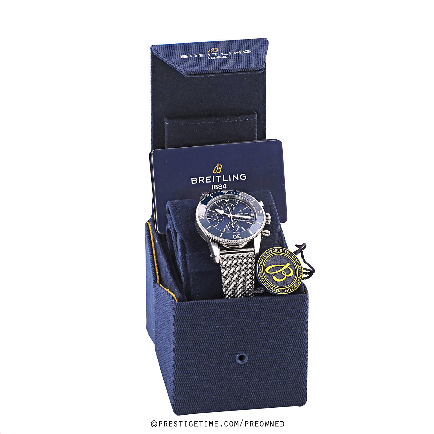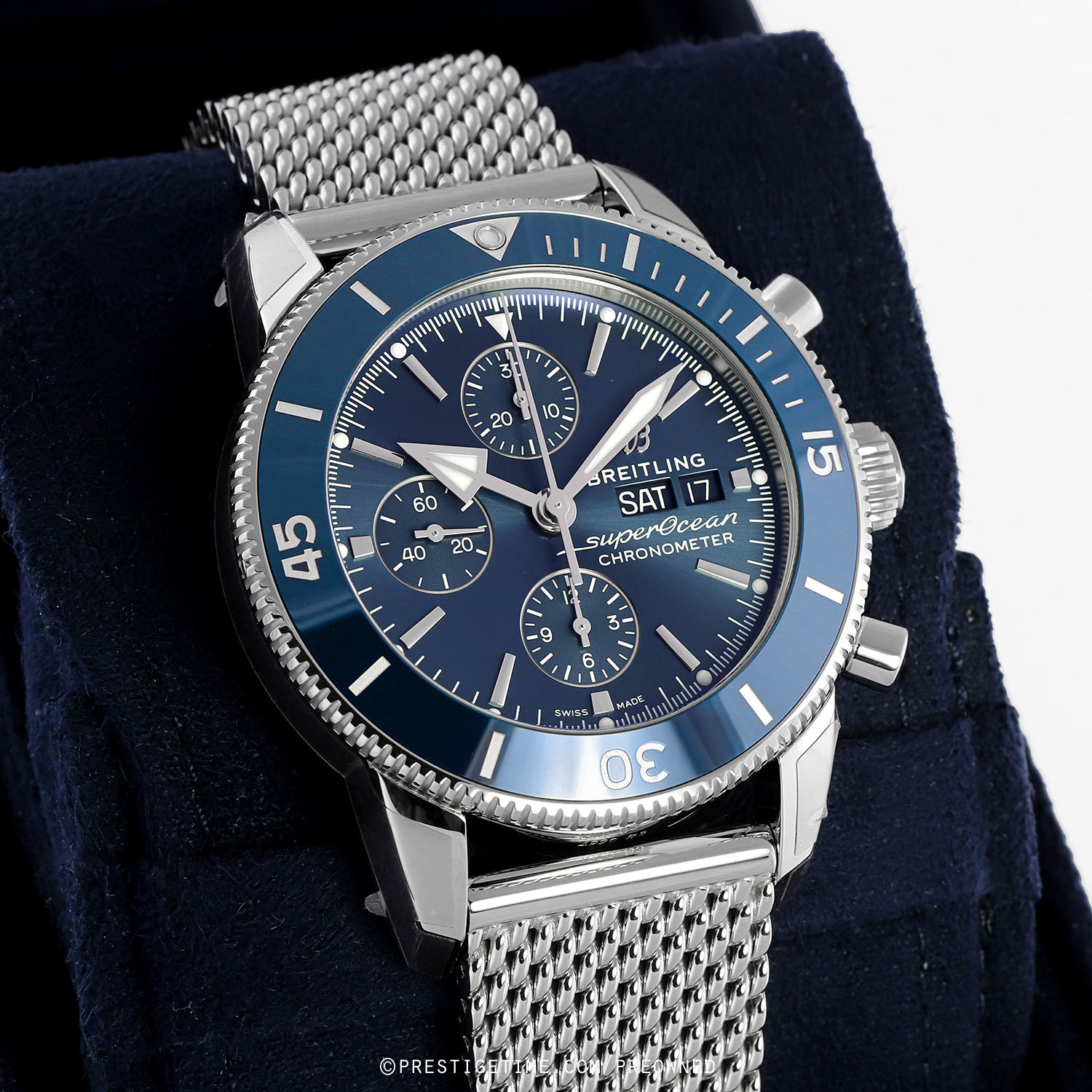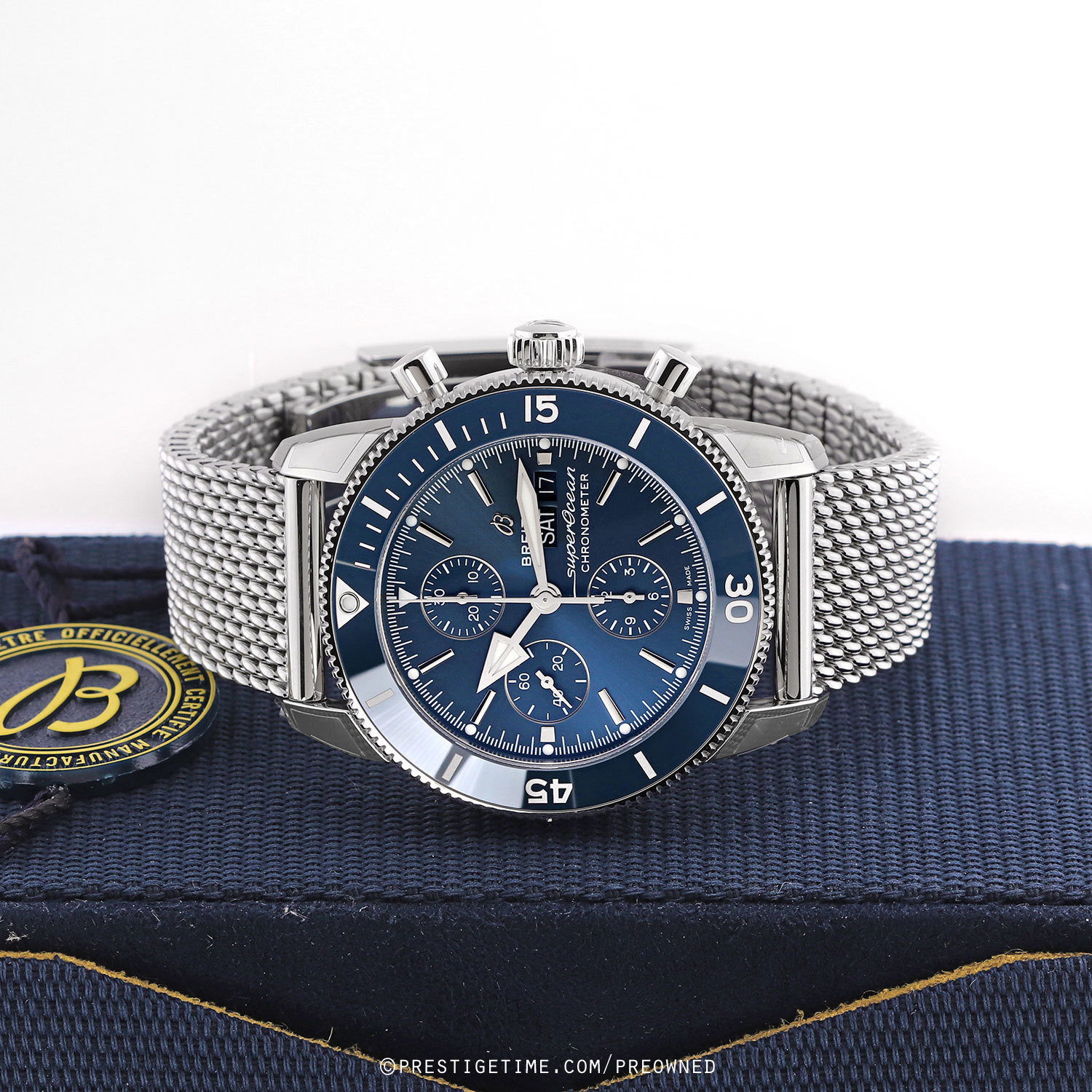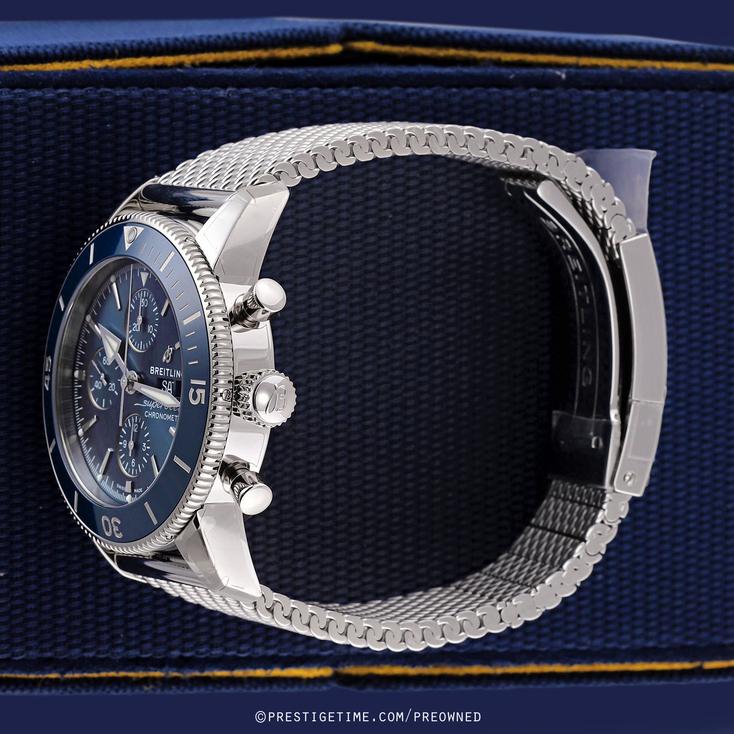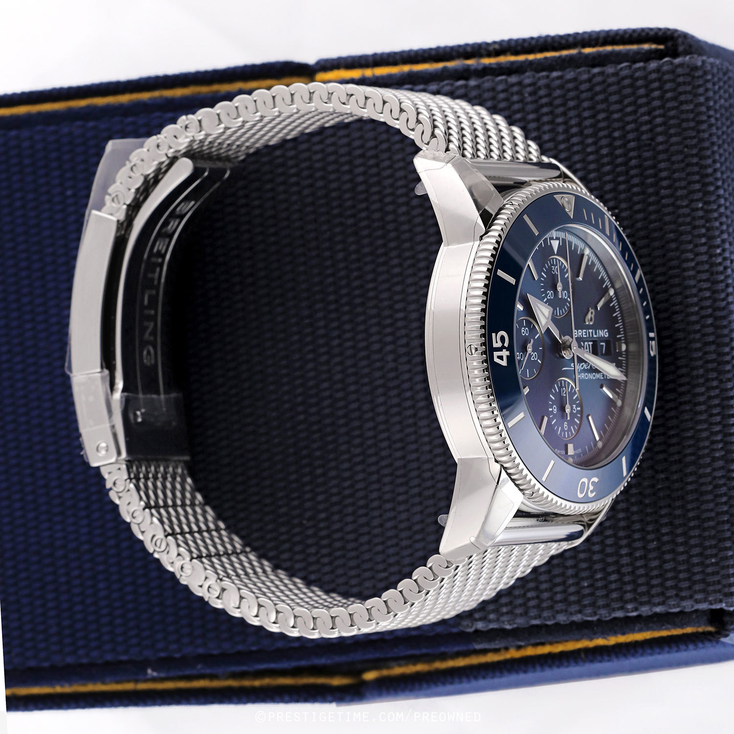 Bracelet: Fitted on its original Breitling Ocean Classic polished stainless steel mesh design bracelet with a safety folding clasp. The bracelet s fully linked & will fit up to a 8.25" wrist.