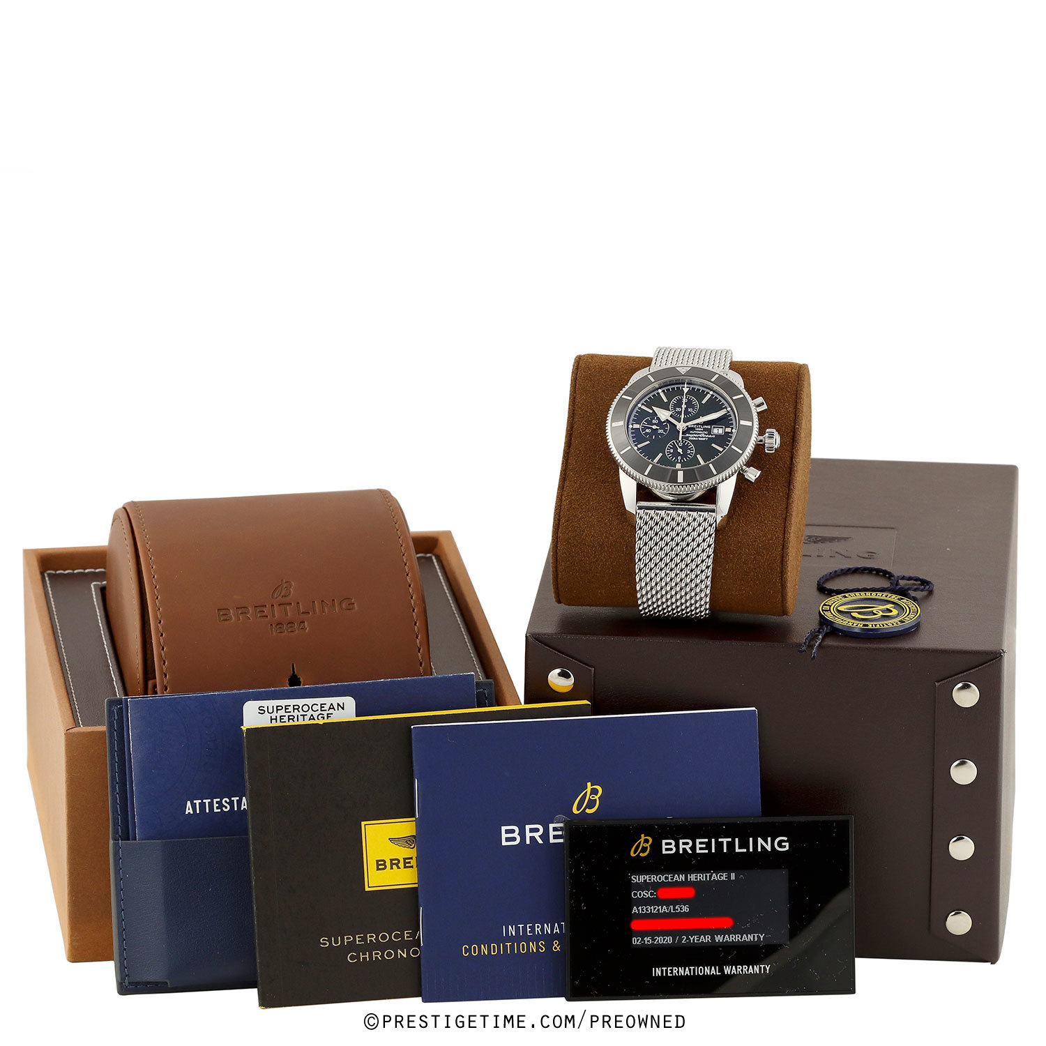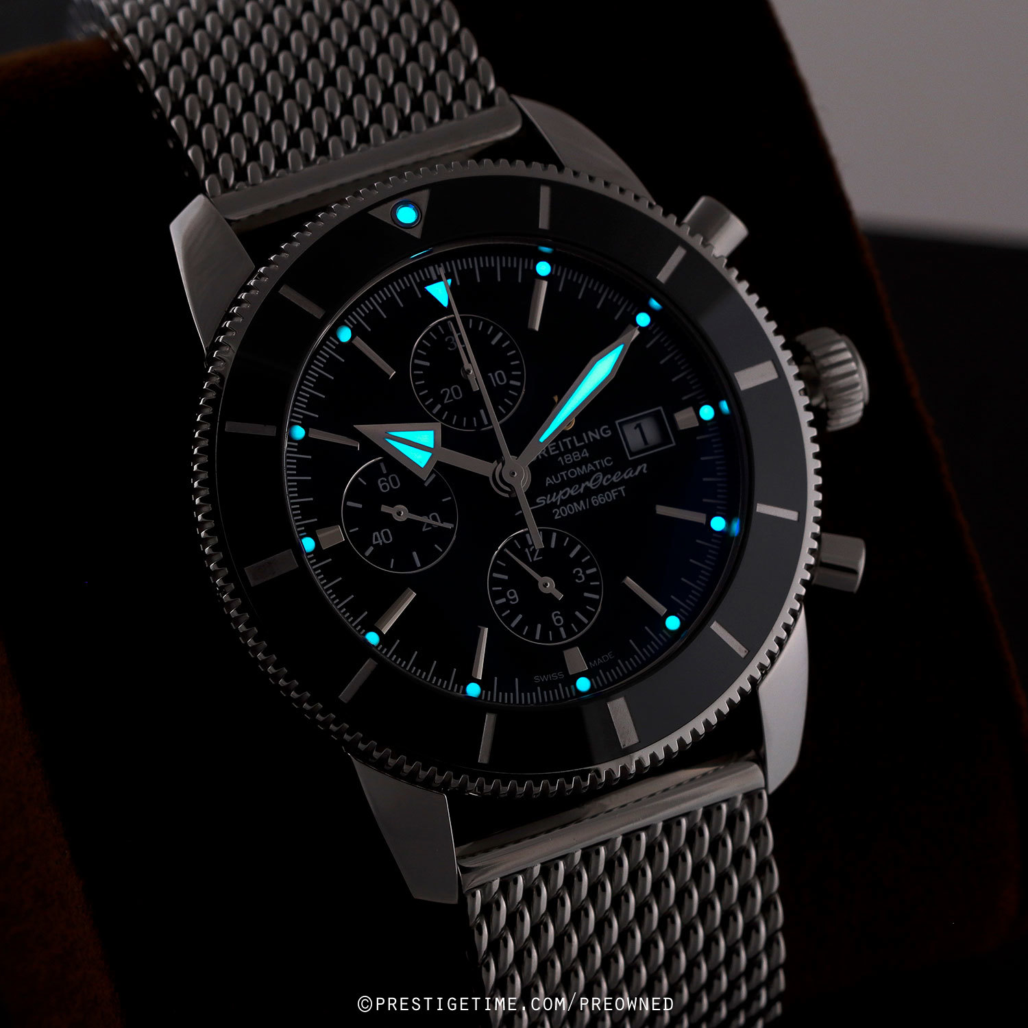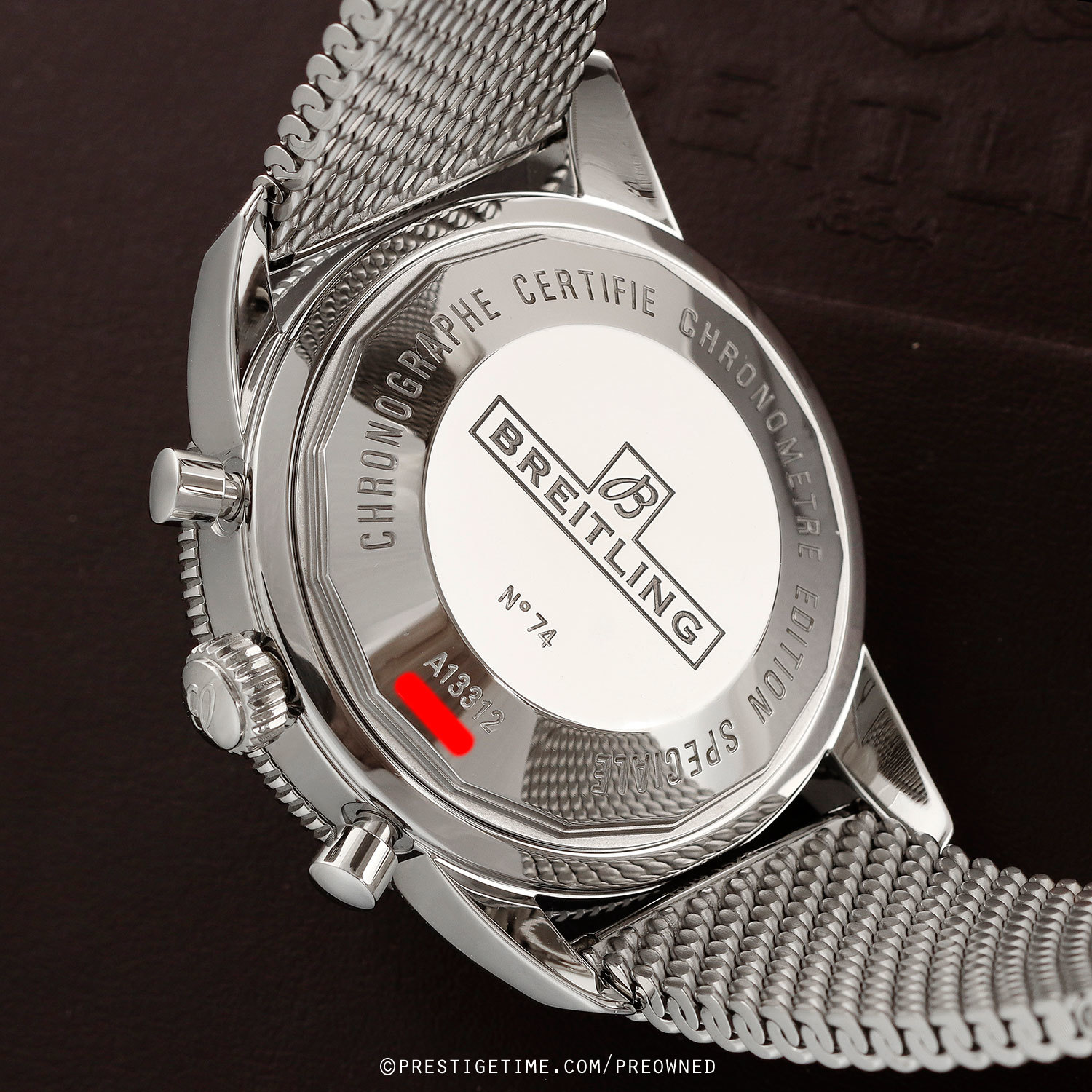 Movement: Powered by a Breitling caliber 13 (base ETA/Valjoux 7750) which beats at 28,800 vph, contains 25 jewels & has a power reserve of +/- 42 hours.