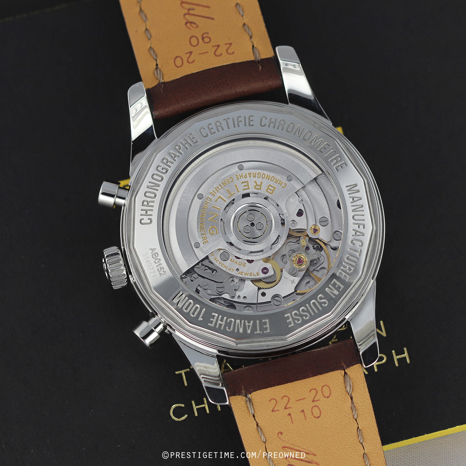 Movement: Powered by a in-house Breitling caliber 01 which beats at 28,800 vph, contains 47 jewels & has an approximate power reserve of 70+ hours.
