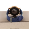 This watch is made of bronze. With wear, natural oxidization of the bronze will darken the color of the bronze. The oxidization process will develop differently & uniquely on each watch, eventually settling into a nice deep hue/patina. While there are almost no noticeable signs of wear on this watch, oxidization of the bronze has begun - both on the watch & on the tang buckle, hence there is some discoloration to the bronze. The oxidization of the bronze will continue to develop into a nice deep hue/patina.