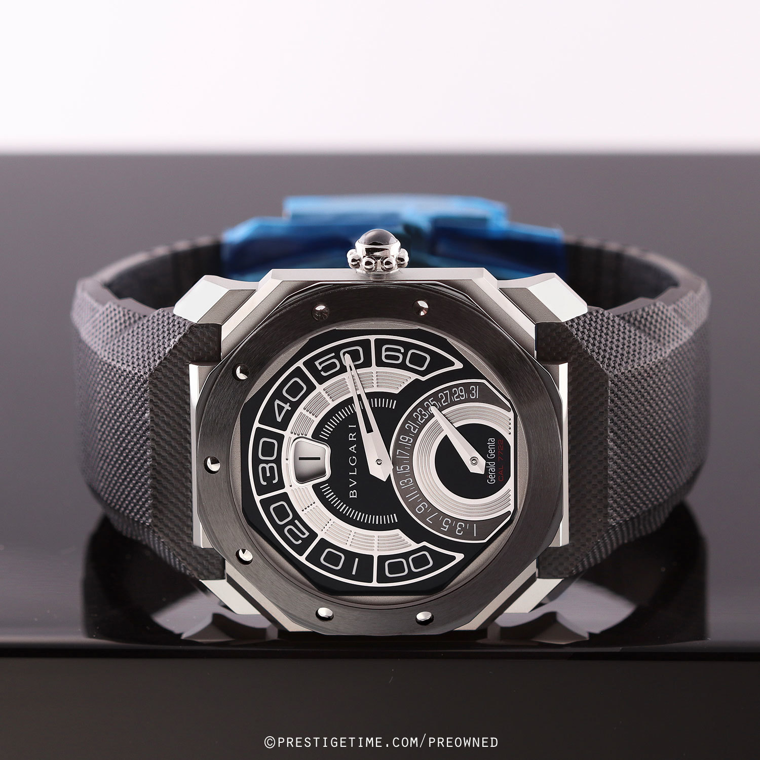 Movement: Powered by a Bulgari (Gerald Genta) caliber GG 7722, beats at 28,800 vph, contains 26 jewels & has a power reserve of +/- 45 hours.