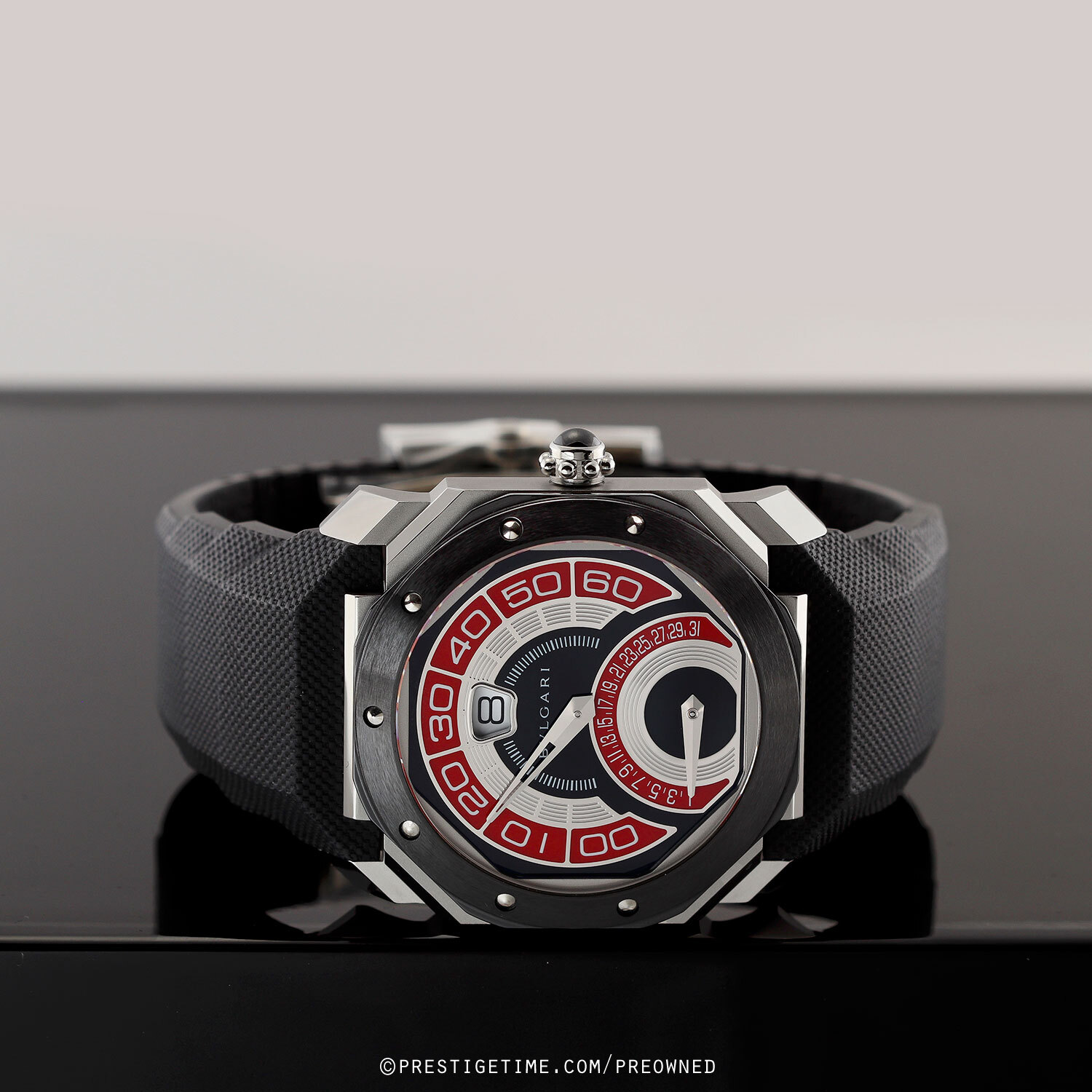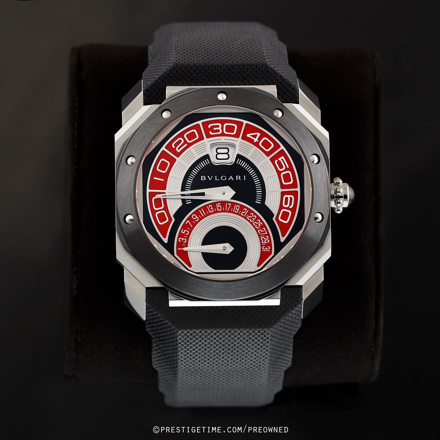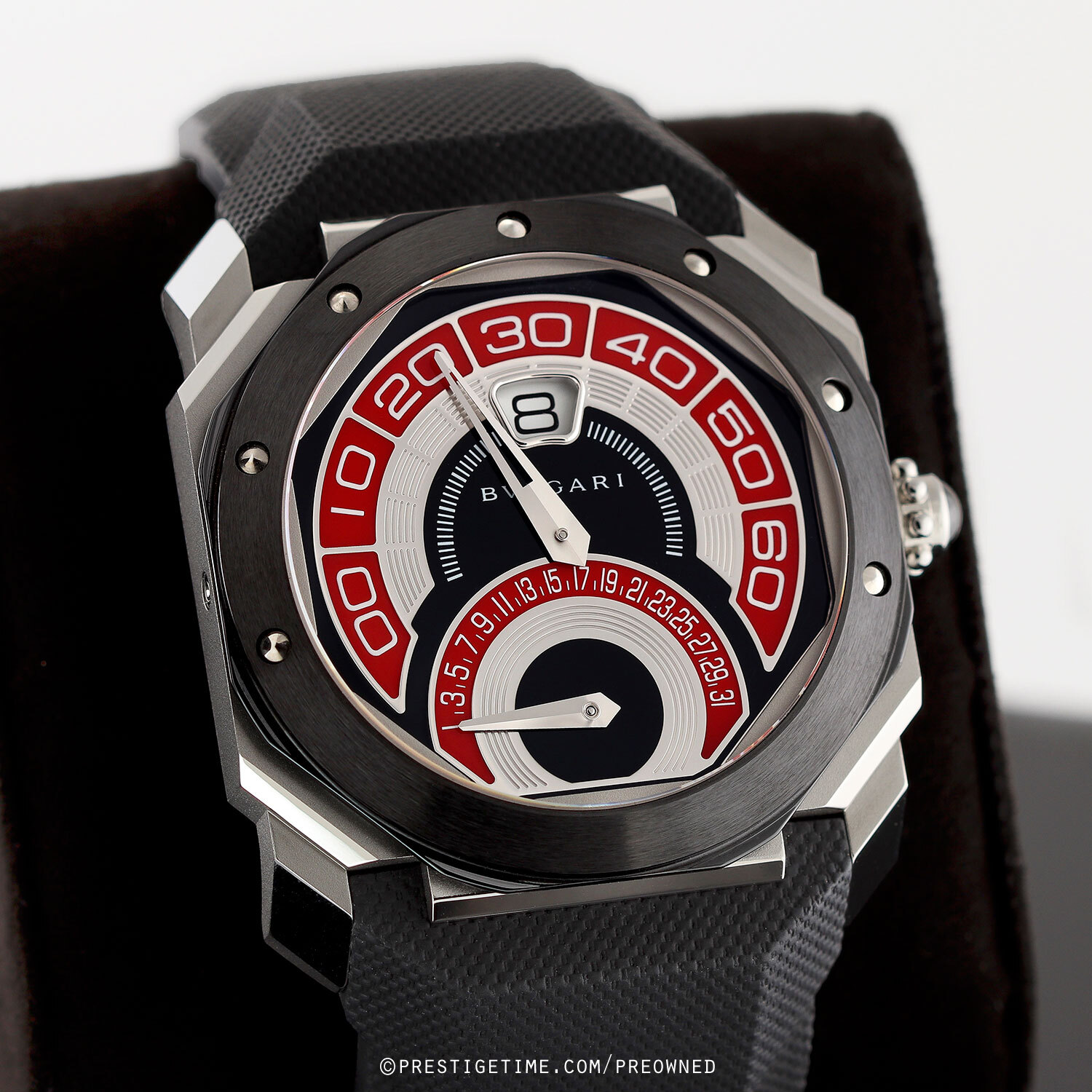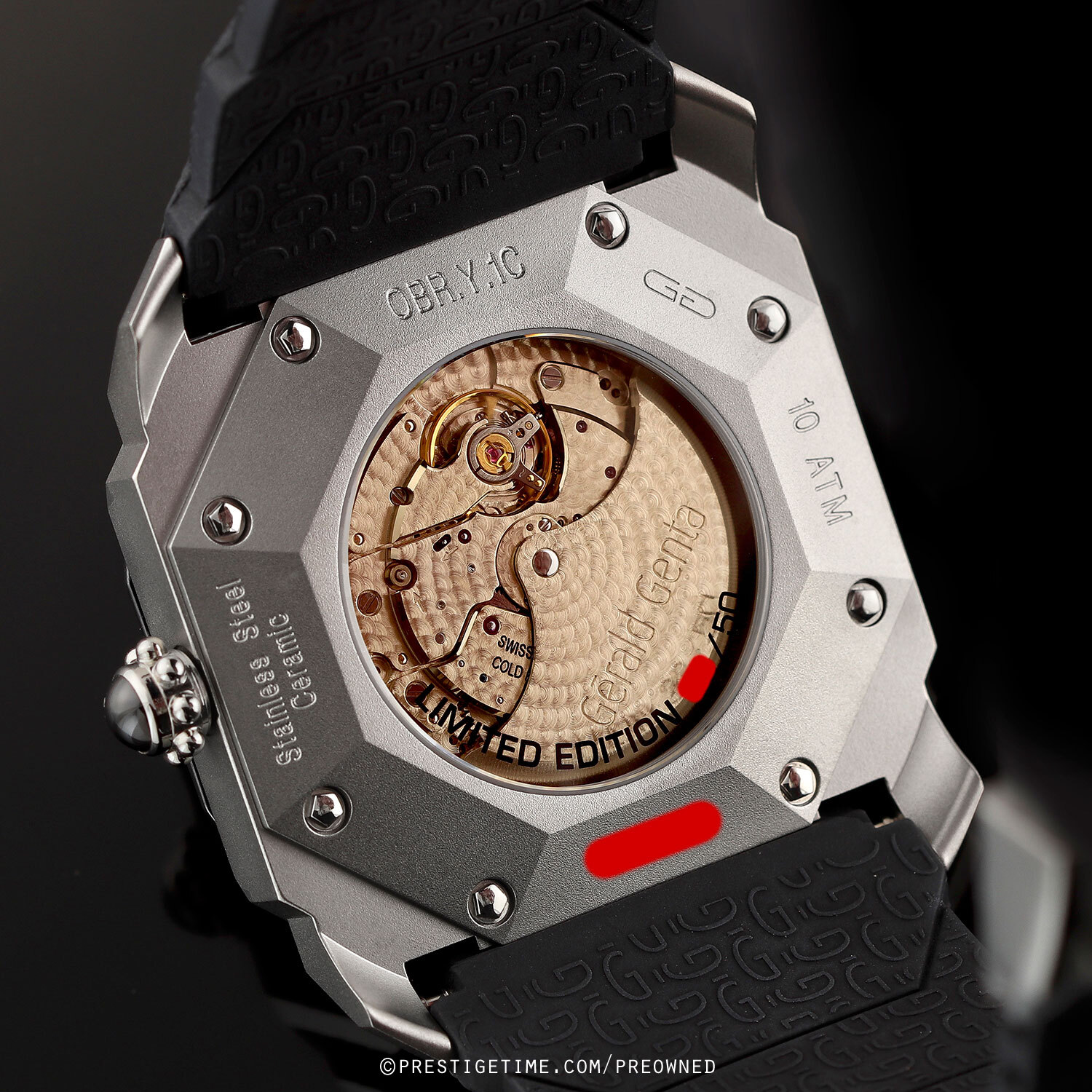 Movement: Powered by a Bulgari (Gerald Genta) caliber GG 7722, beats at 28,800 vph, contains 26 jewels & has a power reserve of +/- 45 hours.