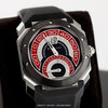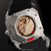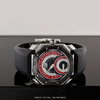 Case: Matte & polished stainless steel case. Black ceramic bezel ring. Crown set with polished black onyx cabochon. Black enameled dial with red enameled sub-dial accents. Polished hands.