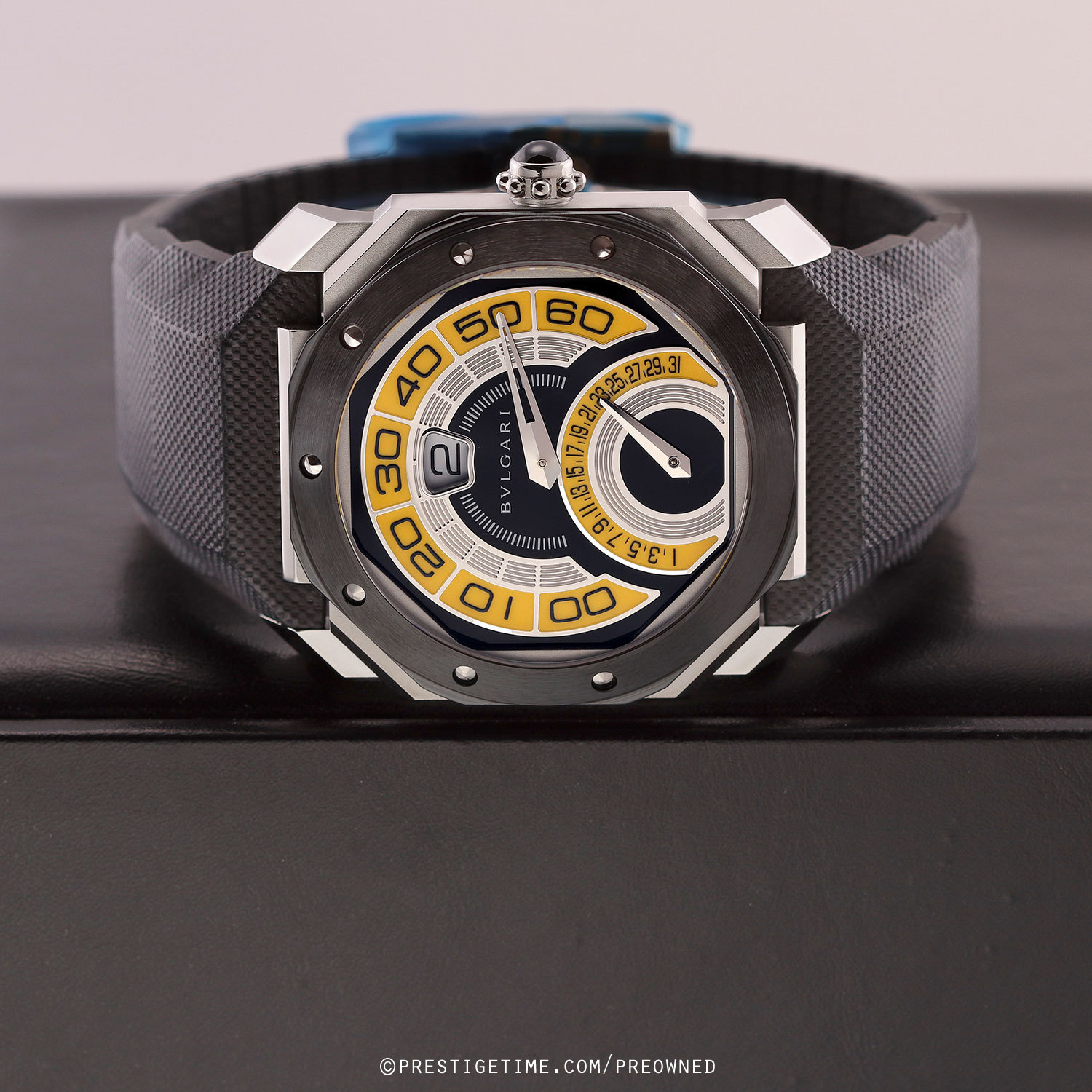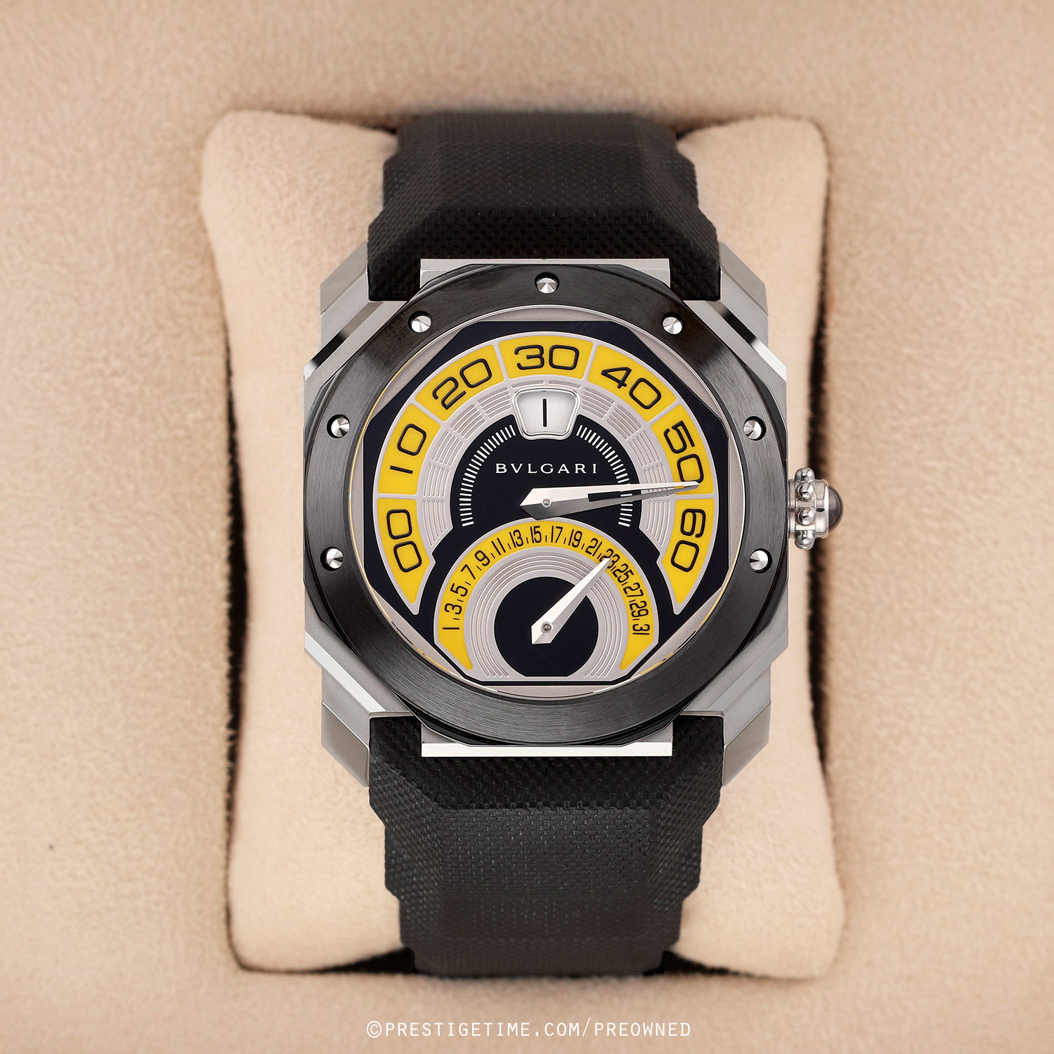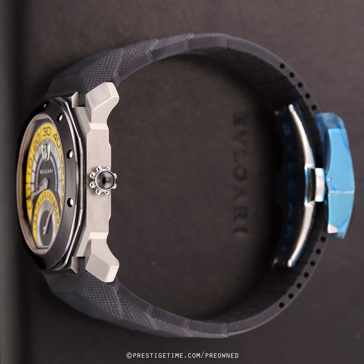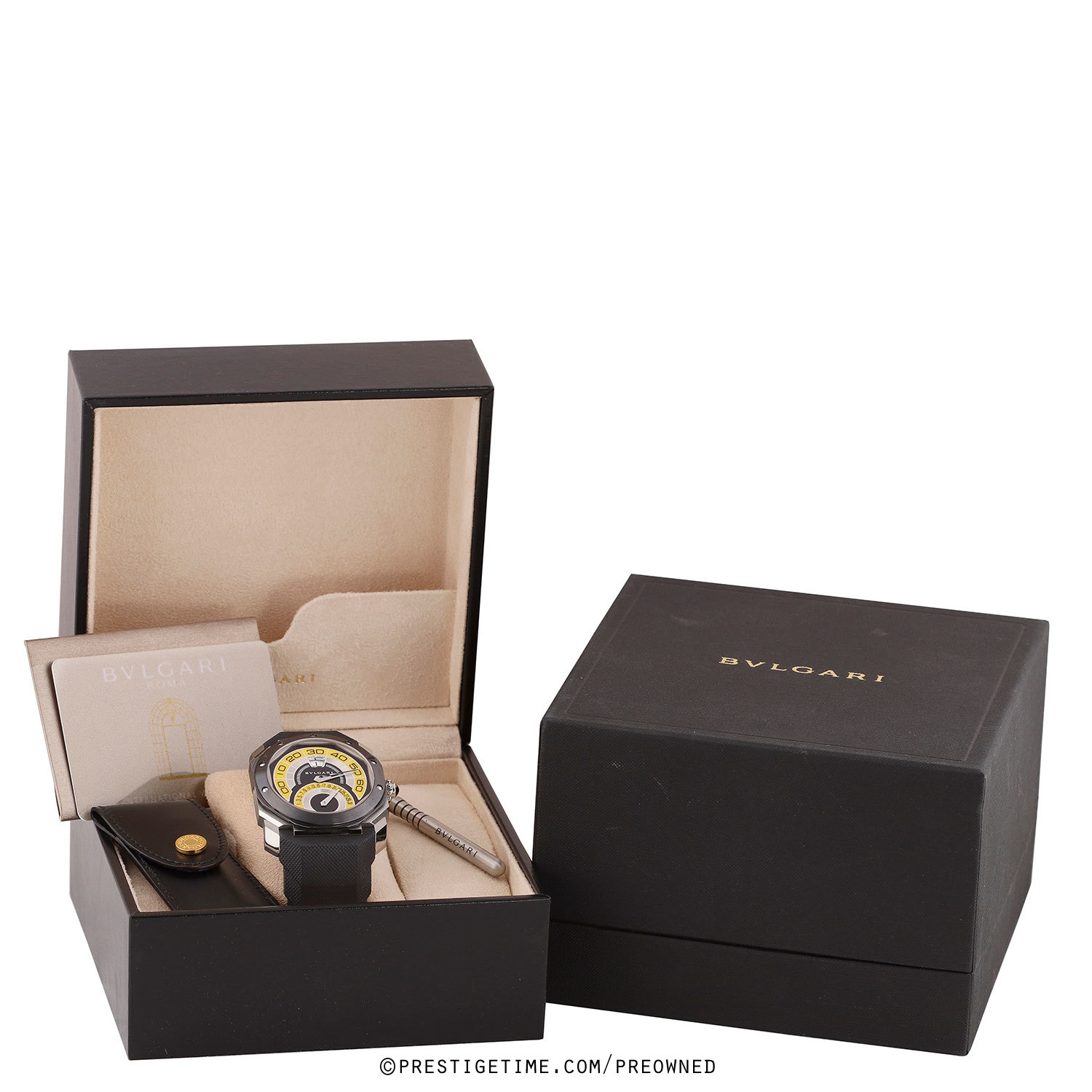 Condition: This watch is unworn in near-perfect condition. Some very light shop-wear is present, all in all we would consider this watch in 99% overall condition. Delivered in an original Bulgari box with its matching QR code registered warranty card.