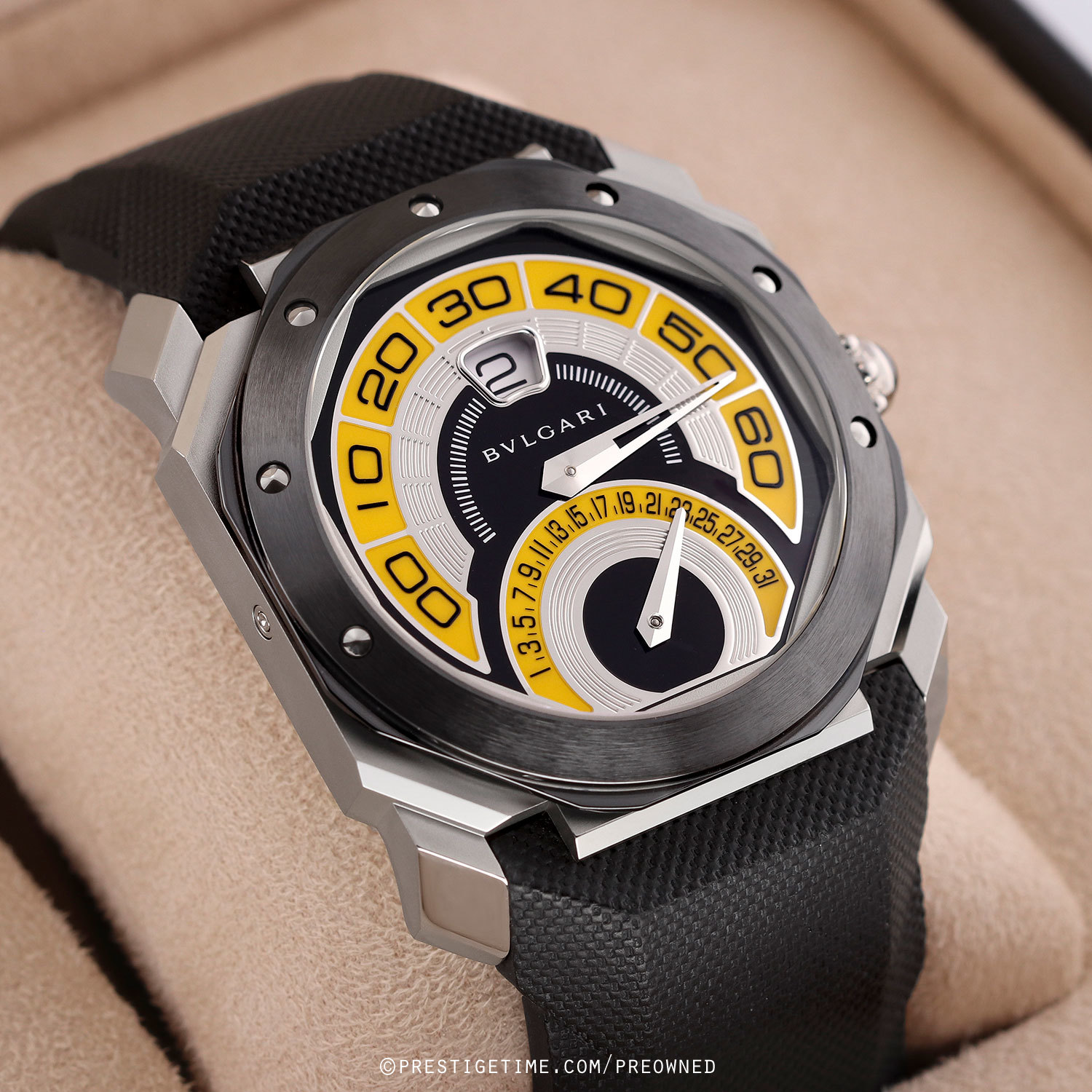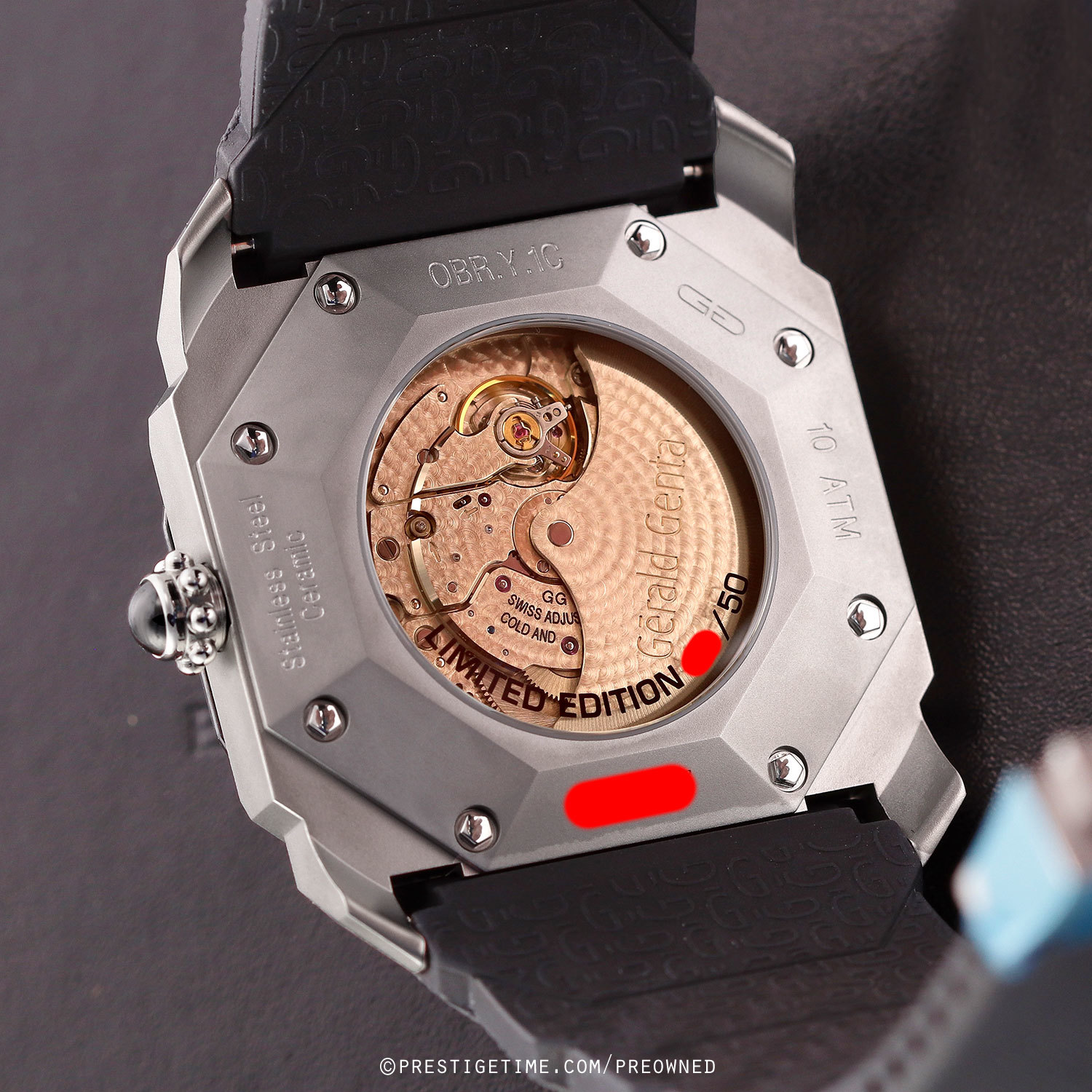Movement: Powered by a Bulgari (Gerald Genta) caliber GG 7722, beats at 28,800 vph, contains 26 jewels & has a power reserve of +/- 45 hours.