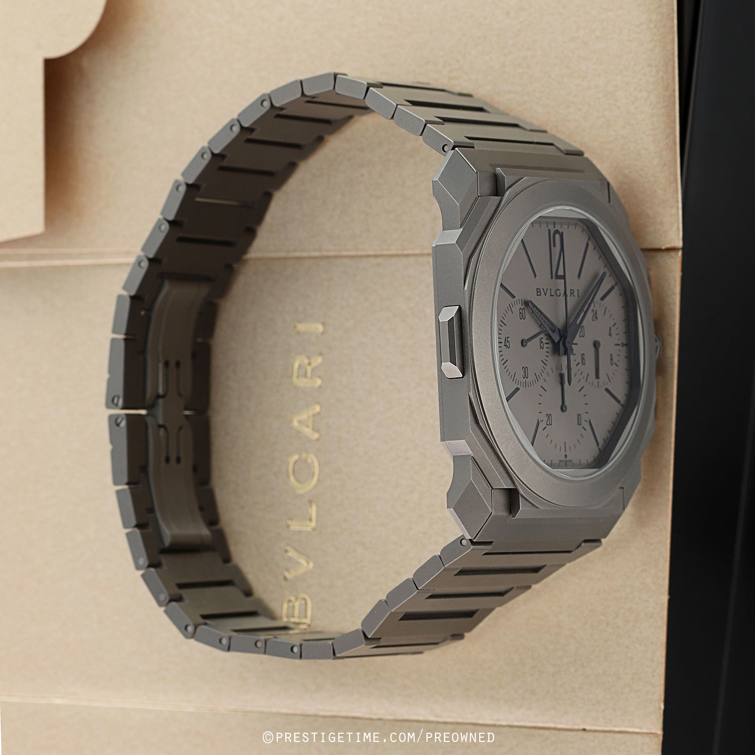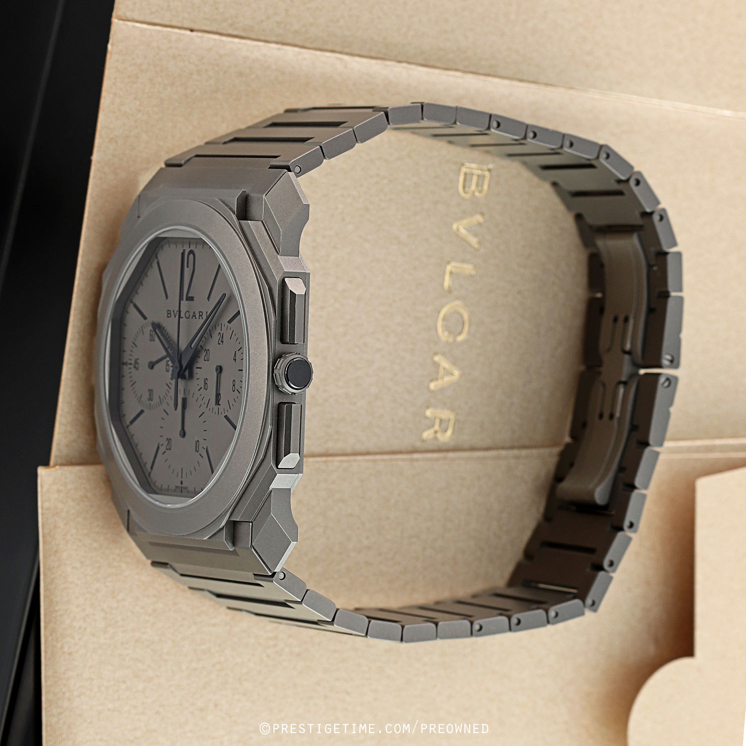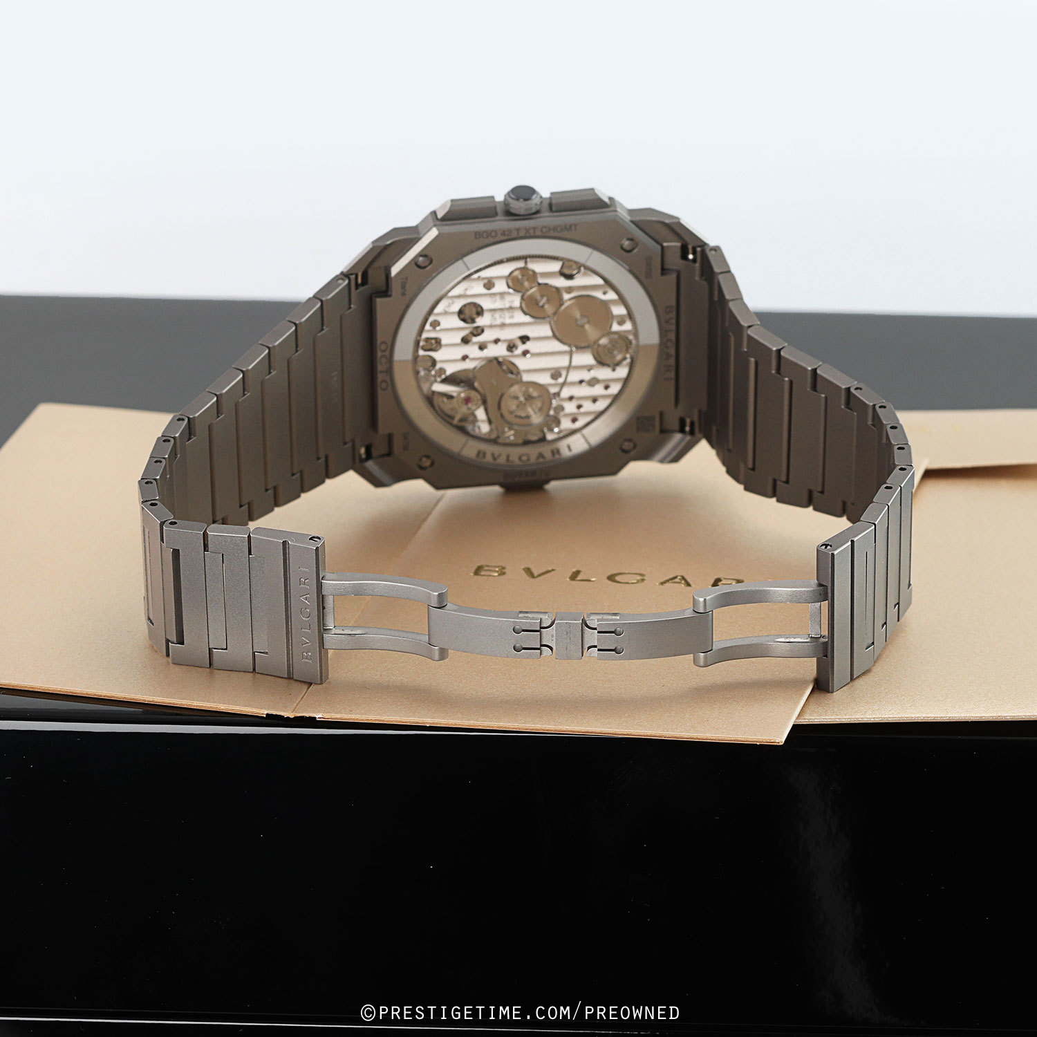 Bracelet: Fitted on its original sandblasted titanium bracelet with a bi-wing hidden folding clasp. The bracelet is fully linked & will fit up to a 7-7/8" wrist.