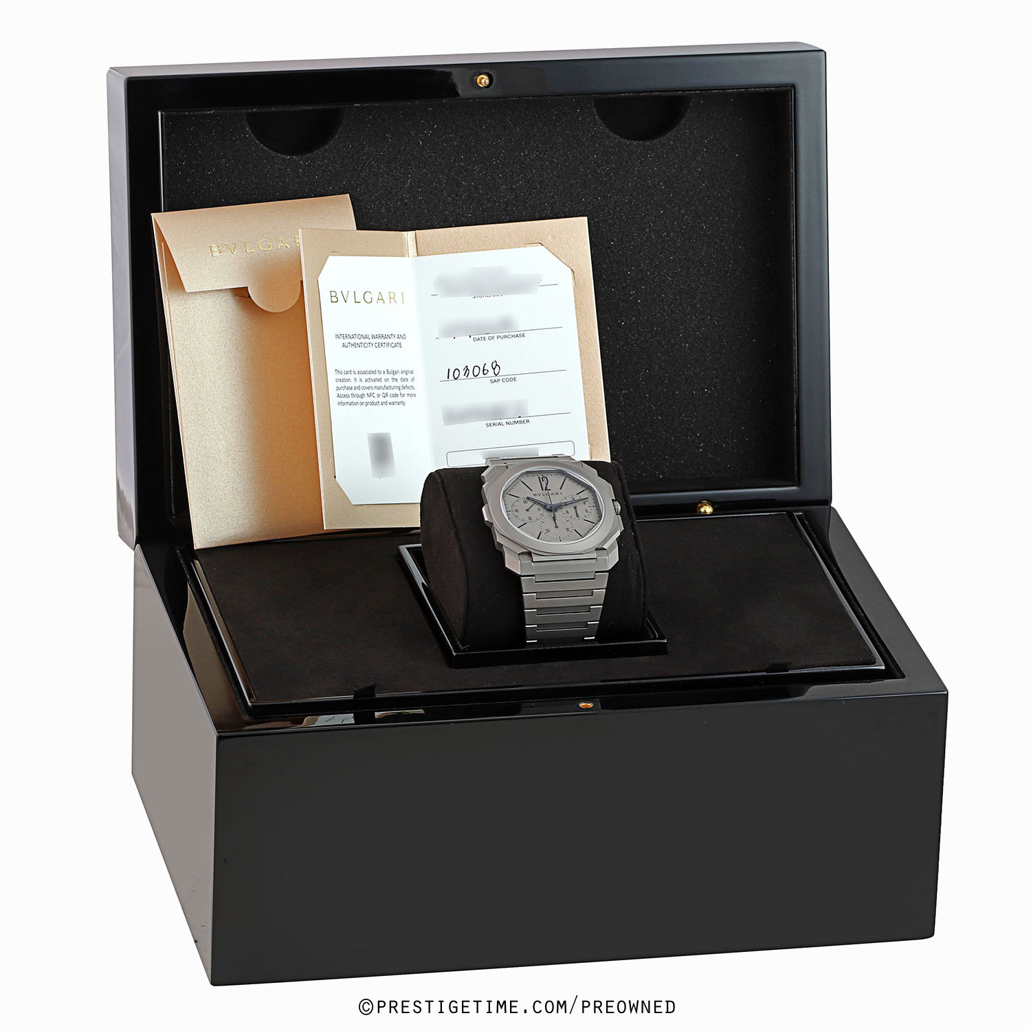 Movement: Powered by a Bulgari in-house caliber BVL 318, beats at 28,800 vph (4Hz), contains 37 jewels & has a power reserve of +/- 55 hours. The movement is only 3.3mm thick & features a peripheral rotor in solid platinum.