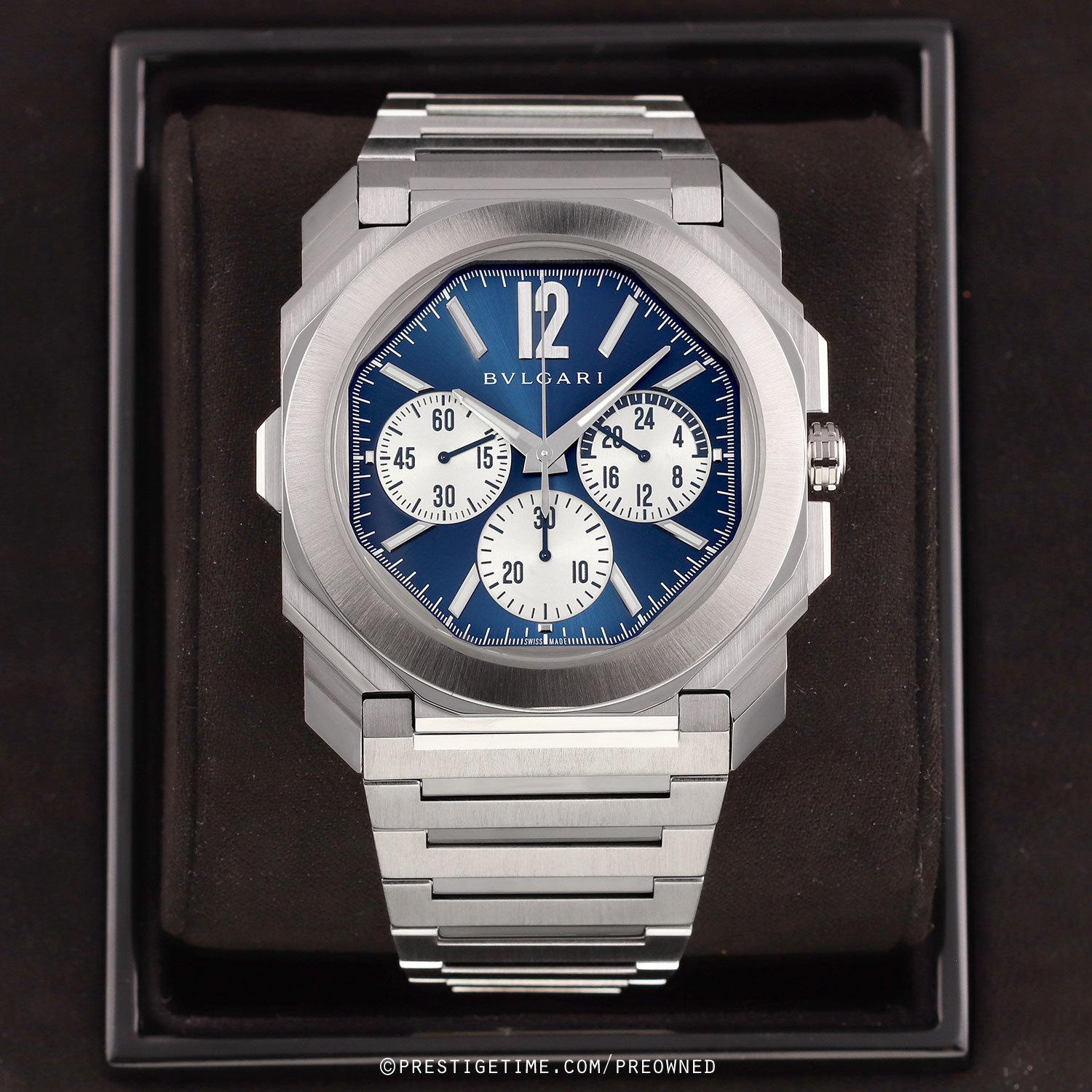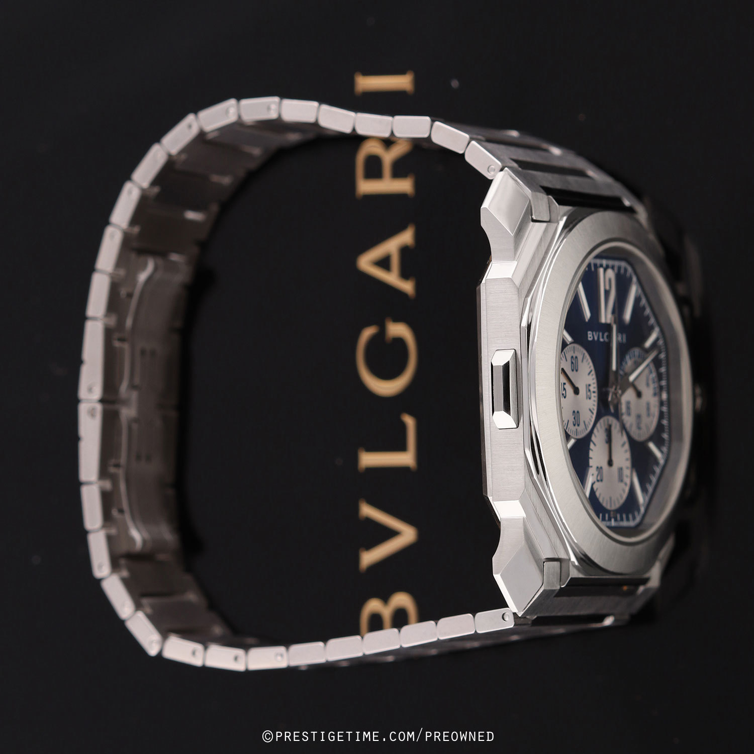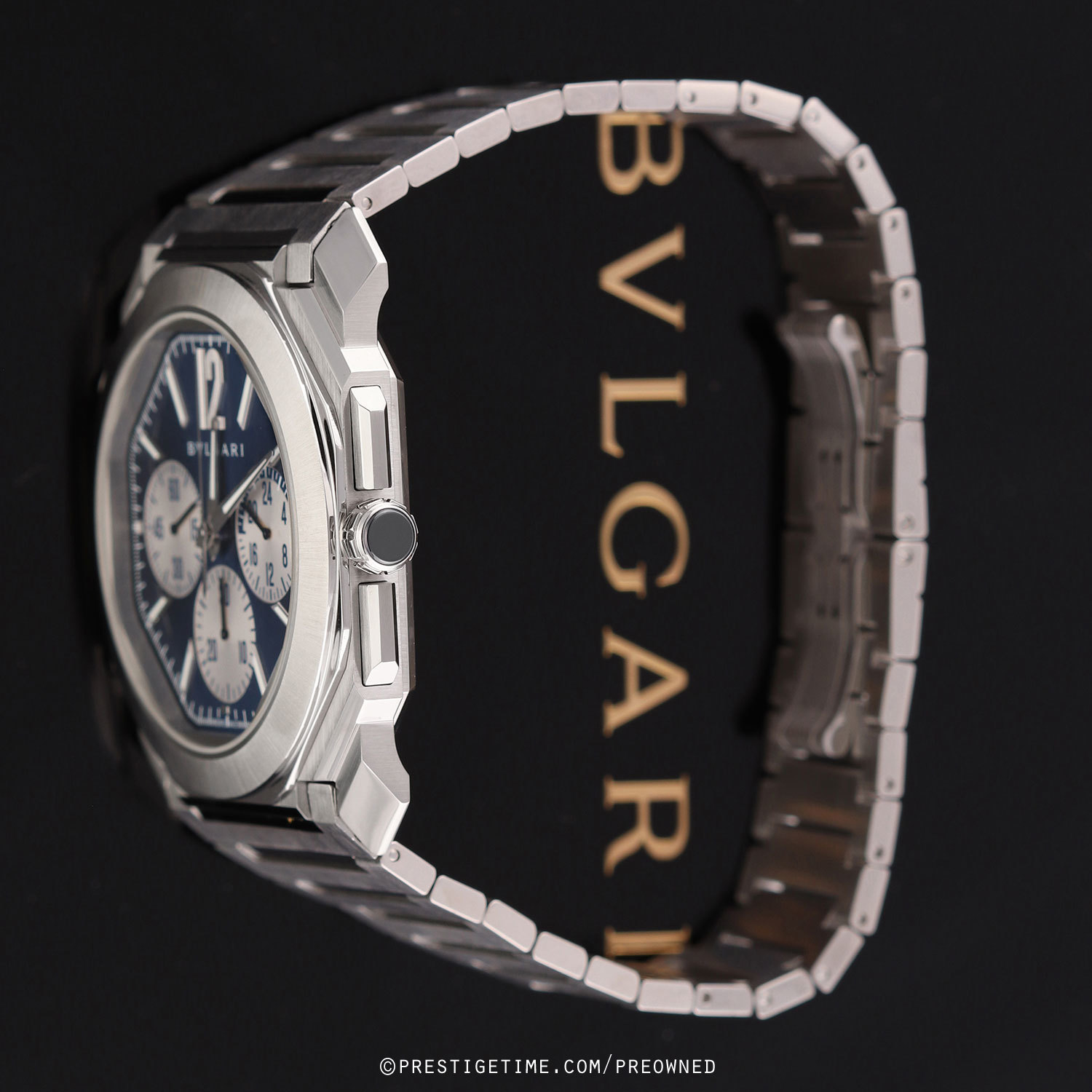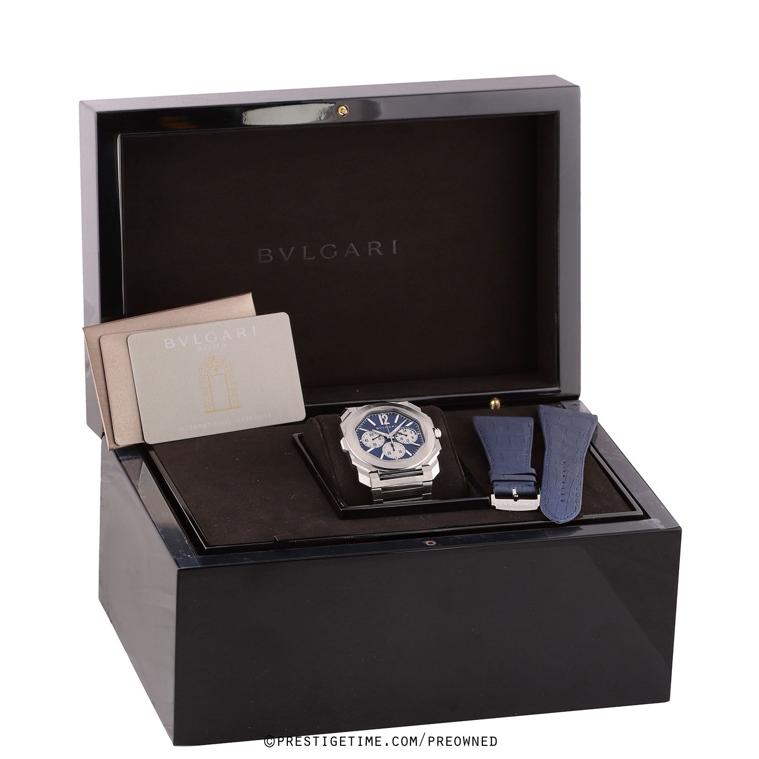 - delivered with an additional Bulgari original blue alligator leather strap with a stainless steel tang buckle. The strap is brand new & unworn with its full wear lifespan remaining.