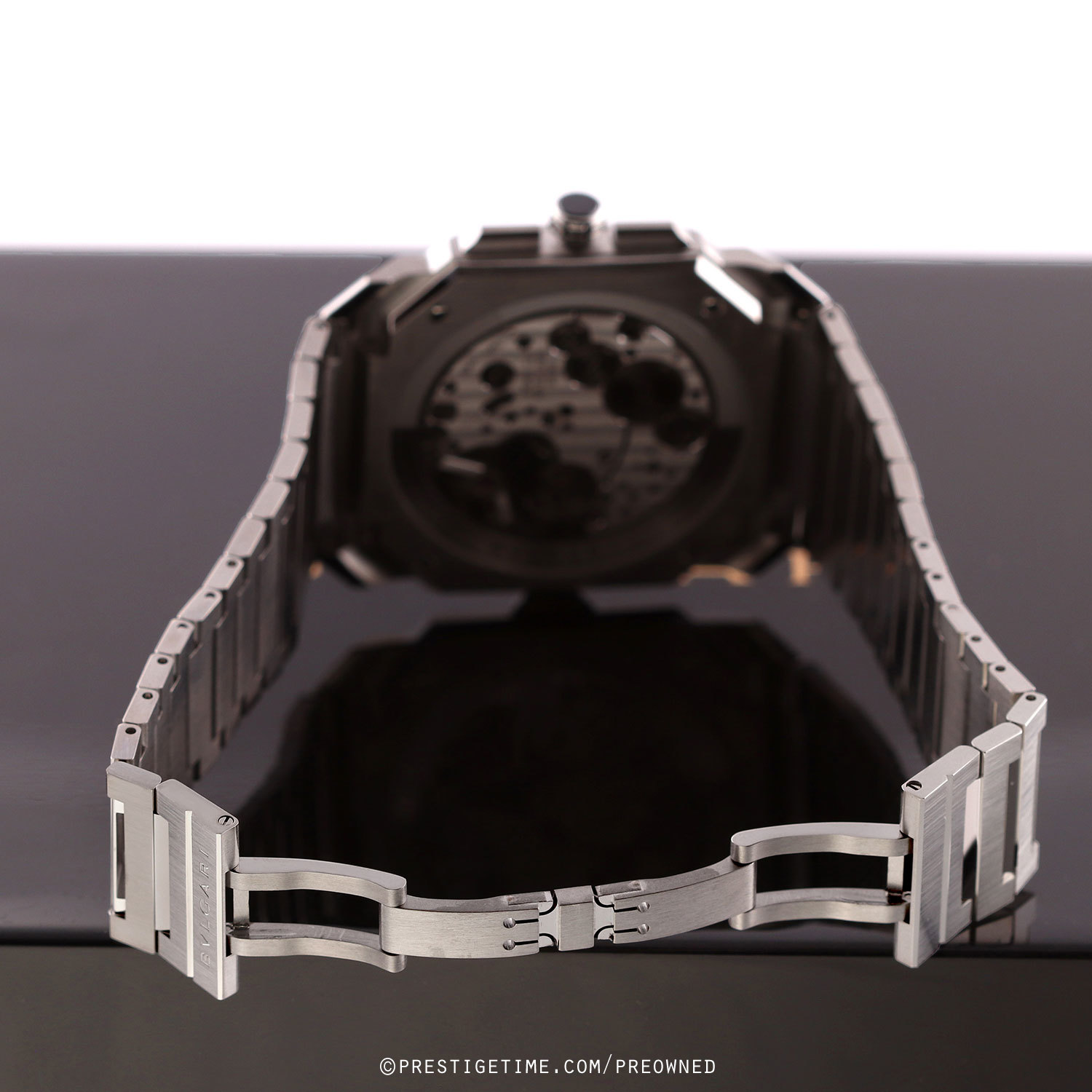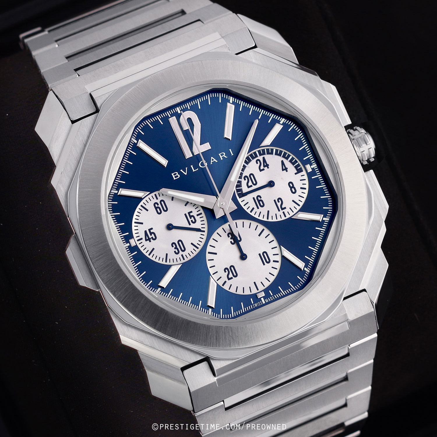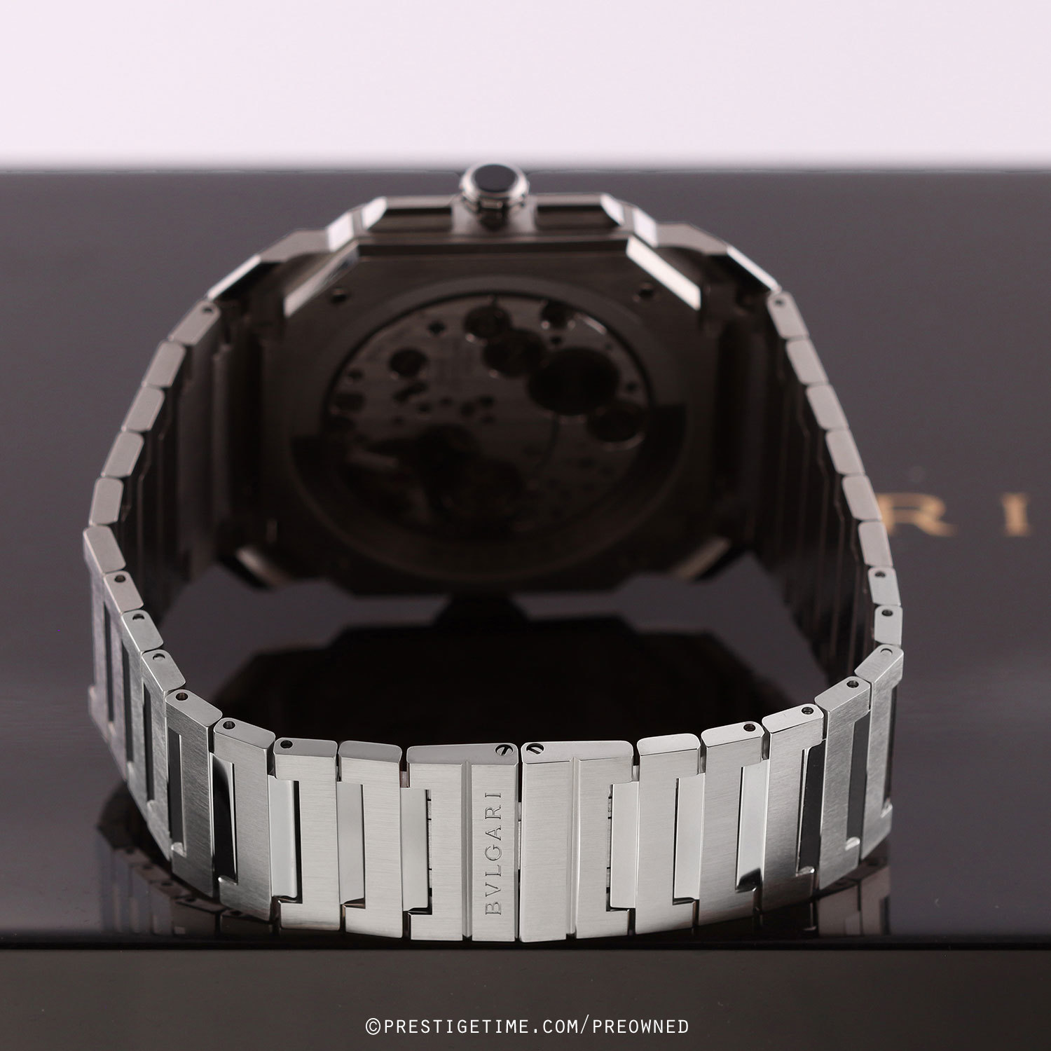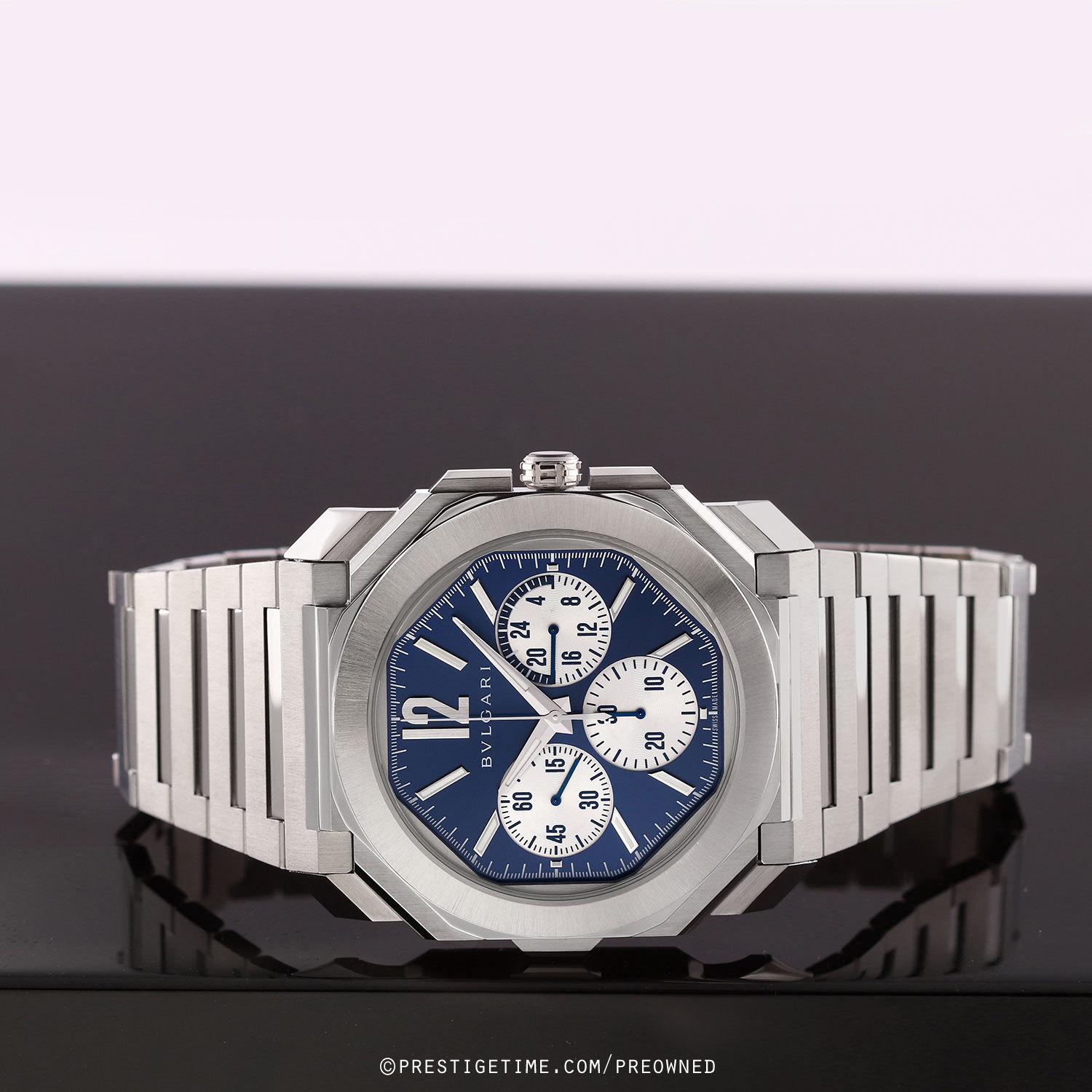 - delivered with an additional Bulgari original blue alligator leather strap with a stainless steel tang buckle. The strap is brand new & unworn with its full wear lifespan remaining.