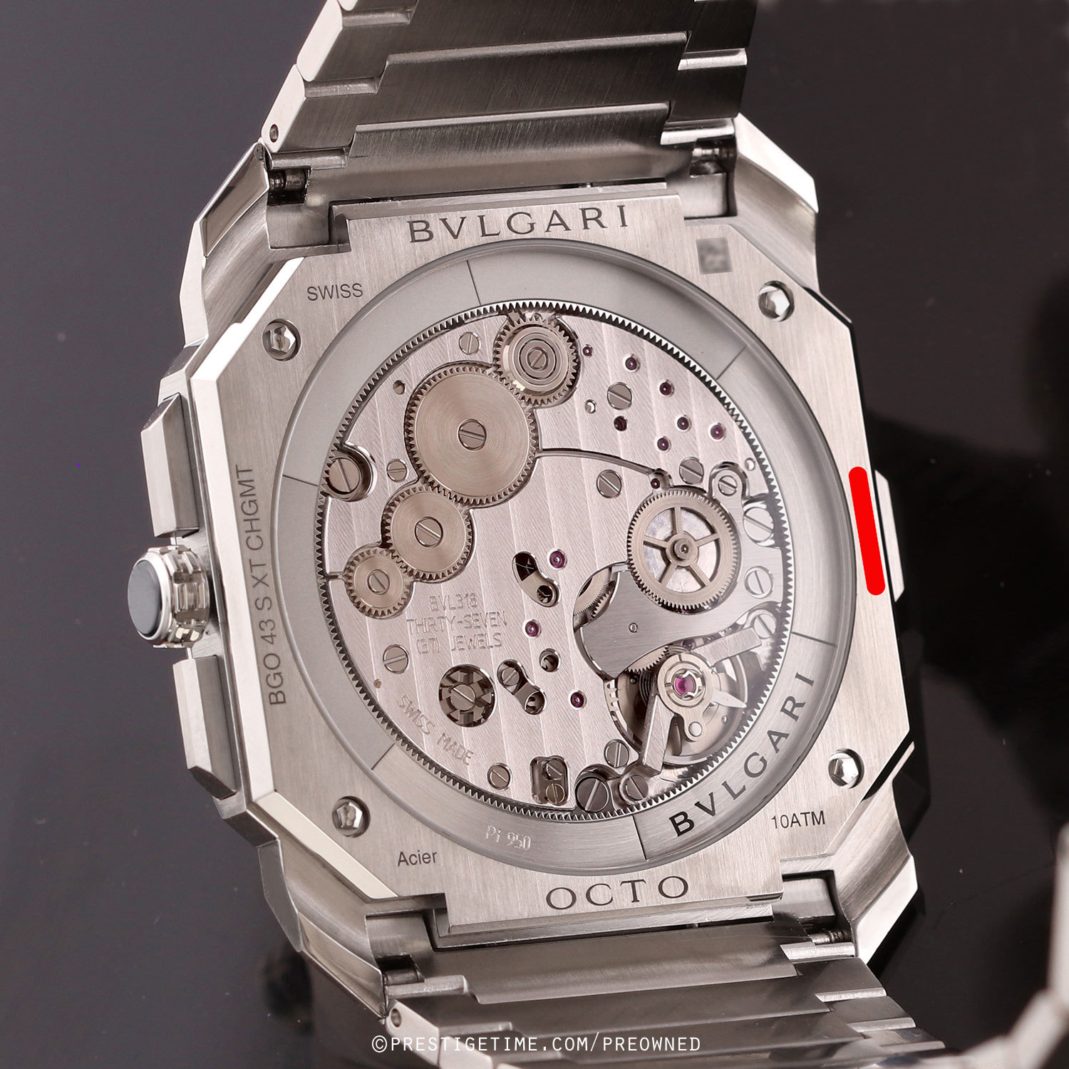 Movement: Powered by a Bulgari in-house caliber BVL 318, beats at 28,800 vph (4Hz), contains 37 jewels & has a power reserve of +/- 55 hours. The movement is only 3.3mm thick & features a peripheral rotor in solid platinum.