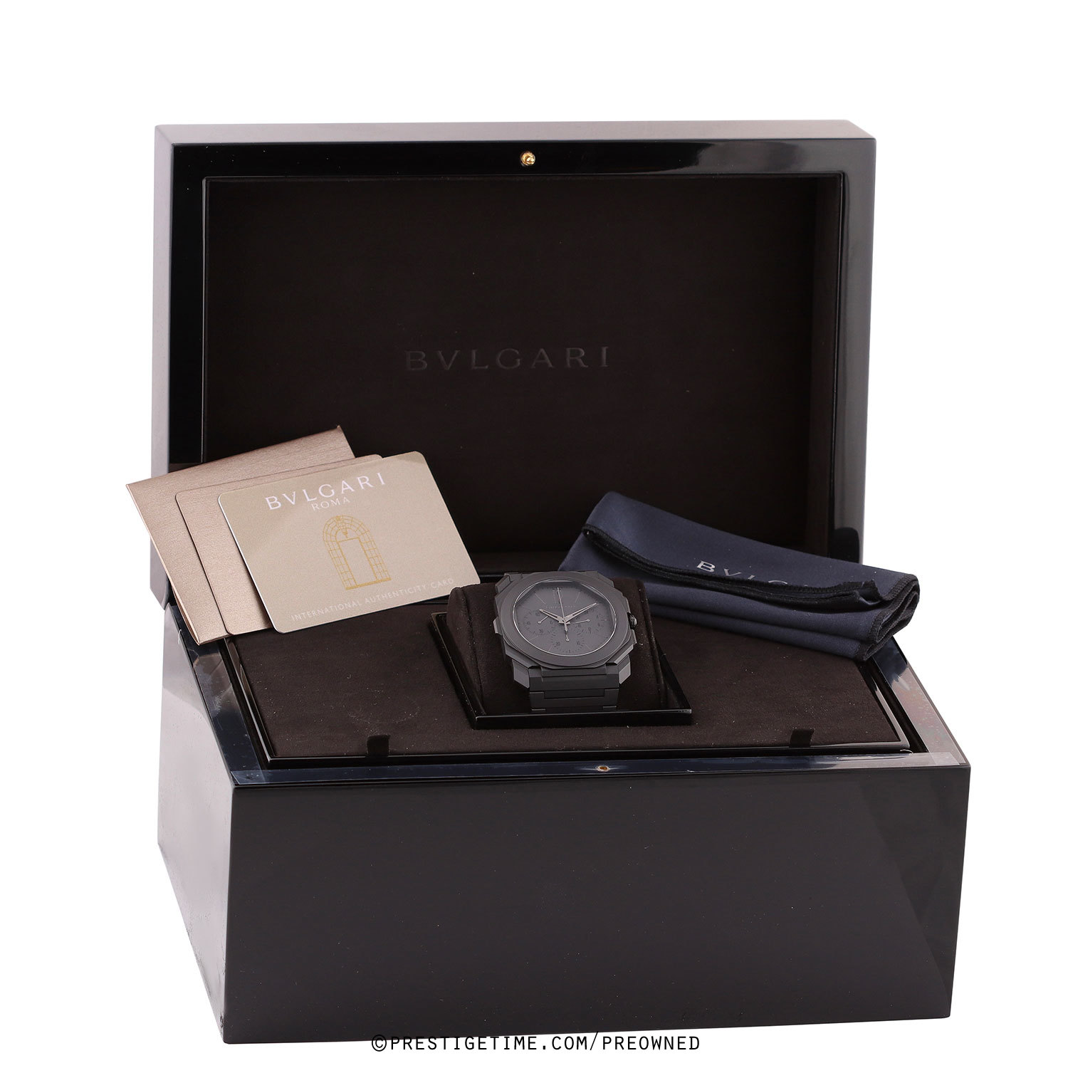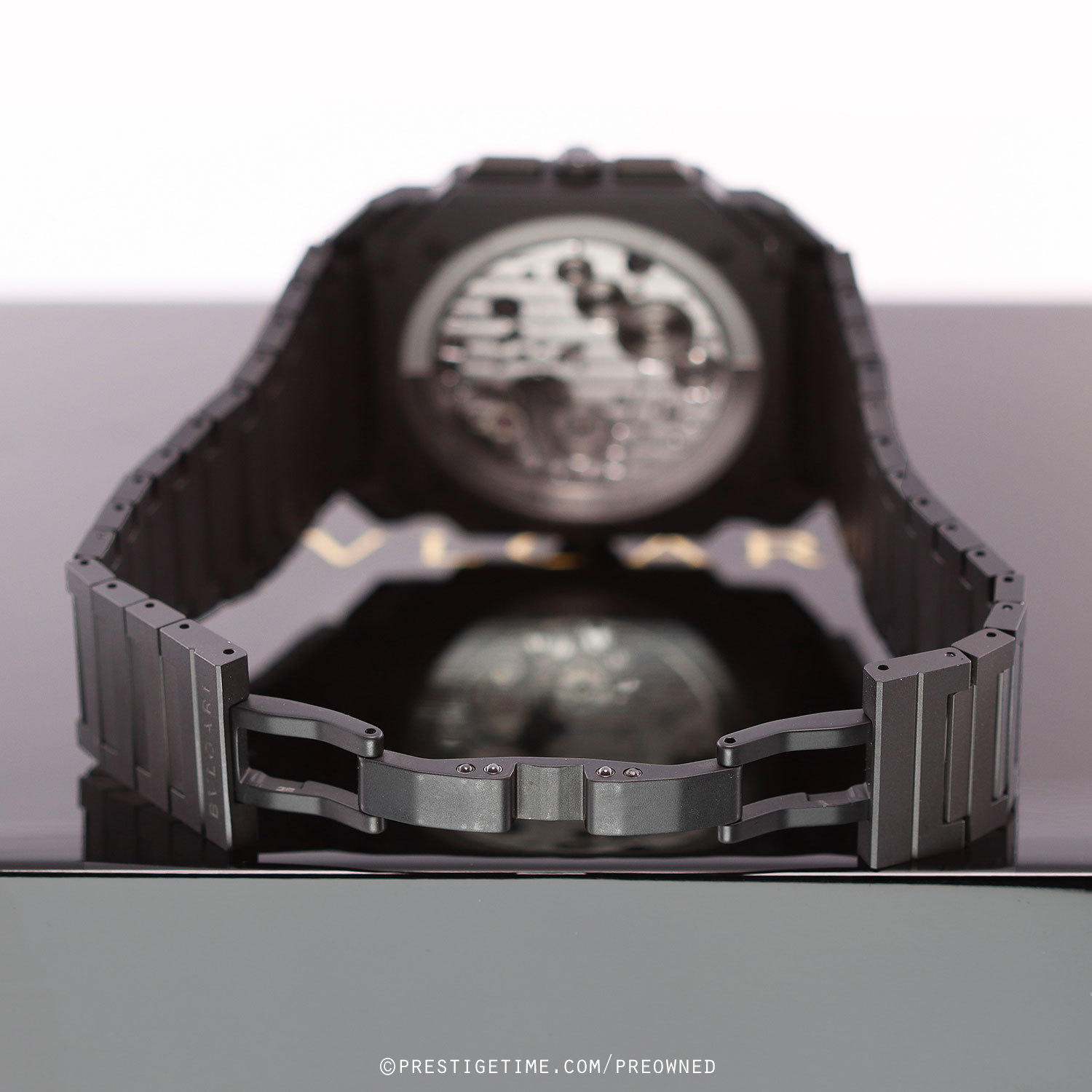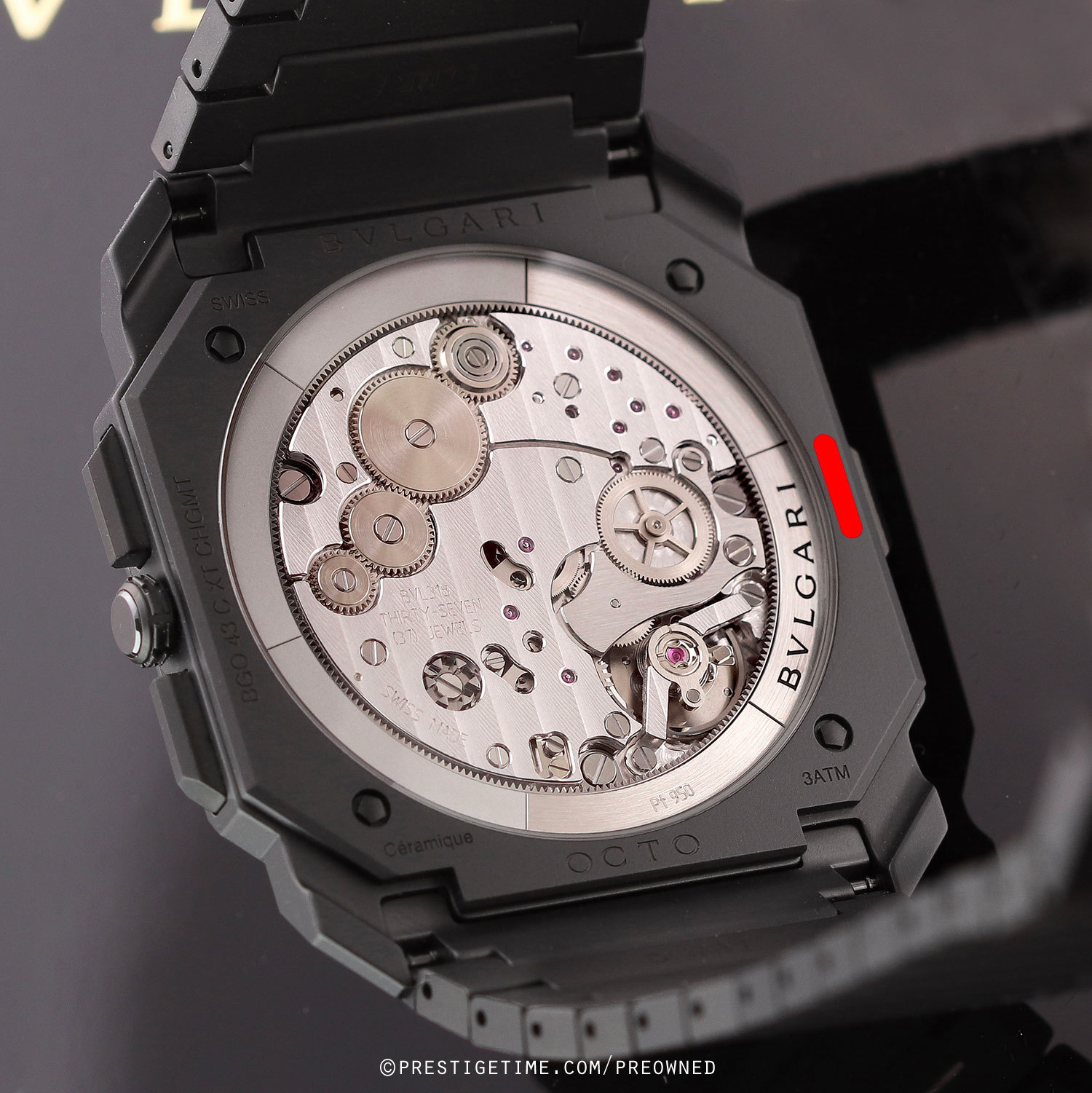 Movement: Powered by a Bulgari in-house caliber BVL 318, beats at 28,800vph (4Hz), contains 37 jewels & has a power reserve of +/- 55 hours. The movement is only 3.3mm thick & features a peripheral rotor in solid platinum.
