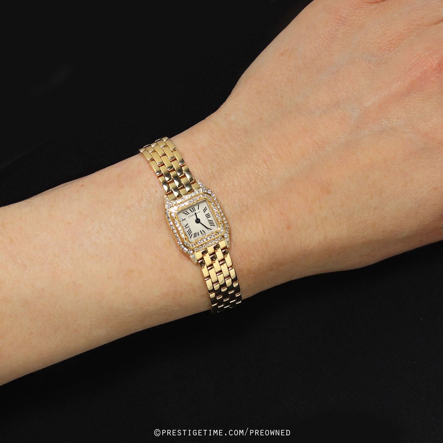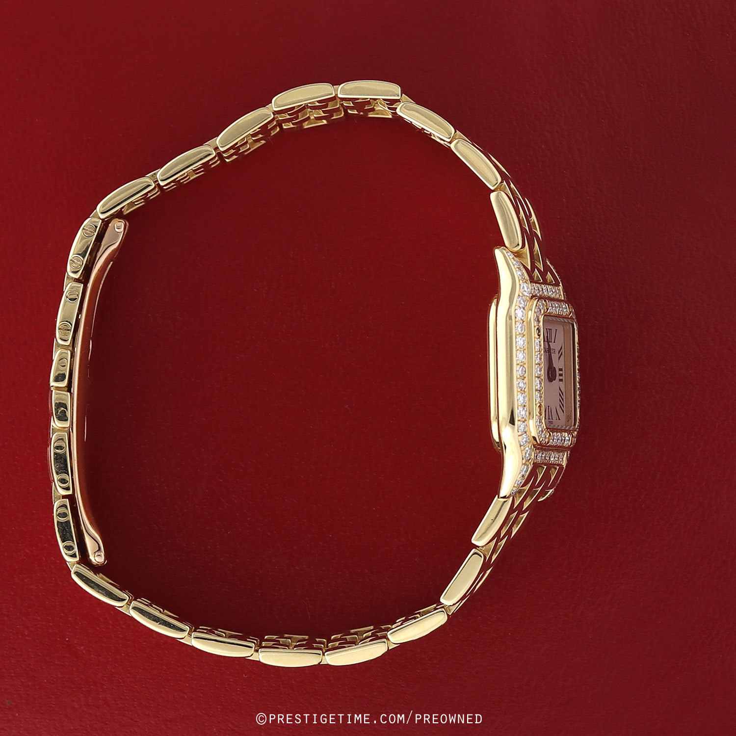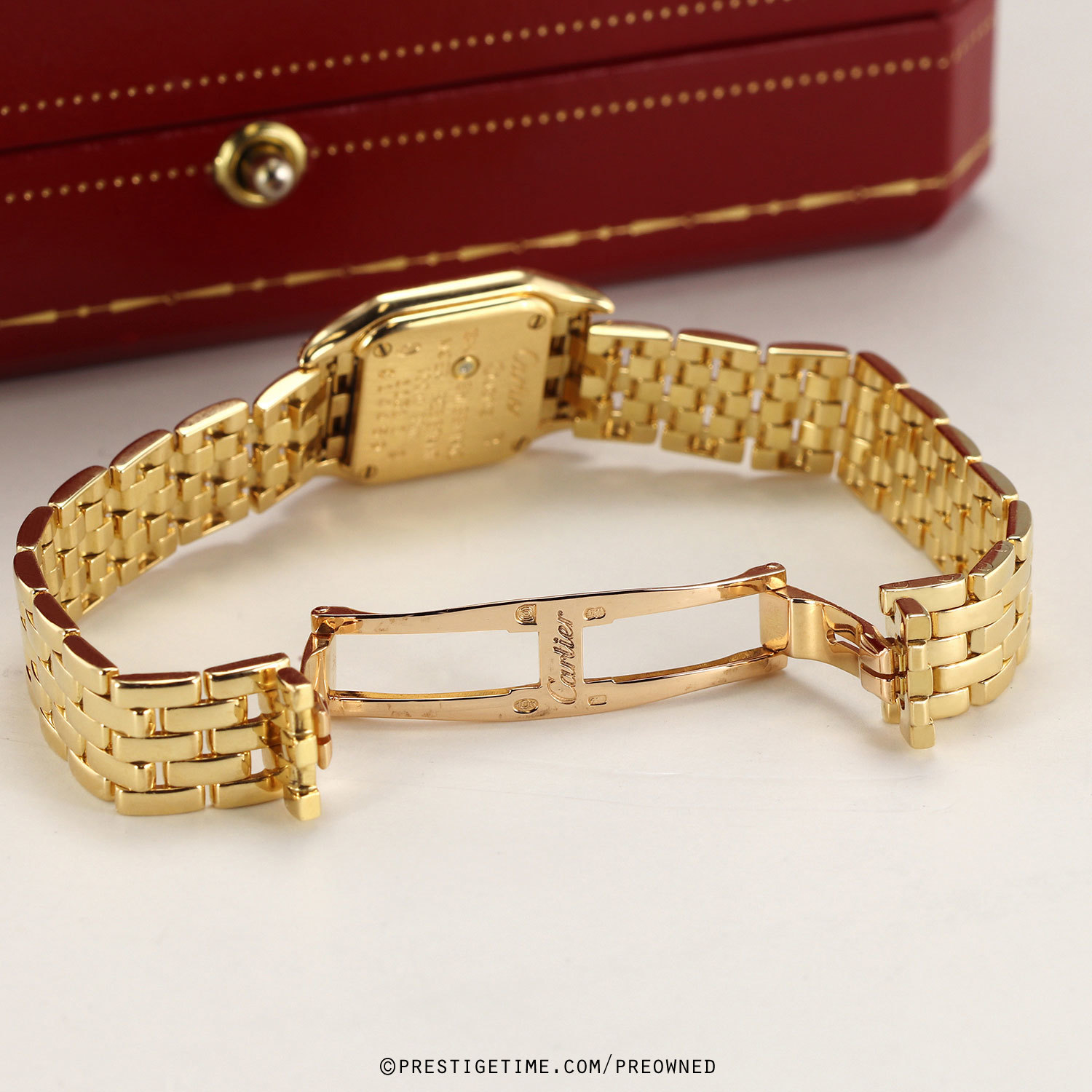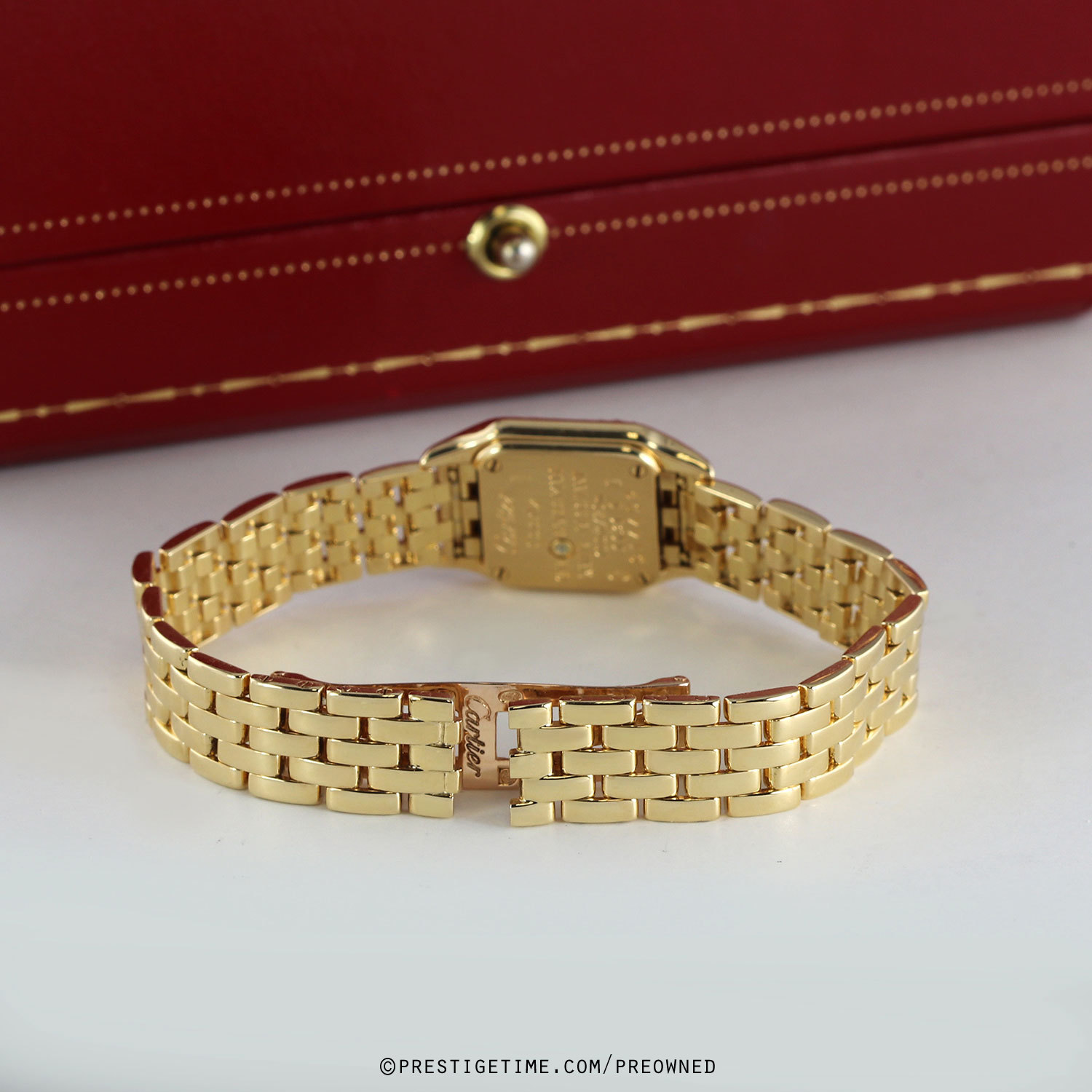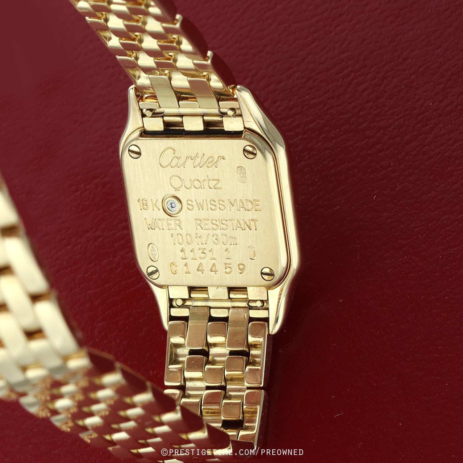 Movement:  Quartz (battery) operated movement. The time is set via a recessed button on the case back. A fresh battery has been installed. A small Cartier branded pusher/tool to assist in setting the time is included.
