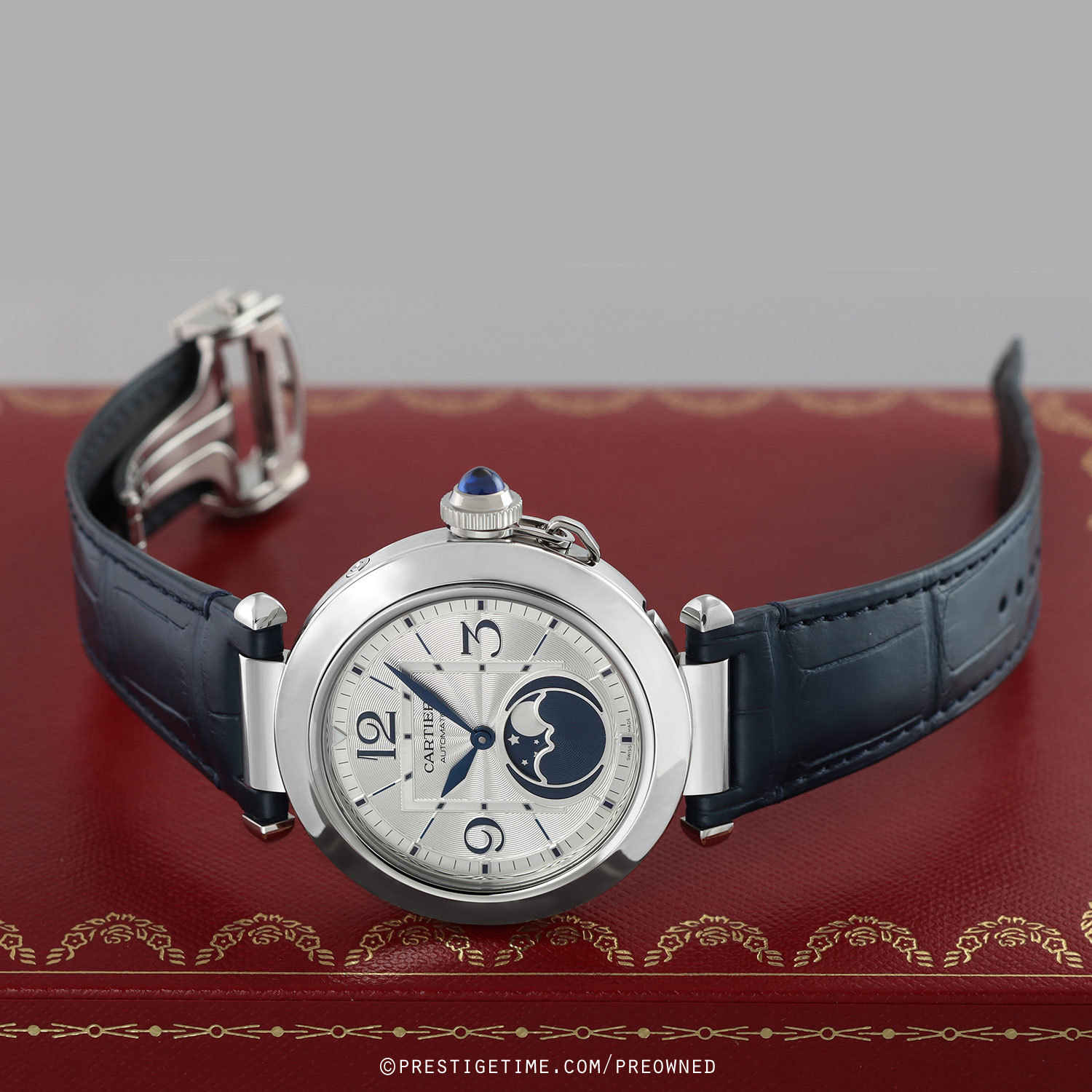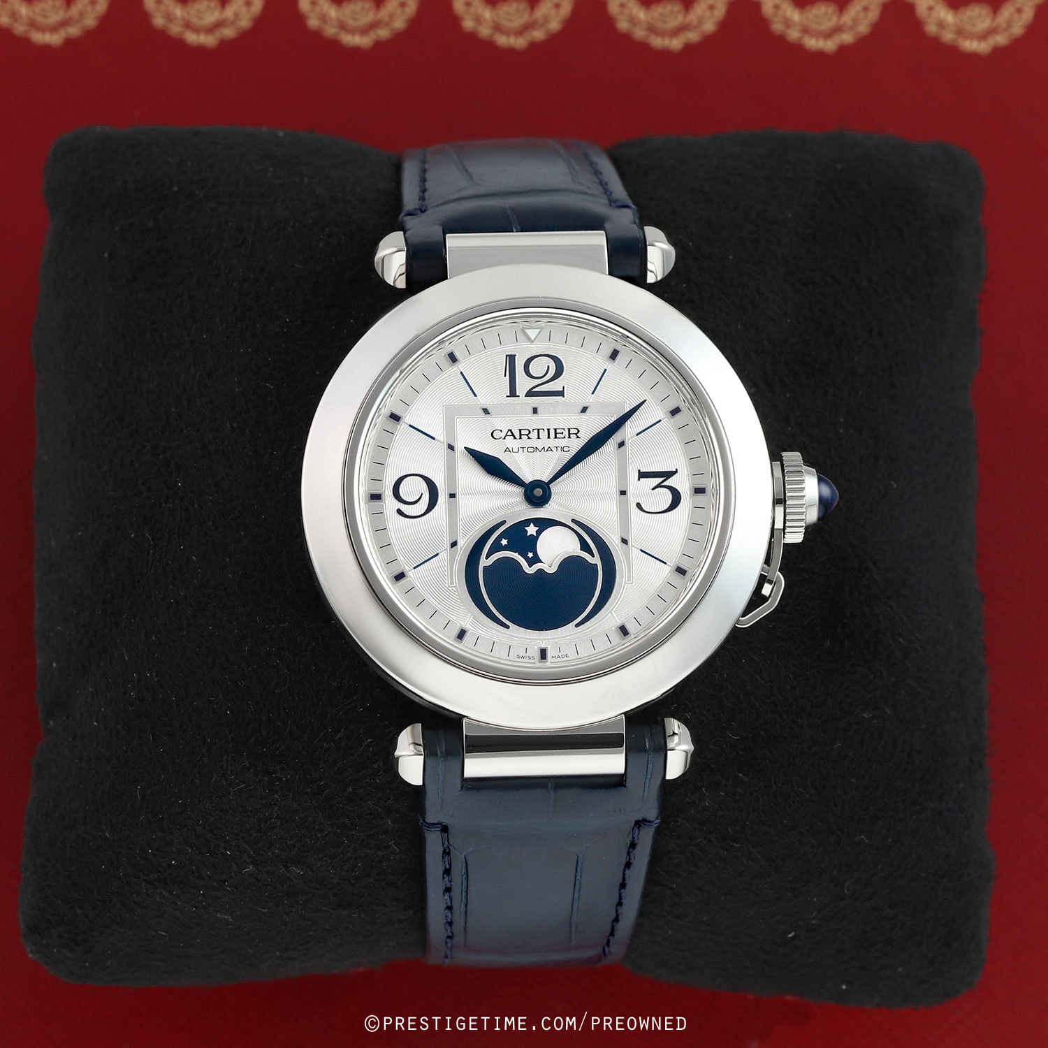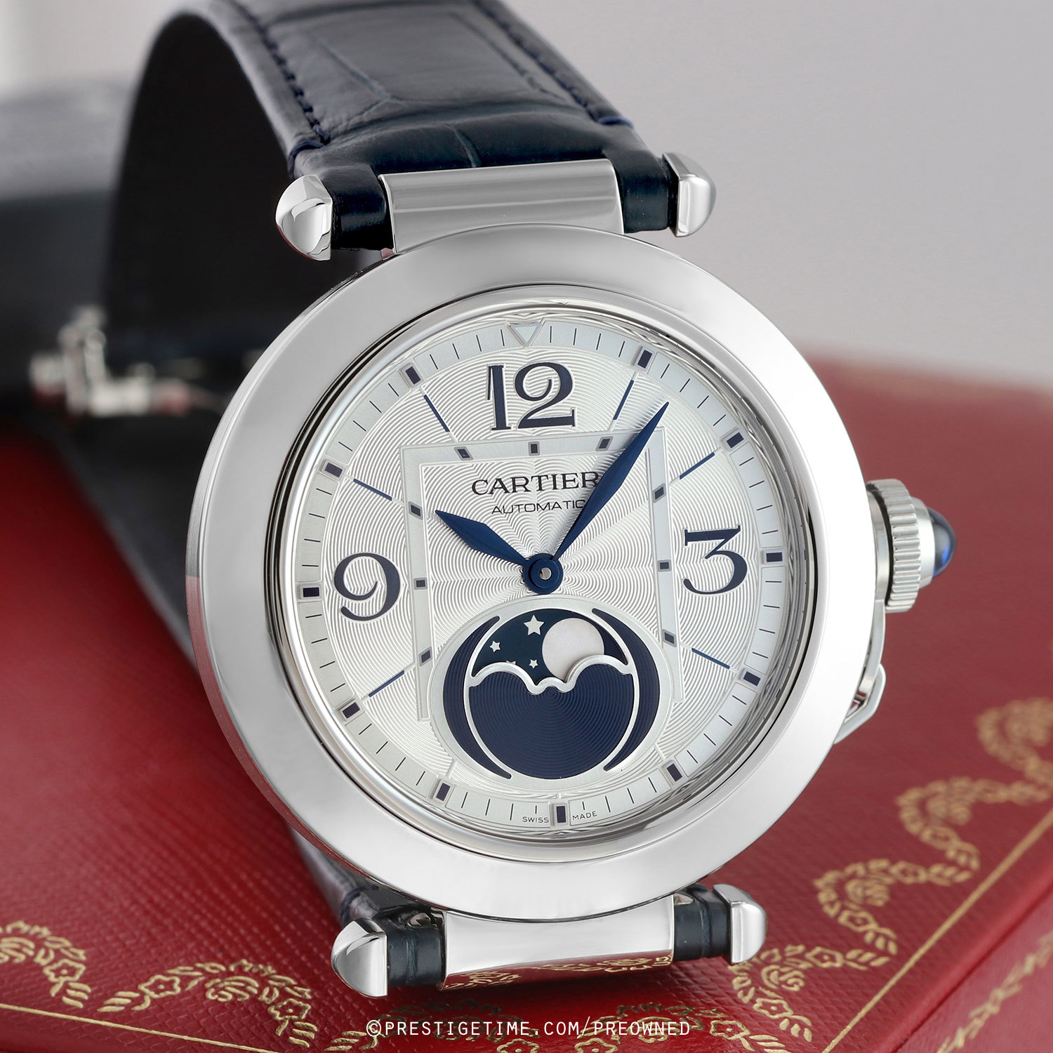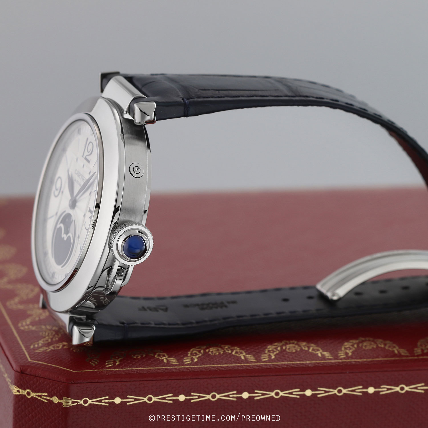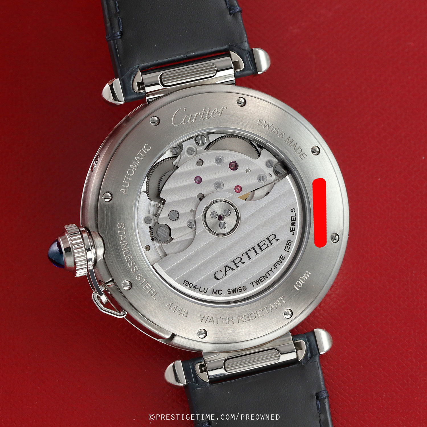 Movement: Powered by a Cartier in-house self-winding caliber 1904-LU MC, beats at 28,800 ph (4Hz), contains 25 jewels & has a power reserve of +/- 48 hours.