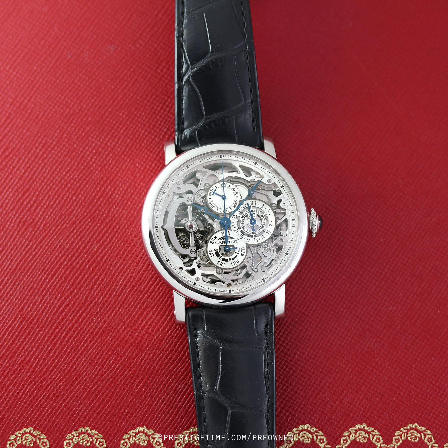 Powered by a Cartier in-house manufactured manual winding calibre 9436-MC, comprised of 457 parts (!), with 37 jewels & a very impressive power reserve of 8 days! The watch is in impeccable condition with very little signs of wear, perhaps a few hairline scratches, but nothing more. Worn perhaps a handful of times. The watch is running perfectly as well.